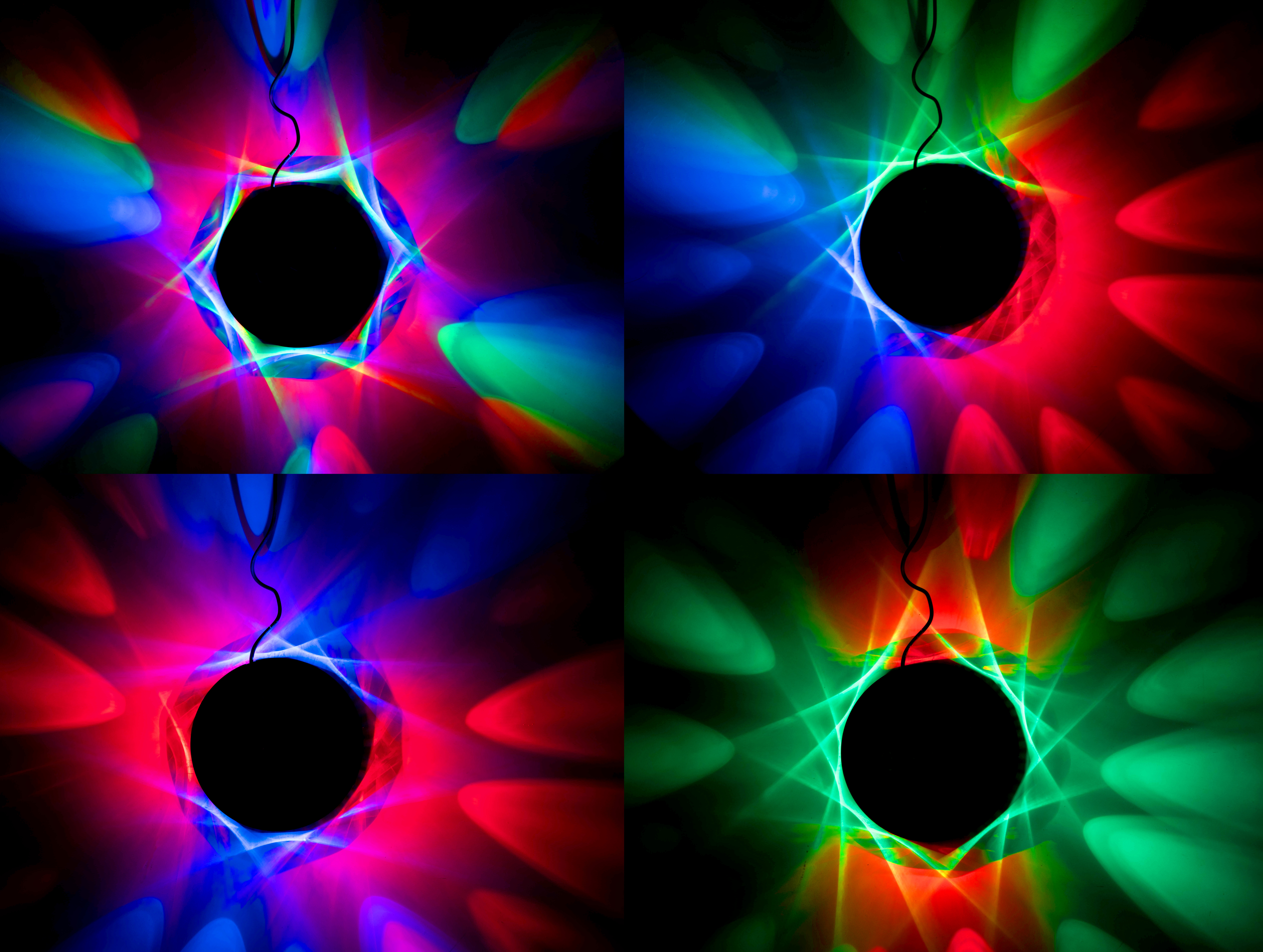 Vhodný také například jako světelná dekorace na zeď, na kterou umí, díky své kruhové koncepci, promítat a prolínat jednotlivé barvy a vytvářet tak jedinečnou atmosféru.
