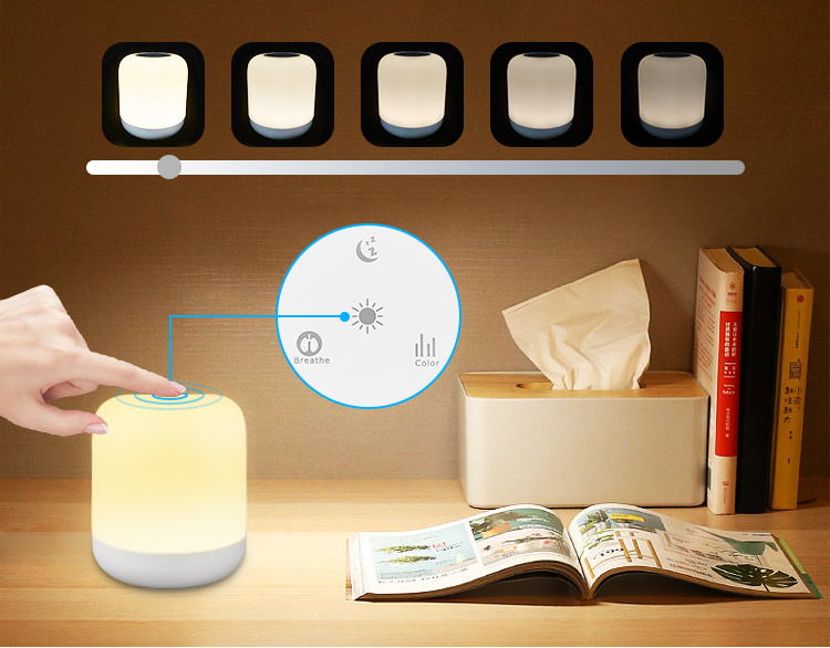 Lampa vyzařuje různé druhy barev. Barevné změny se dají nastavit dotykem. Na přední části lampy se nachází úchyt pro snadné přenášení.