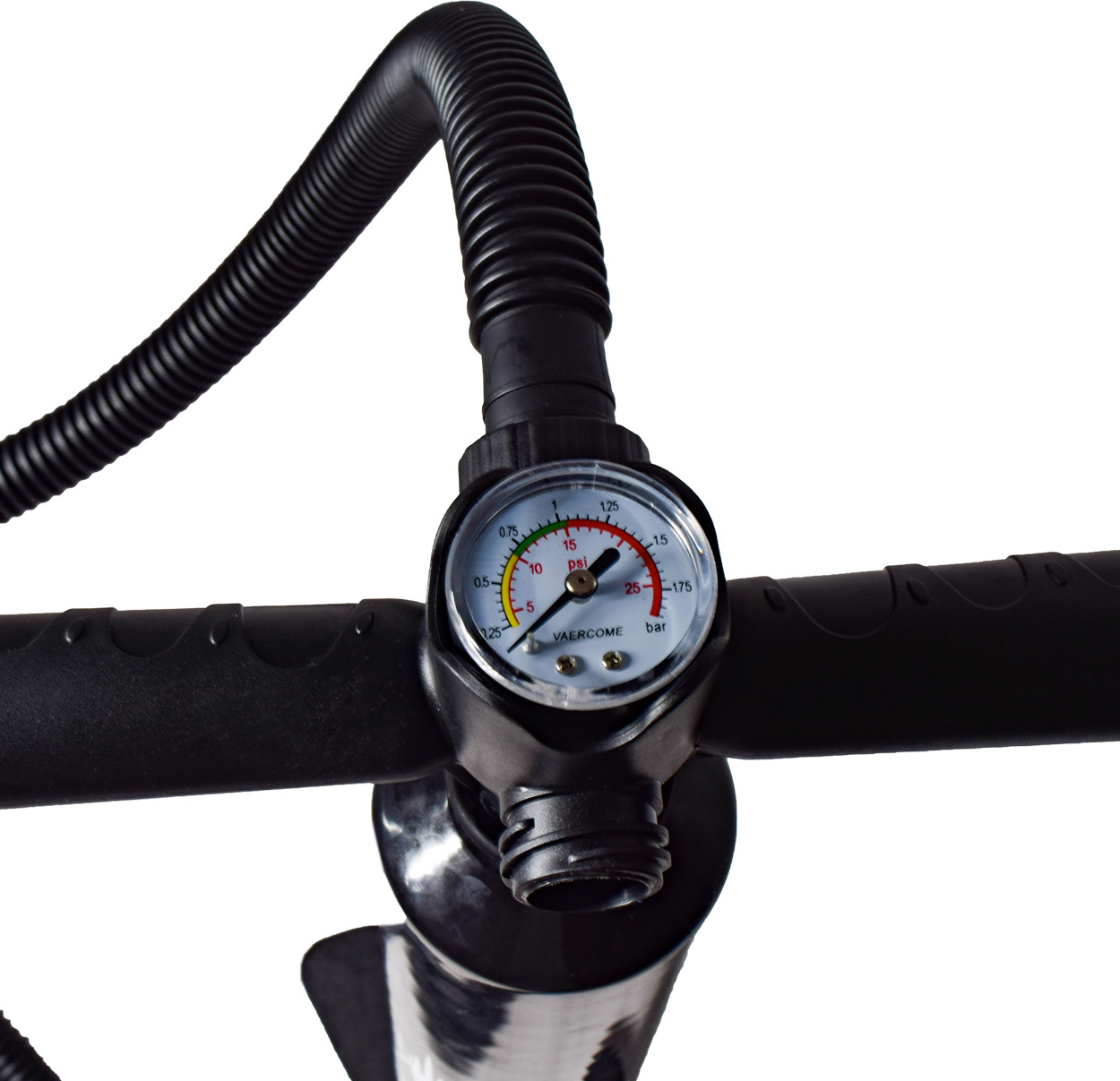 Součástí je praktický tlakoměr, který ukazuje aktuální tlak v paddleboardu.