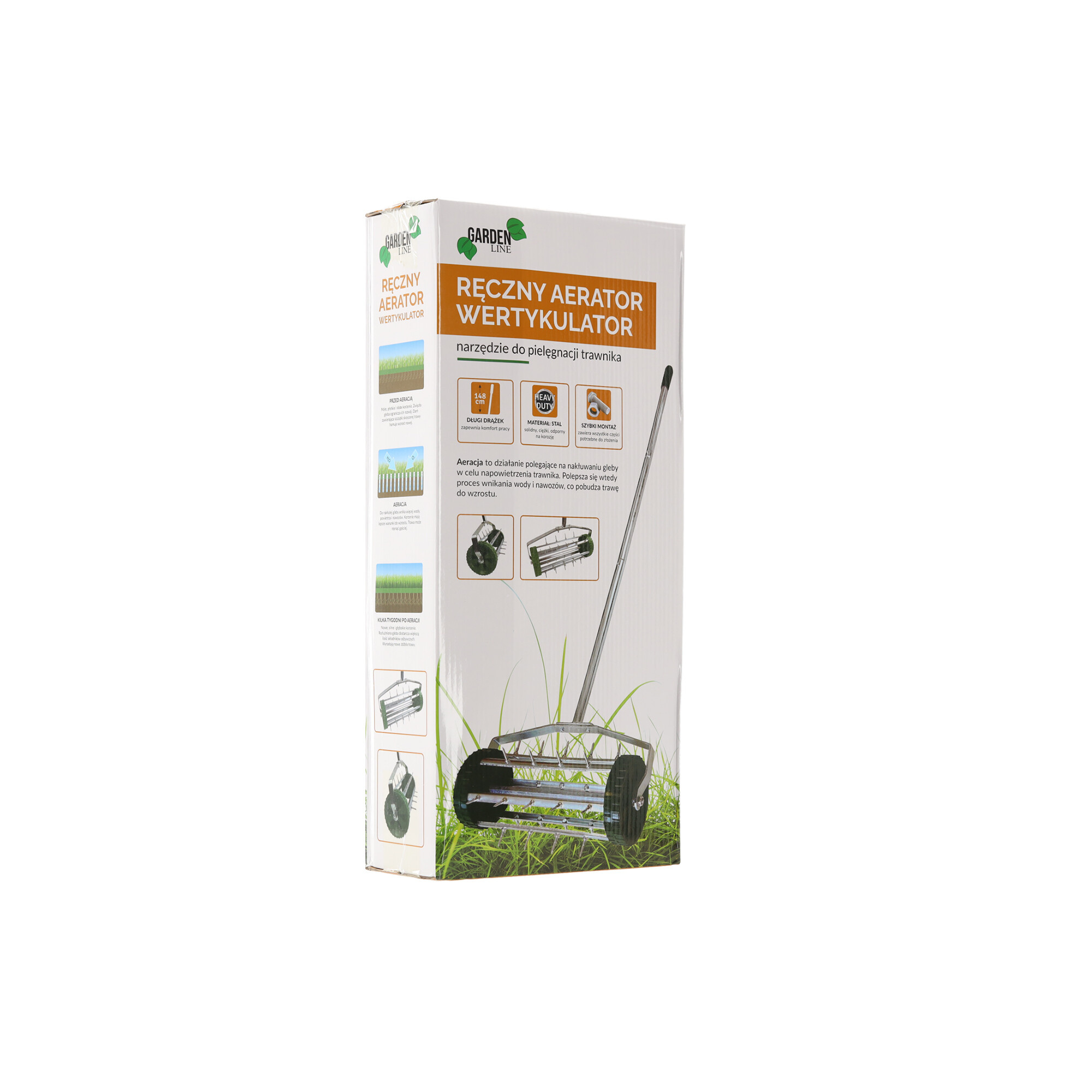 Rukojeť lze nastavit do 3 poloh a válec má také otočné hřebíky pro zarytí do země. Vyrobeno z galvanizované kovové trubky a plastu, je to skvělý nástroj pro maximální využití vašeho trávníku.