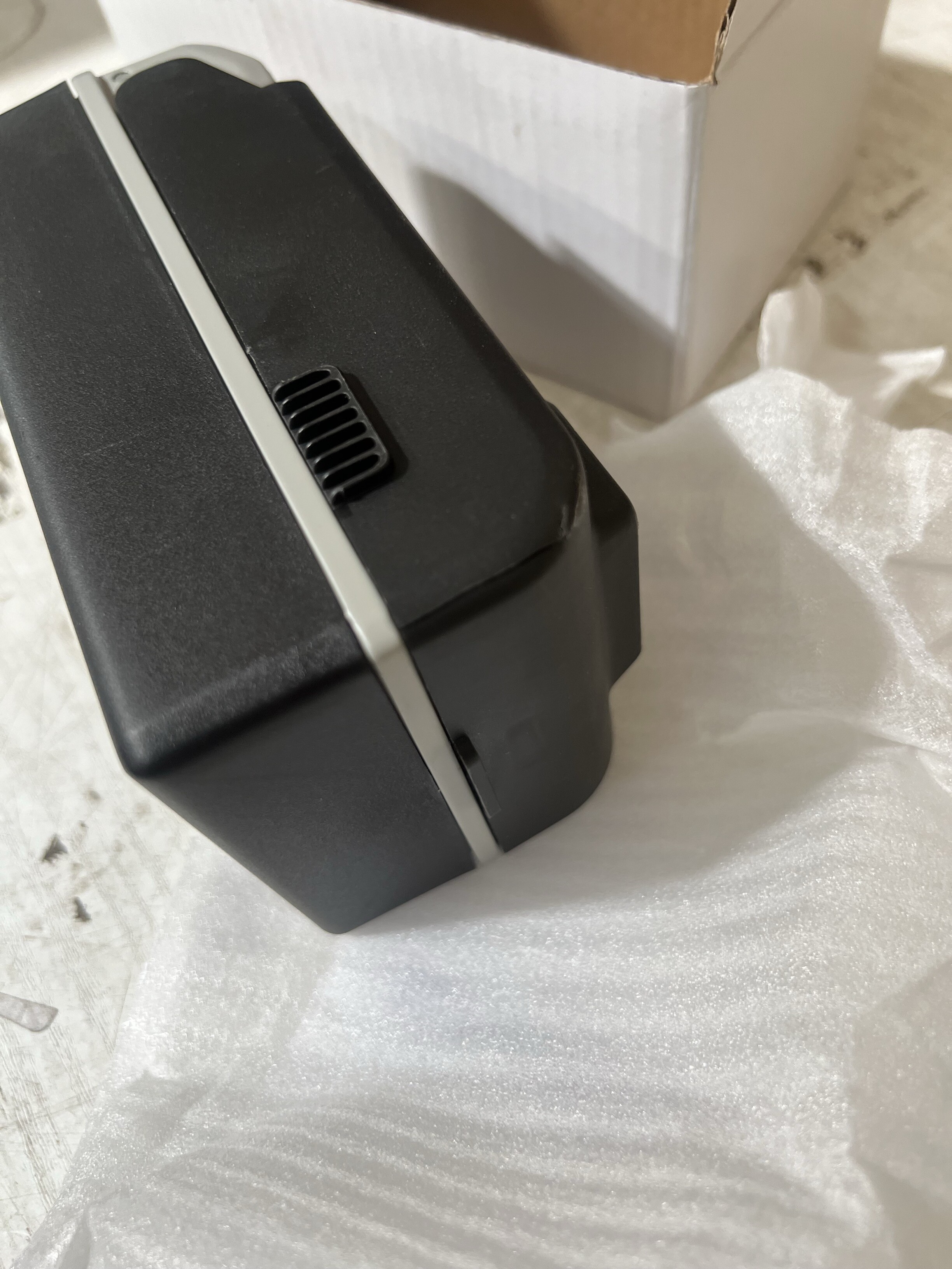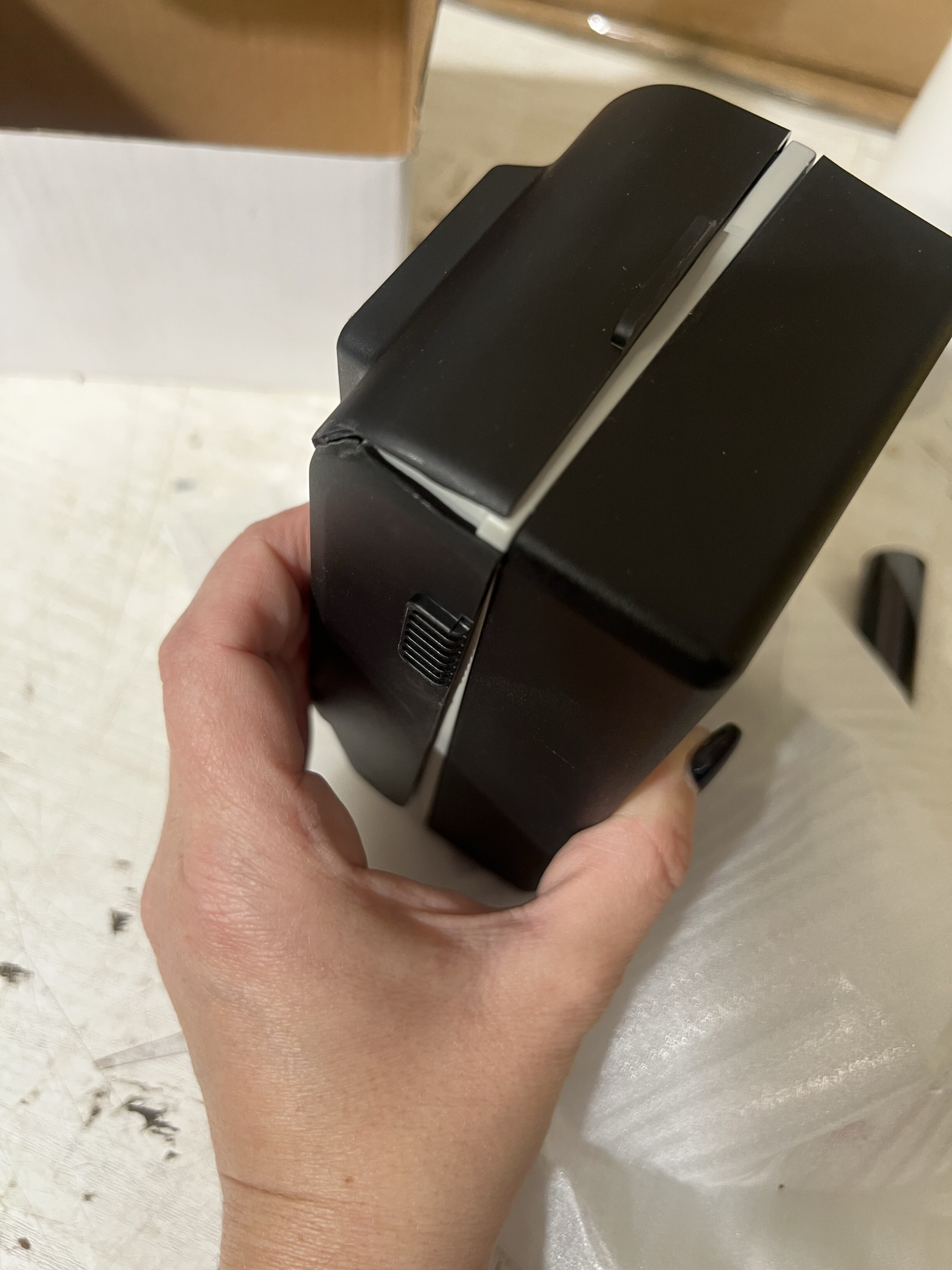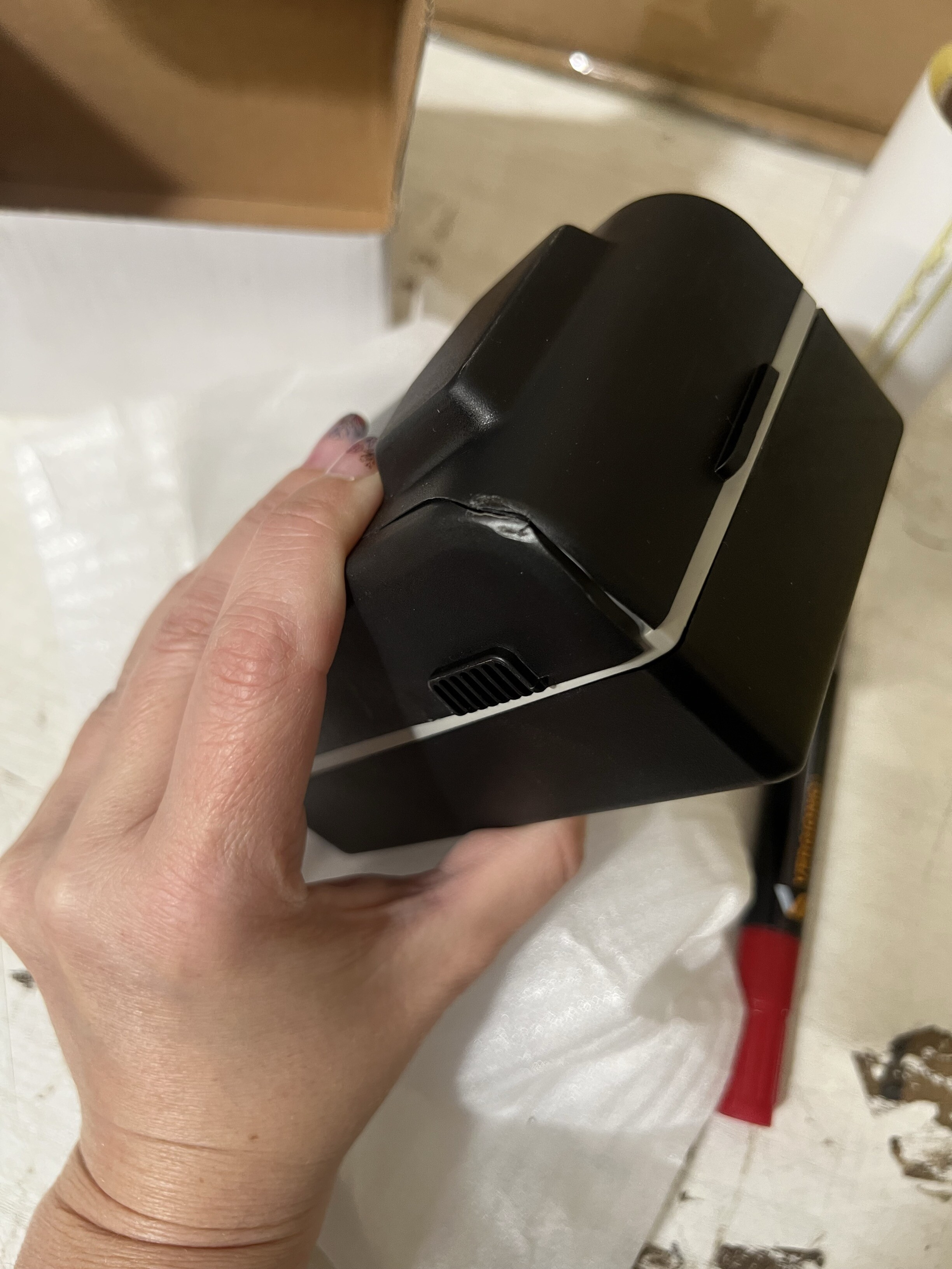 Krabička je na jednom místě prasklá.