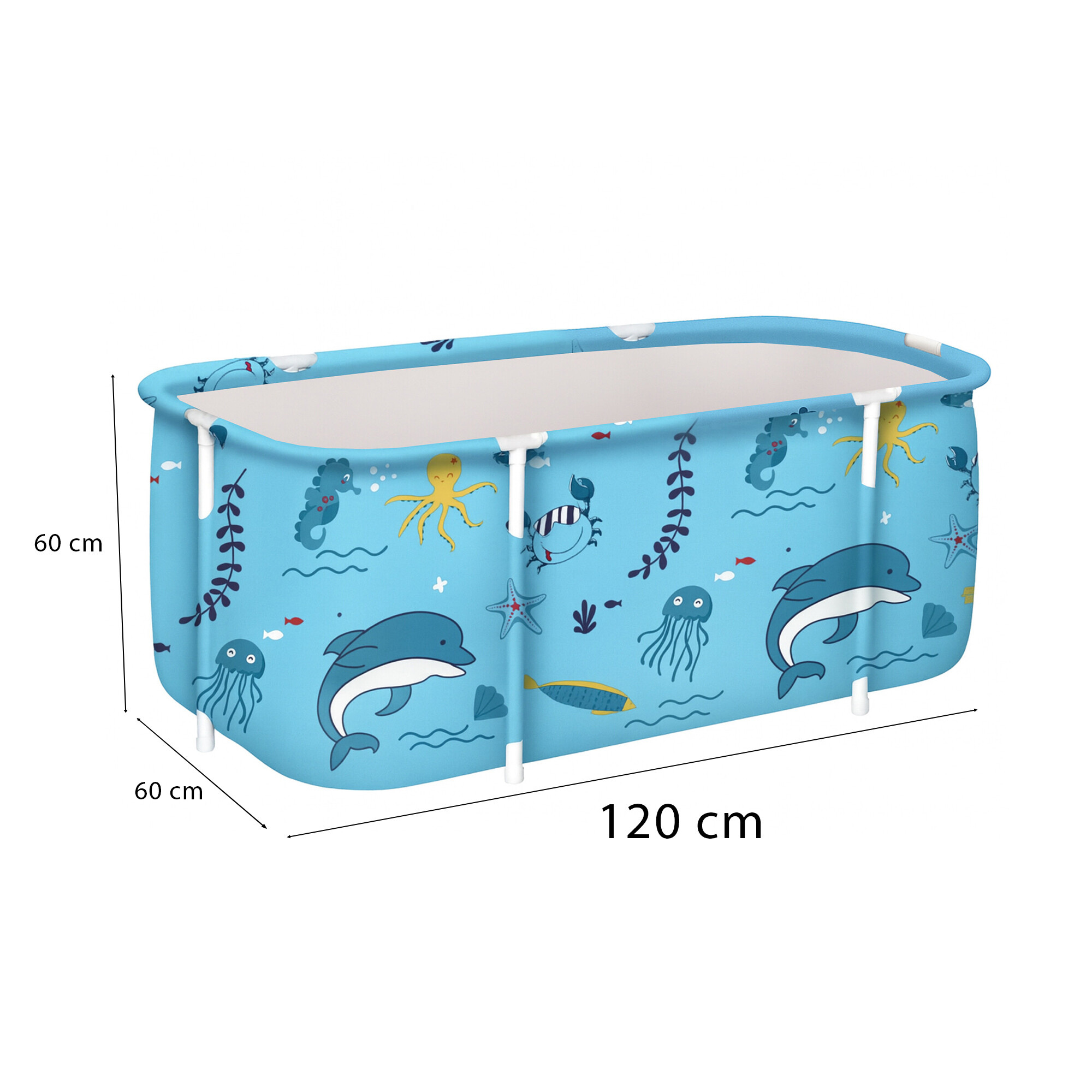 Skládací přenosná vana má rozměry 120 × 60 × 60 cm, takže nabízí dostatek prostoru pro pohodlnou koupel i v menších domácnostech.