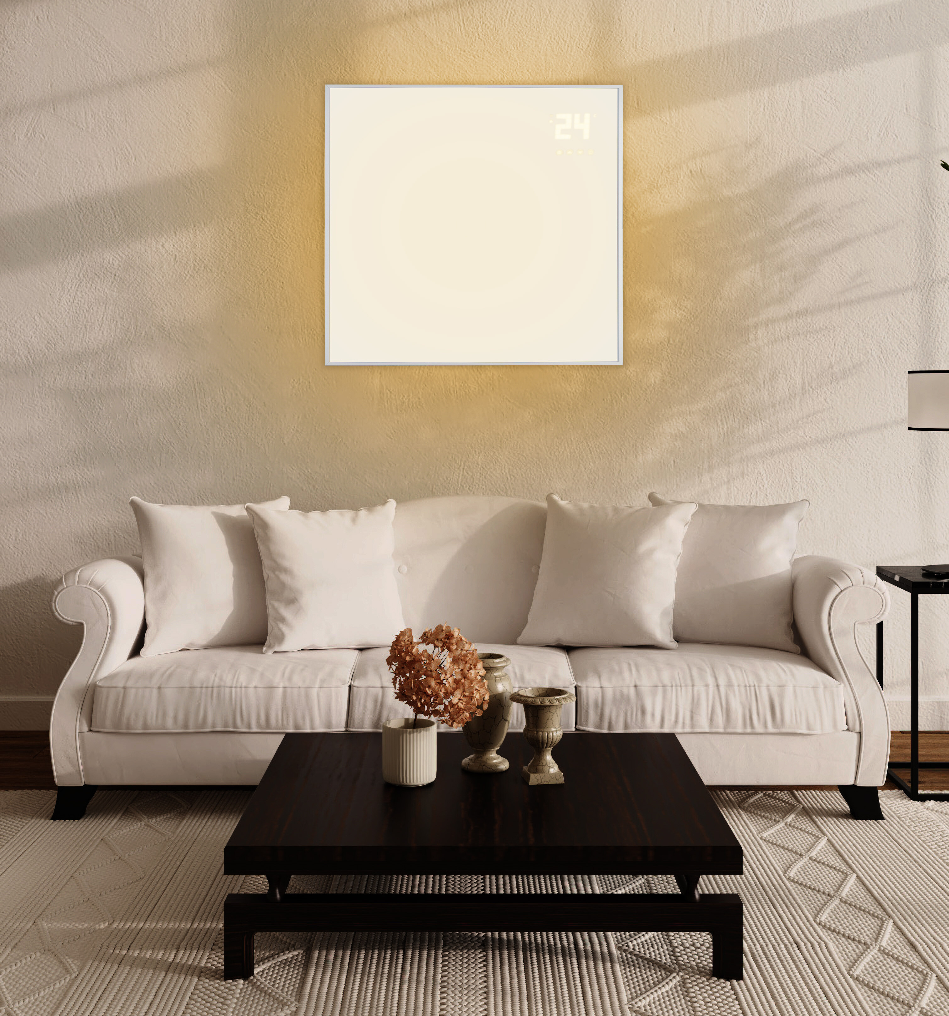 Topný panel je vybaven přehledným LCD displejem, který umožňuje snadné nastavení požadované teploty.