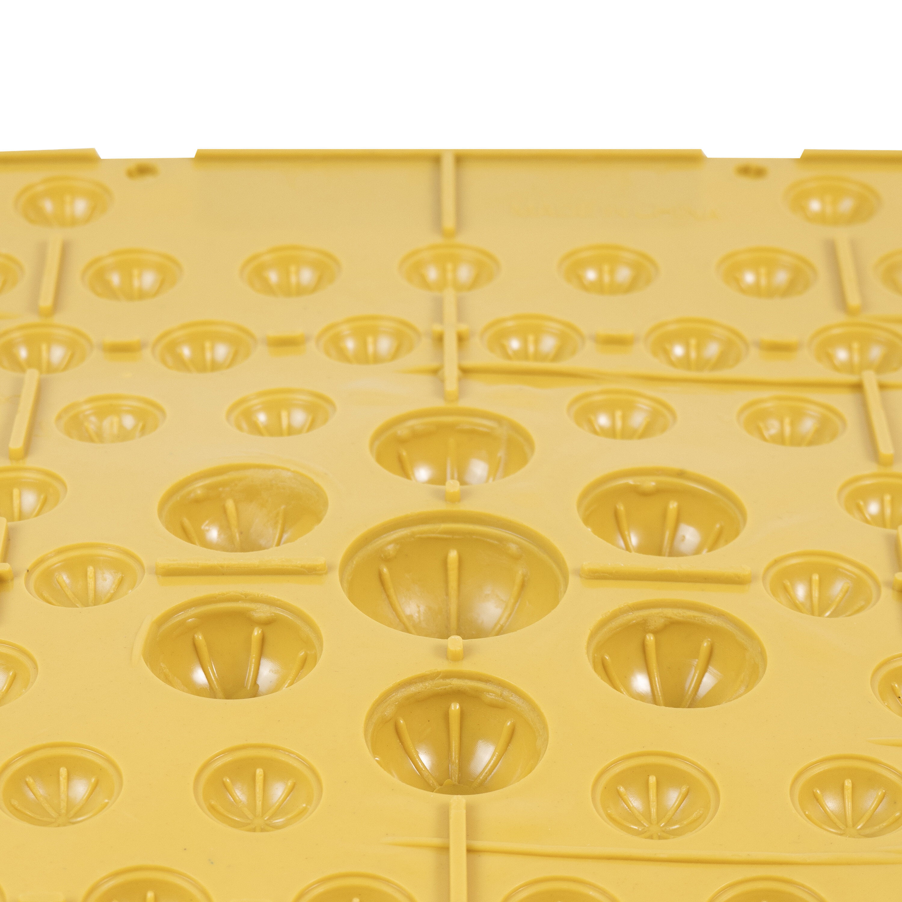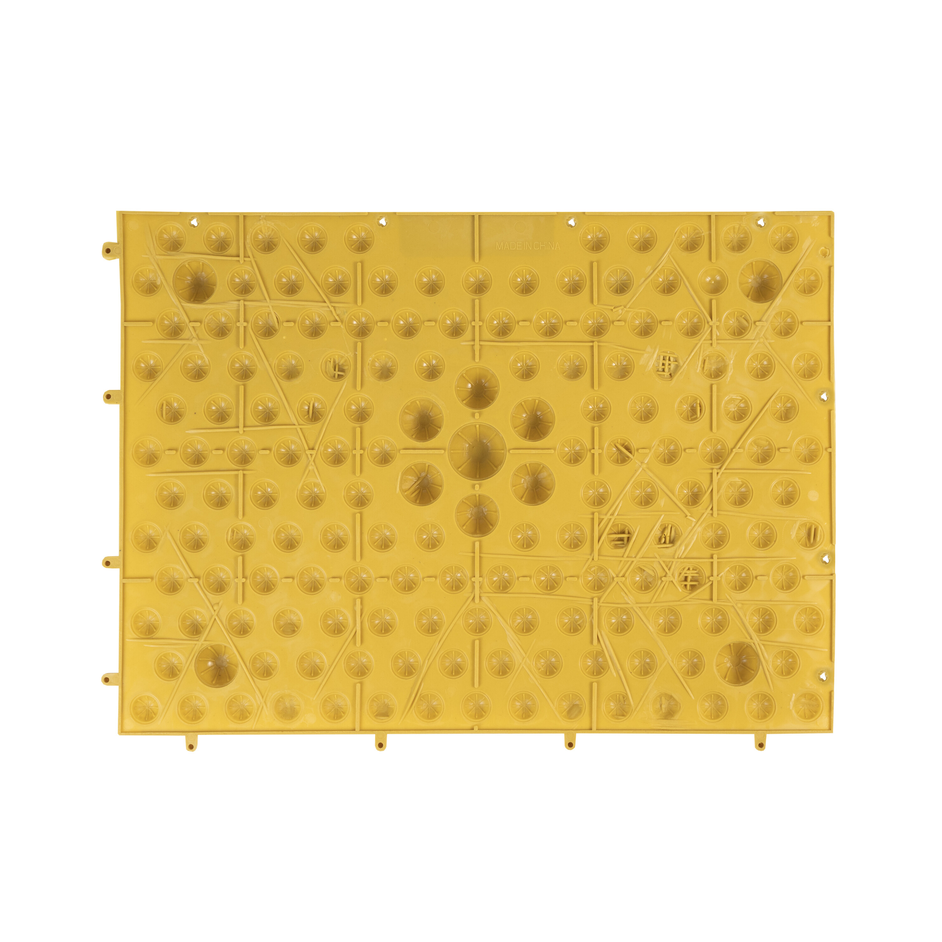 Každá část podložky je zakončena háčky a otvory, které umožňují připojení dalších podložek.
