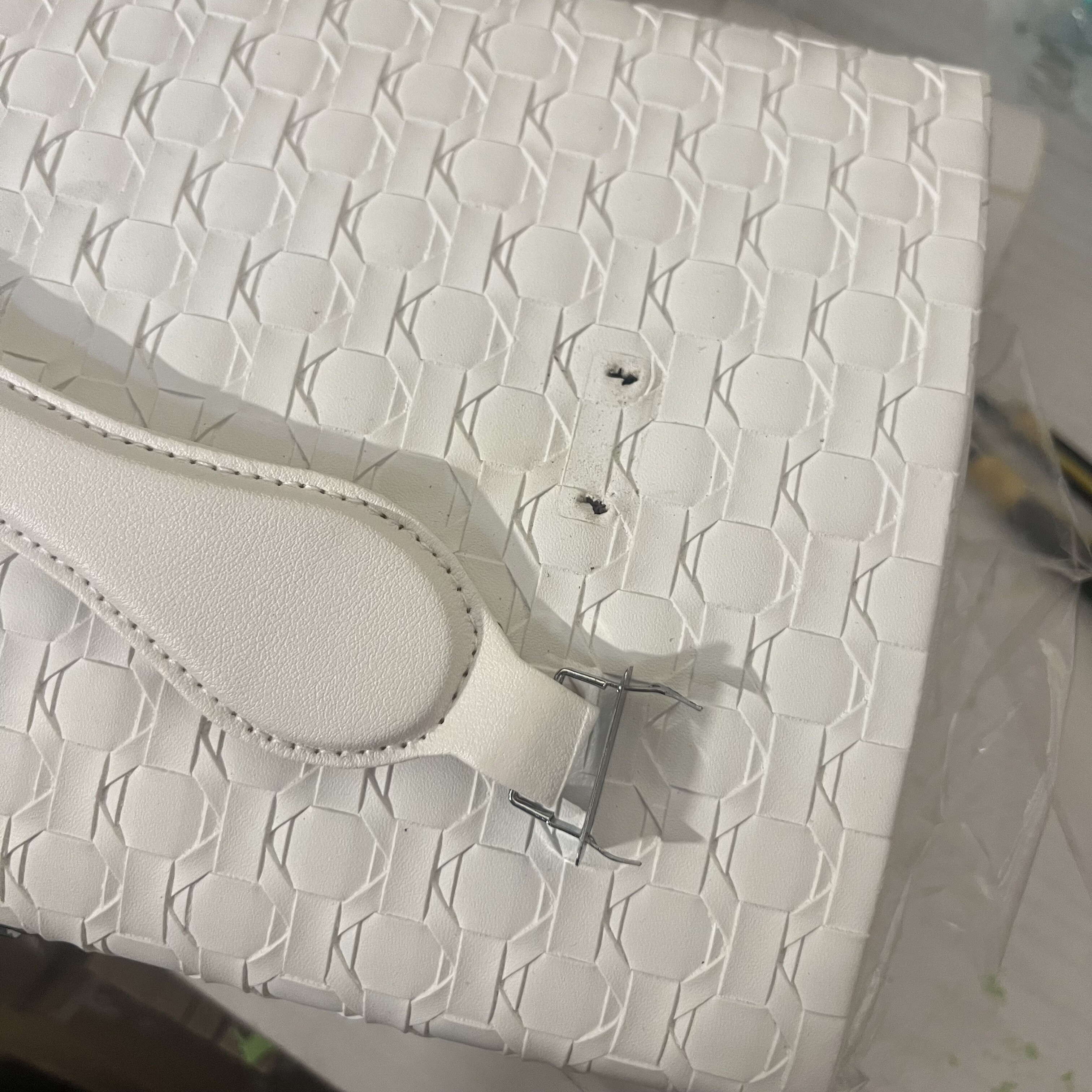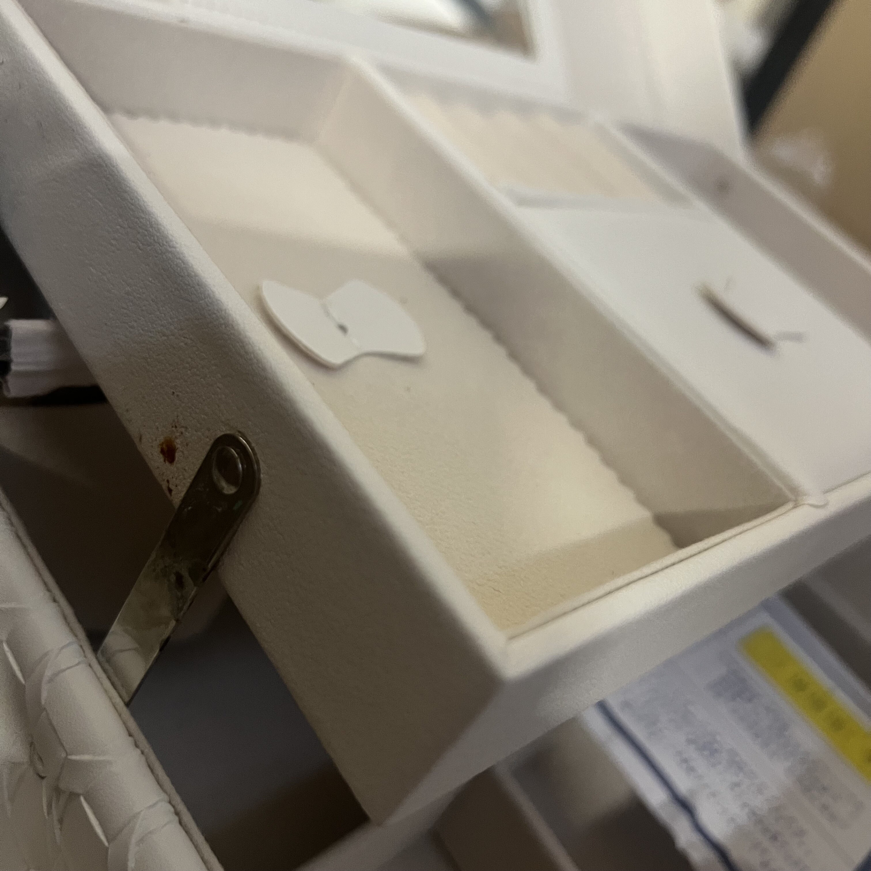 Šperkovnice má ulomený úchyt (možná oprava) a odpadá vnitřní část materiálu.