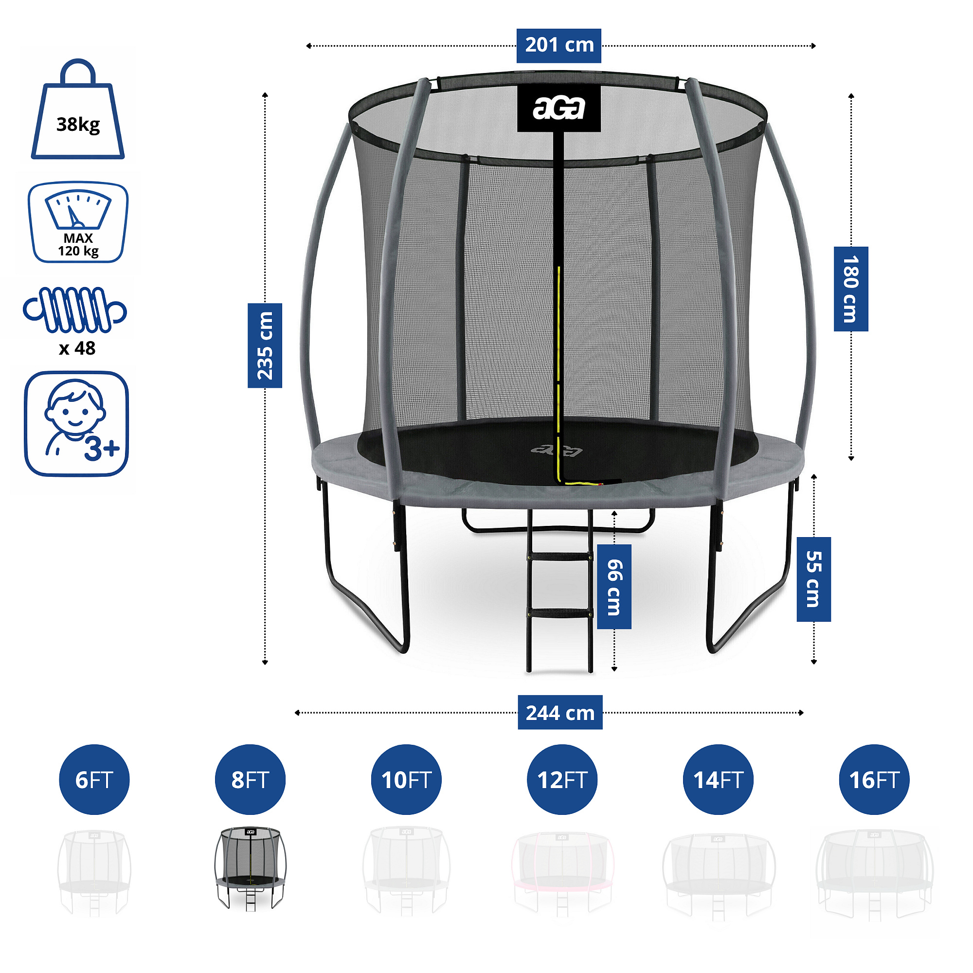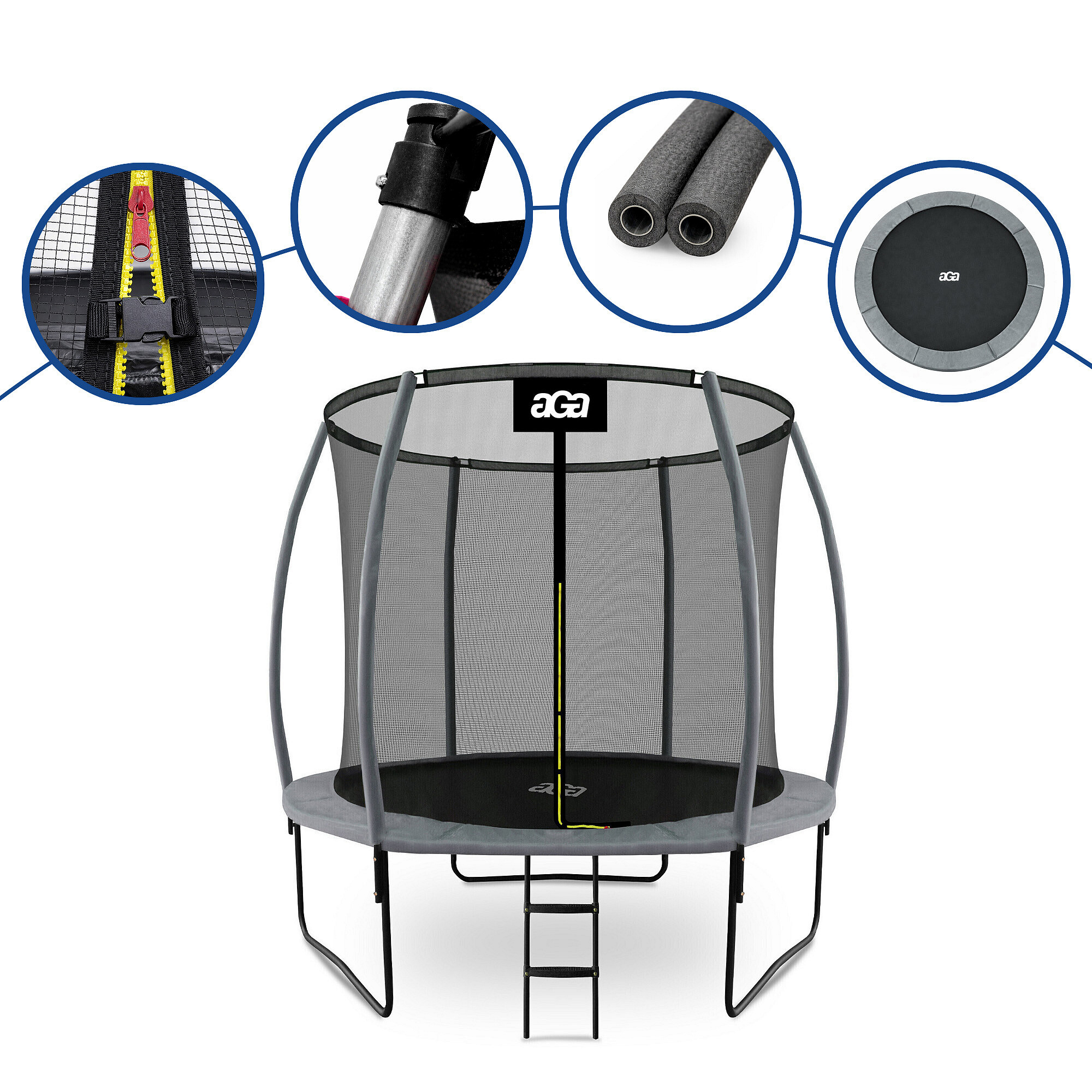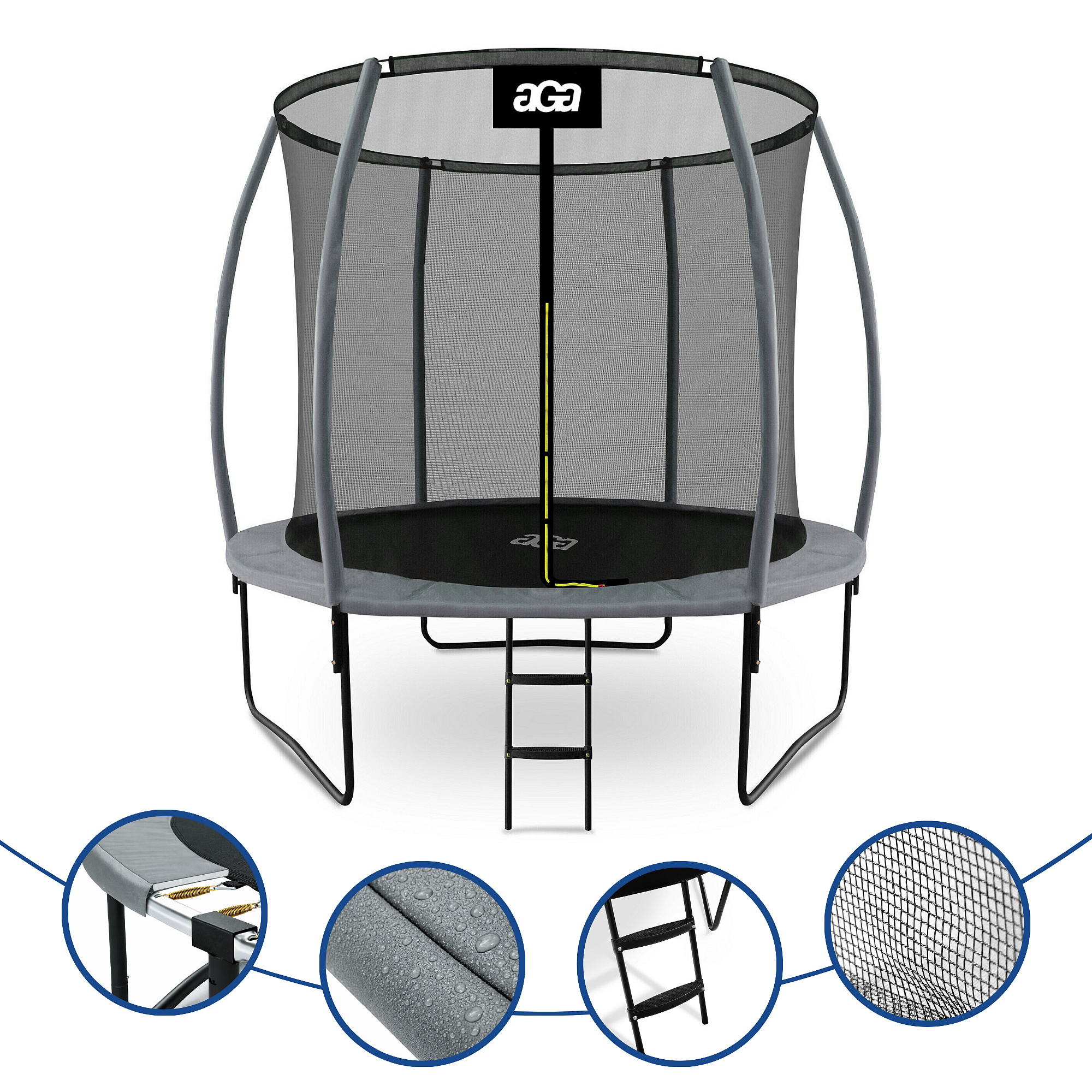 Aga SPORT EXCLUSIVE Trampolína 250 cm Šedá + ochranná síť + žebřík