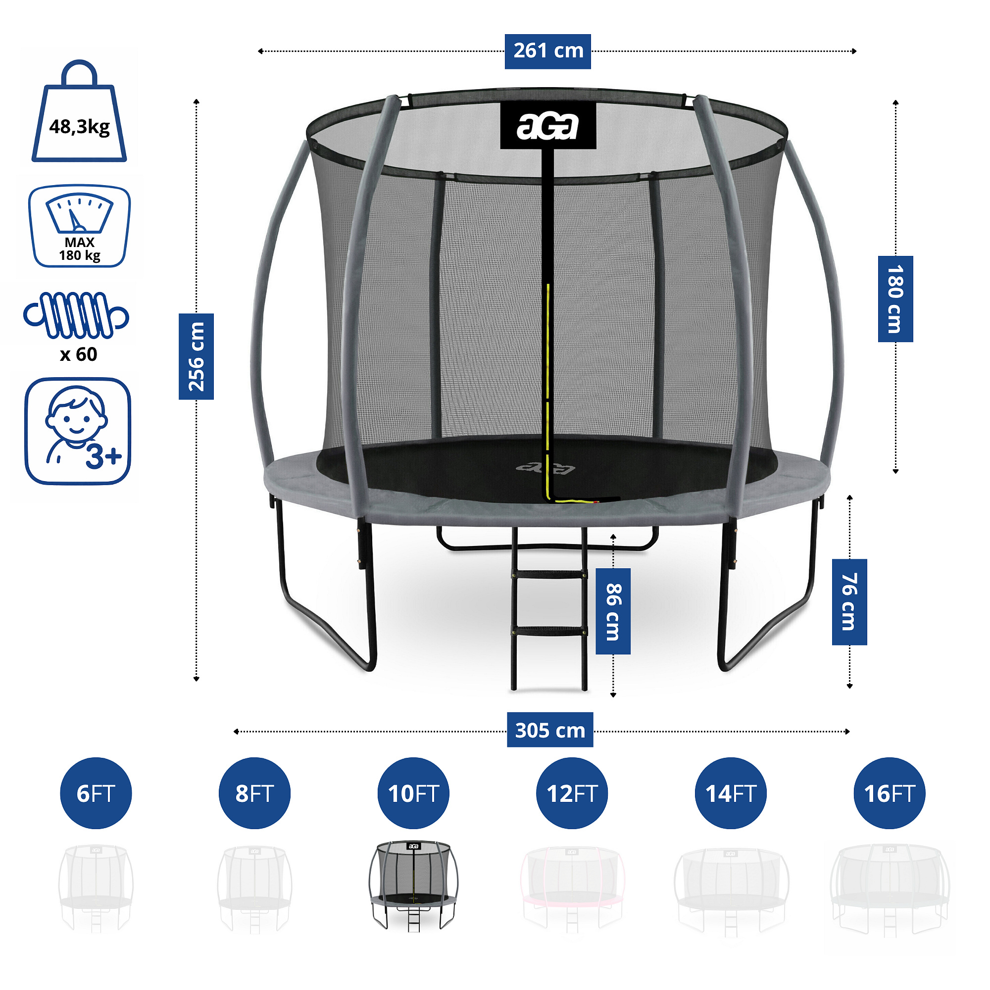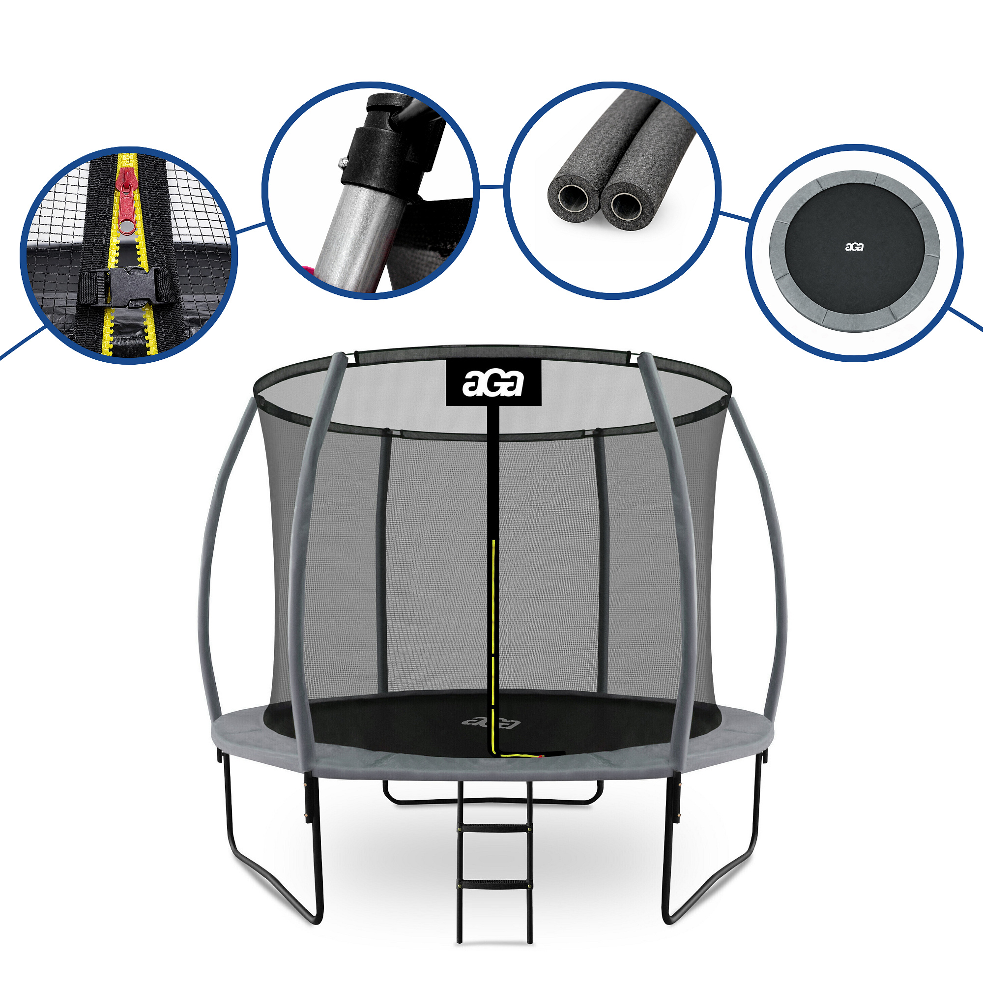 Aga SPORT EXCLUSIVE Trampolína 305 cm Šedá + ochranná síť + žebřík