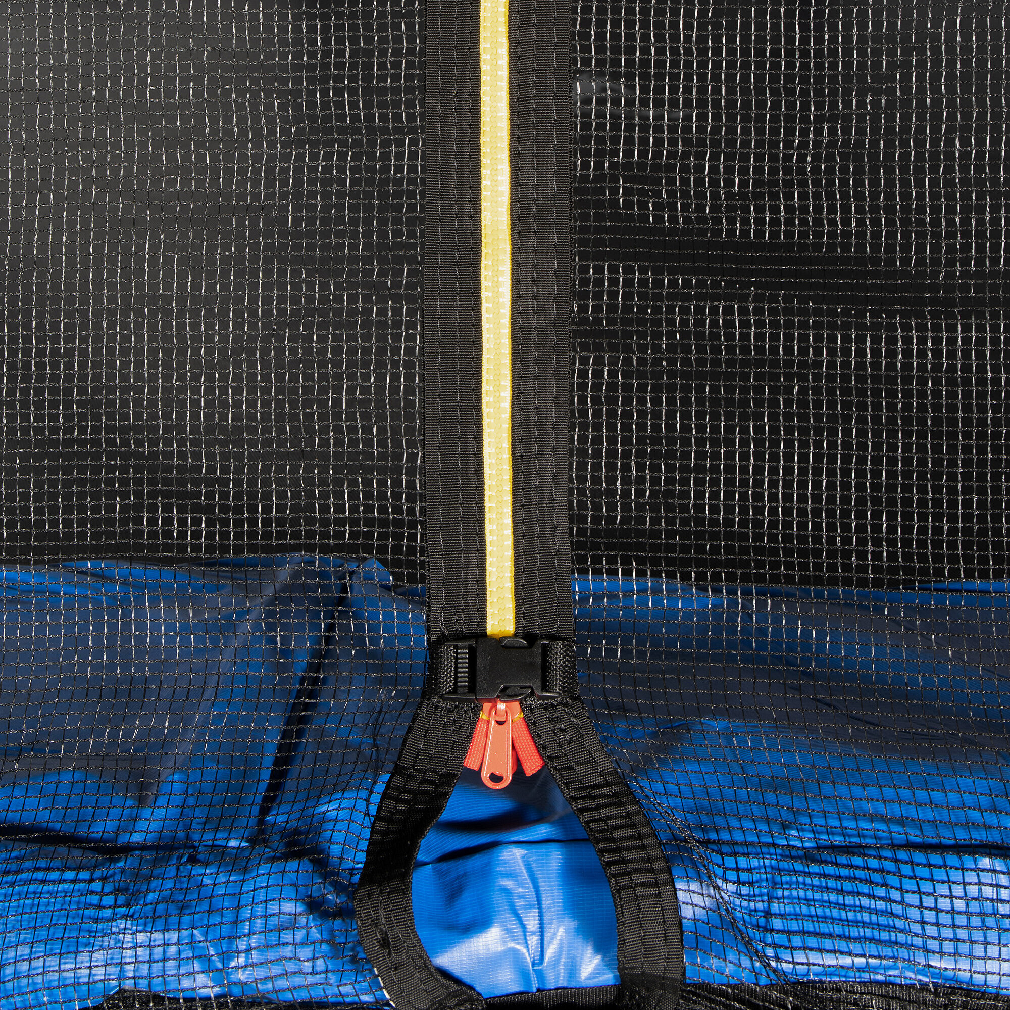 Maximální možnou bezpečnost pak zajištuje polstrovaný obvodový pás (kryt pružin), který překrývá pružiny po celém obvodu trampolíny.