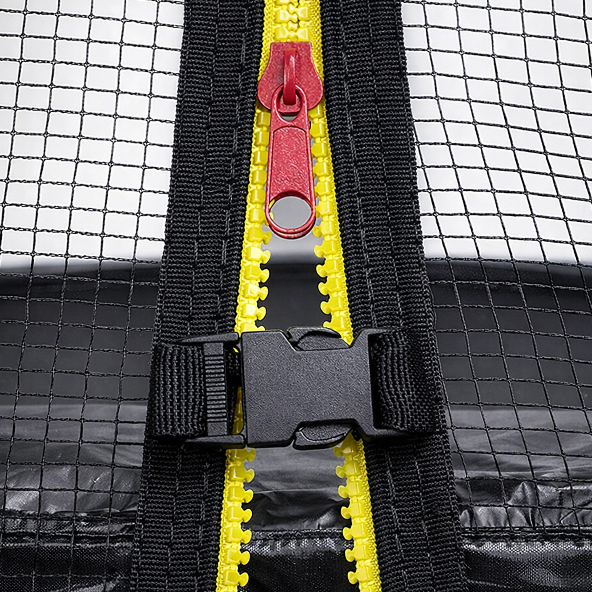 Horní ochranná síť má vstup opatřený zipem a zajištěným pojistkou proti samovolnému rozepnutí.