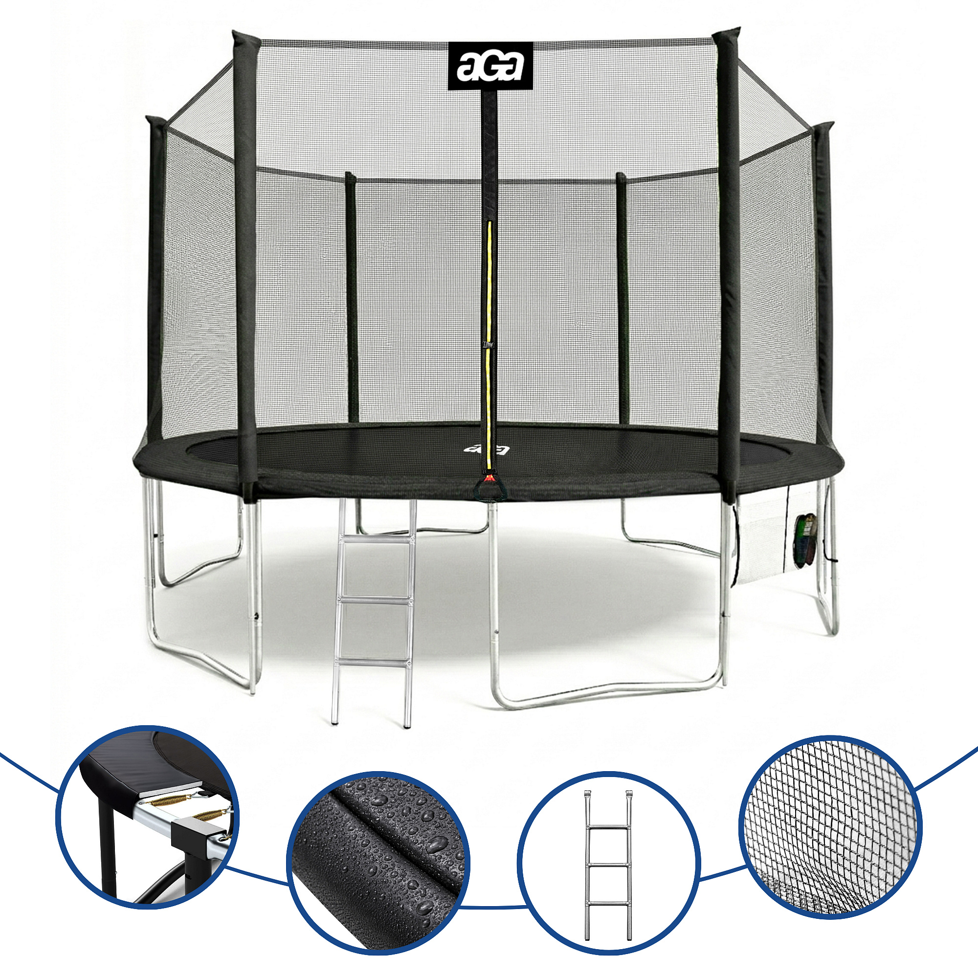 Maximální možnou bezpečnost pak zajištuje polstrovaný obvodový pás (kryt pružin), který překrývá pružiny po celém obvodu trampolíny.