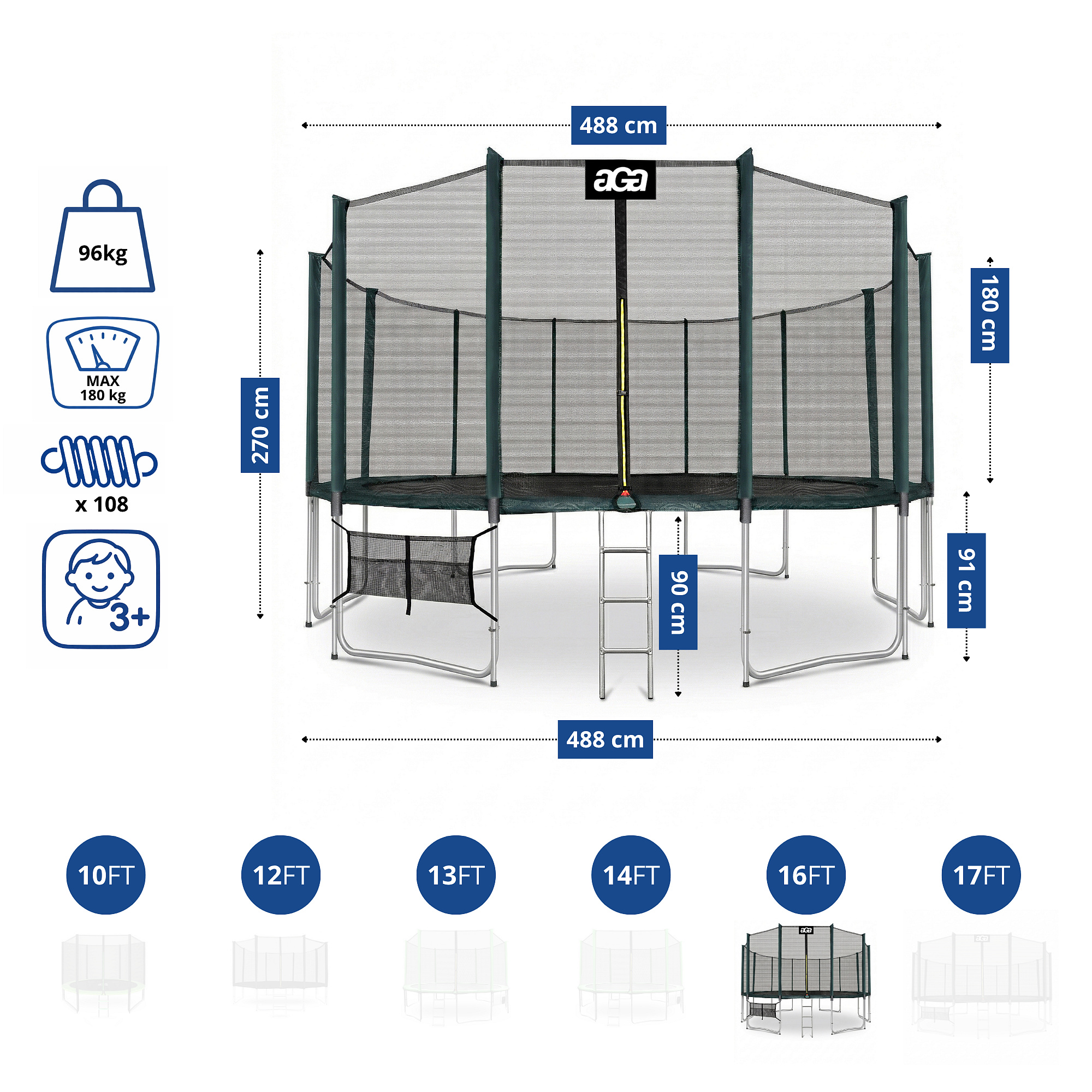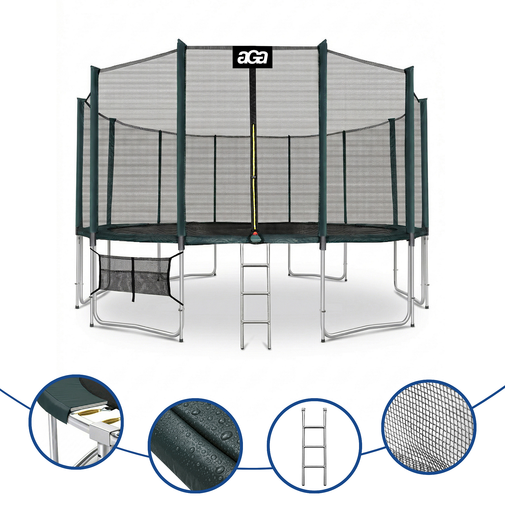 Aga SPORT PRO Trampolína 500 cm Tmavě zelená + ochranná síť + žebřík + kapsa na obuv