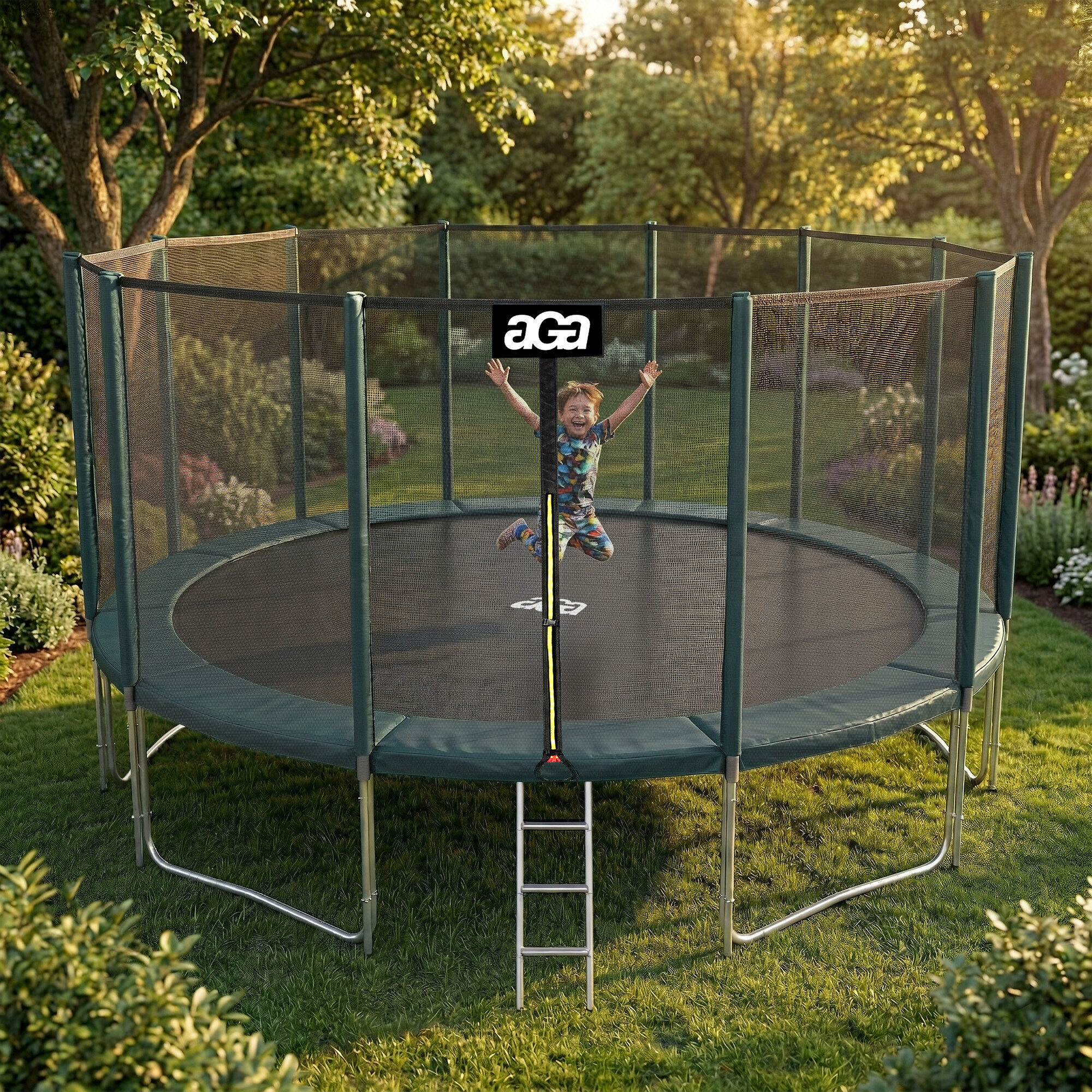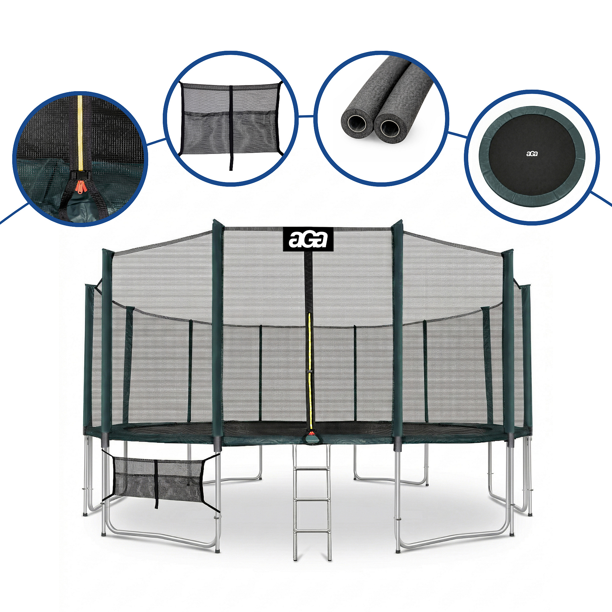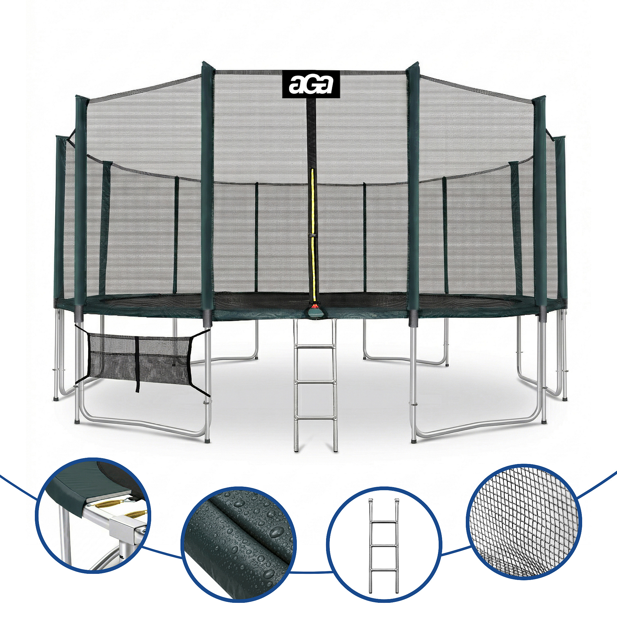 Aga SPORT PRO Trampolína 518 cm Tmavě zelená + ochranná síť + žebřík + kapsa na obuv