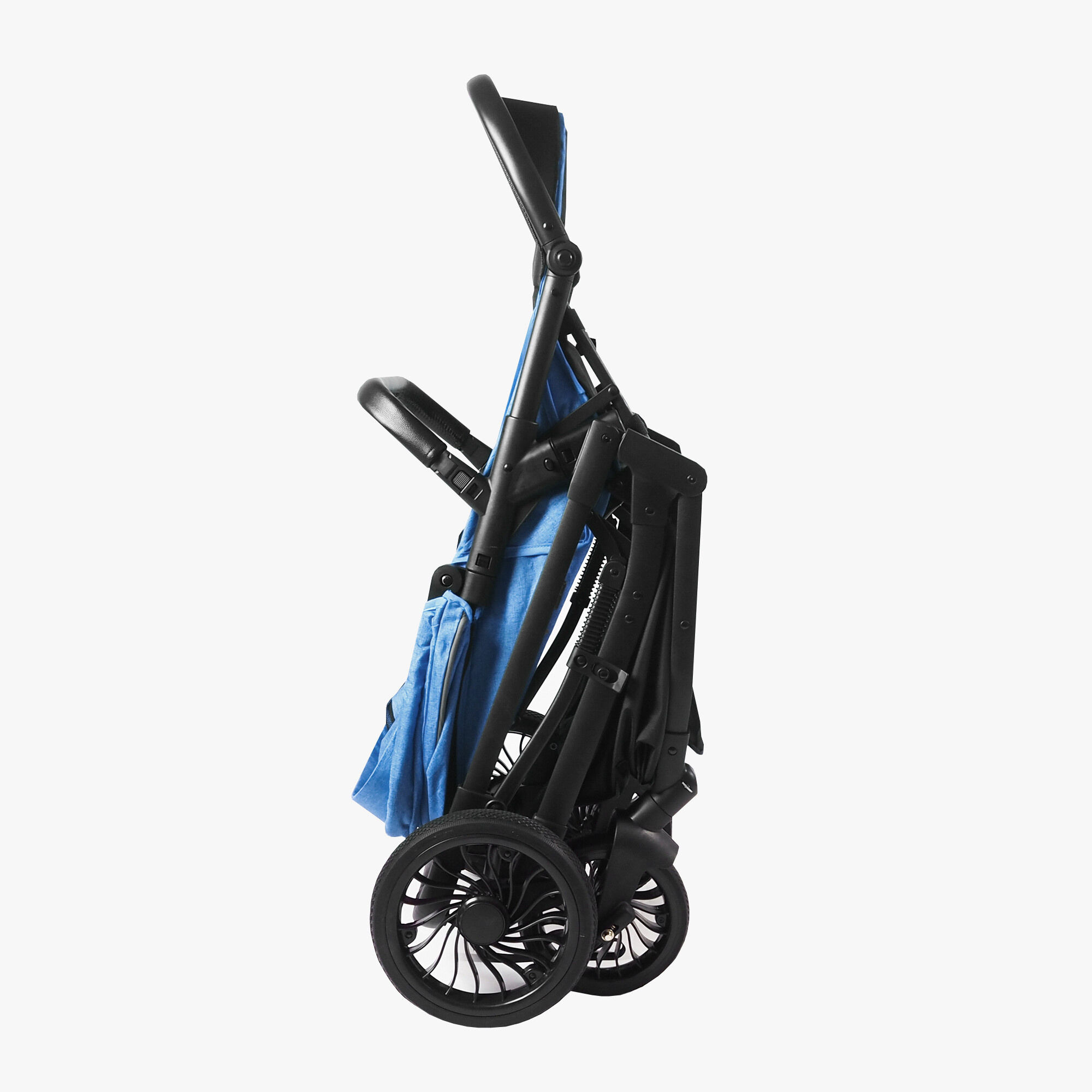 Kočárek je postaven na pevném a lehkém hliníkovém rámu, který zajišťuje dlouhou životnost a odolnost. Tento rám je navržen tak, aby poskytoval maximální stabilitu a zároveň byl snadno ovladatelný.