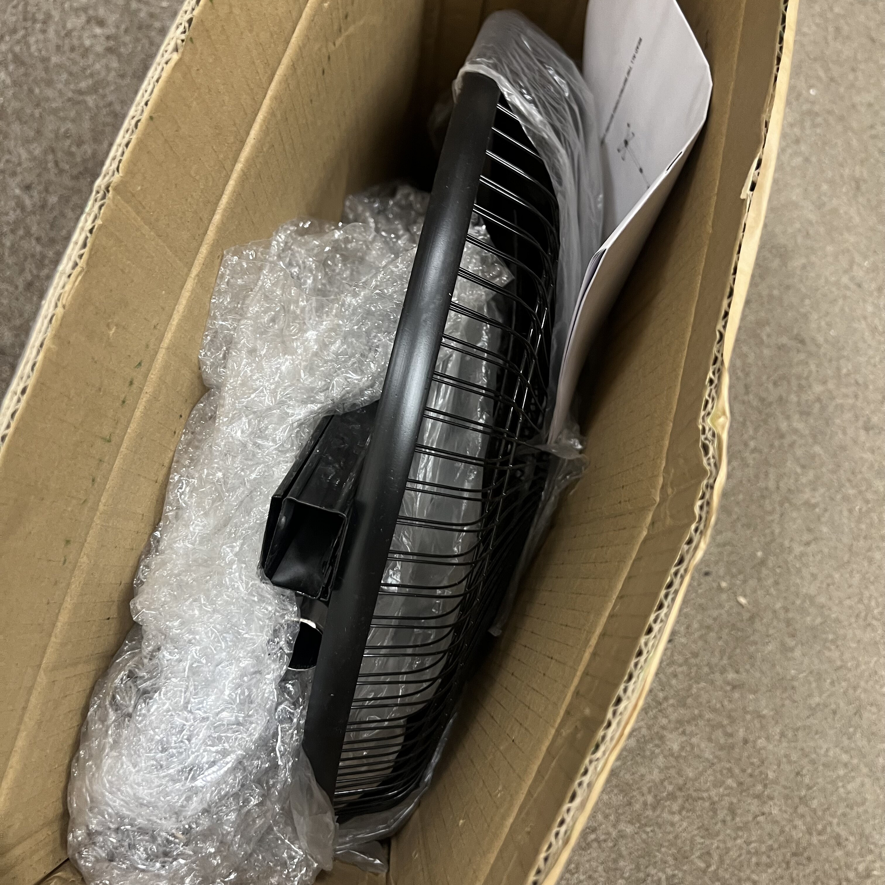 Tento ventilátor je plně funkční, avšak má poškozený obal a na některých místech je mírně poškrábaný v důsledku přepravy.