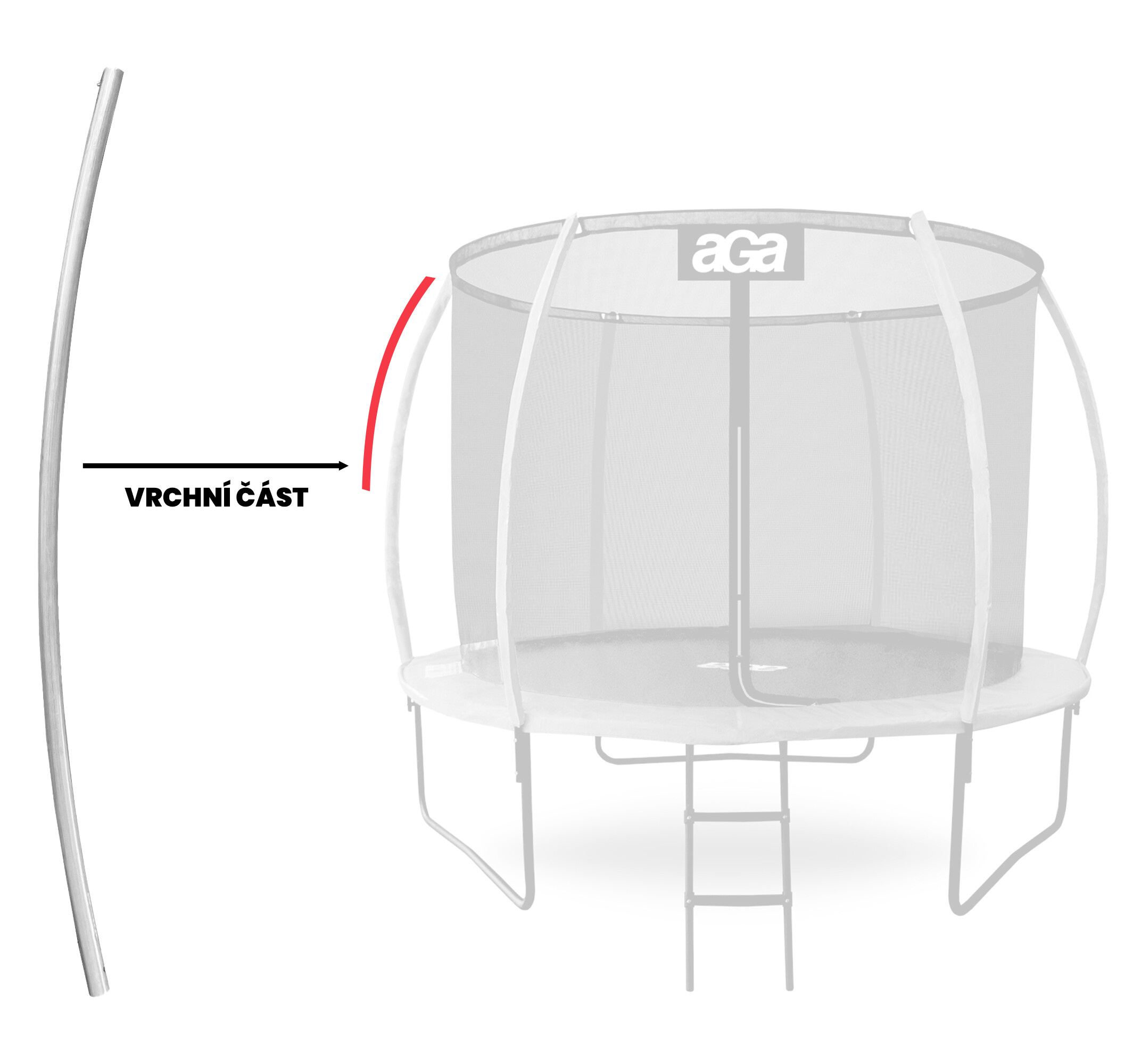 Specifikace stojné tyče AGA k trampolíně -vrchní část.