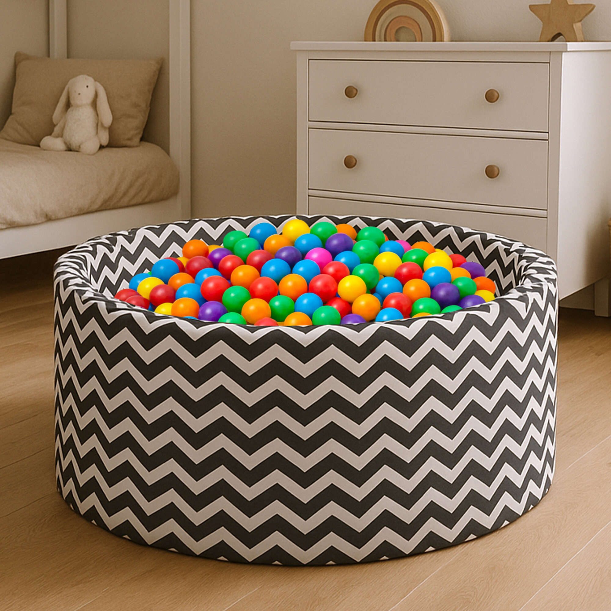 Stěny bazénku jsou vyplněny odolnou polyuretanovou pěnou, která je potažena látkou.