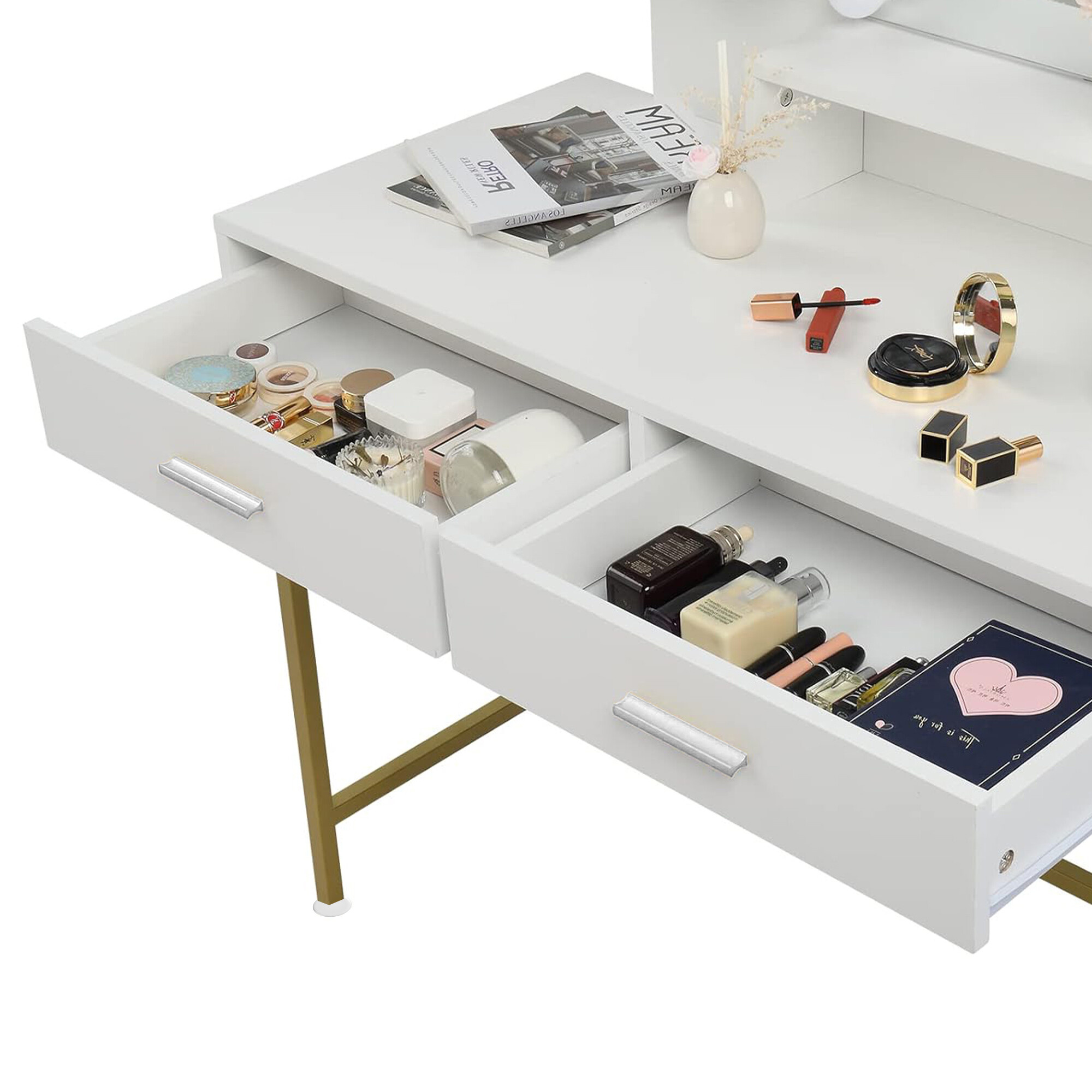 Určitě oceníte i 2 prostorné zásuvky, v kterých si pohodlně odložíte všechny svoje kosmetické pomůcky, šperky a ostatní doplňky.