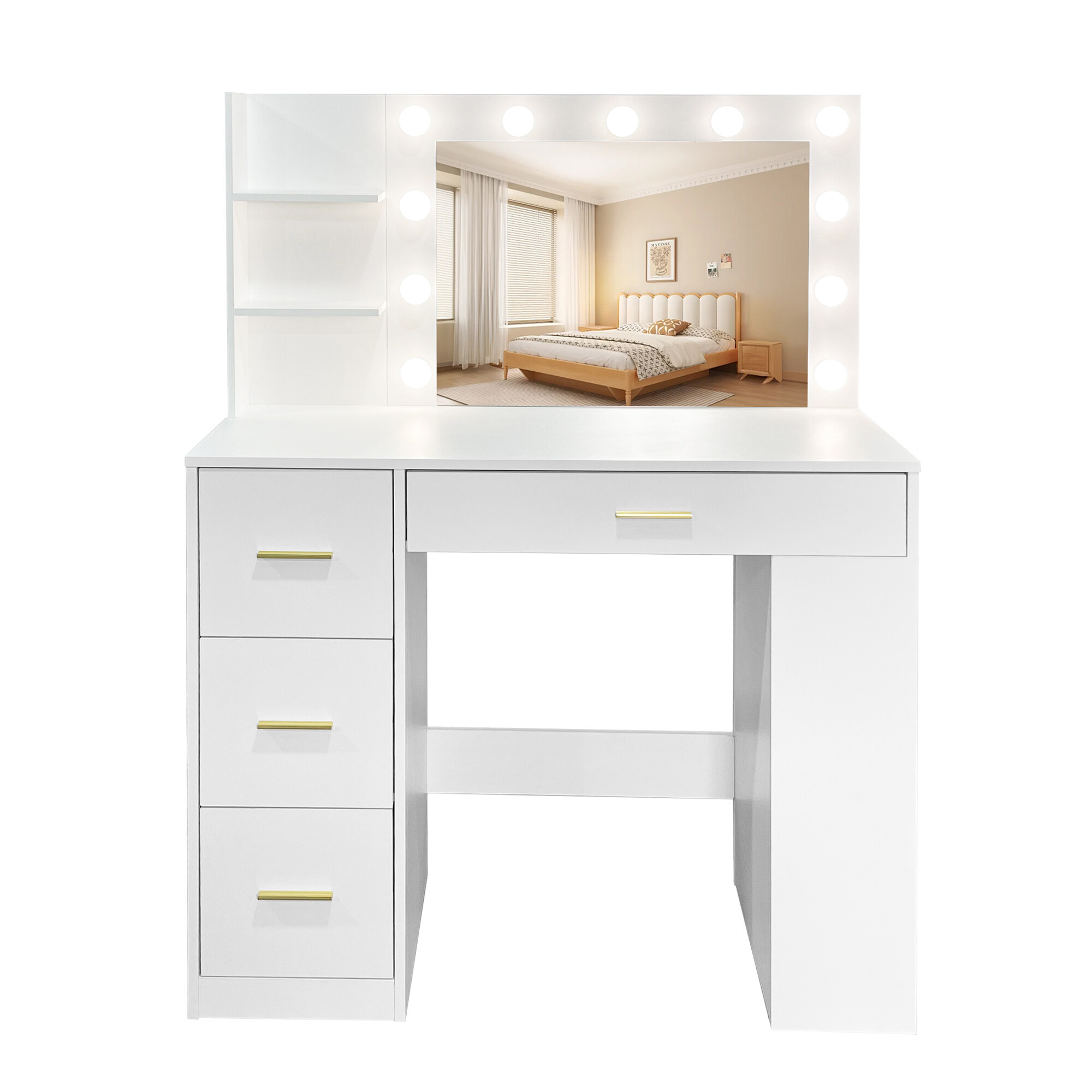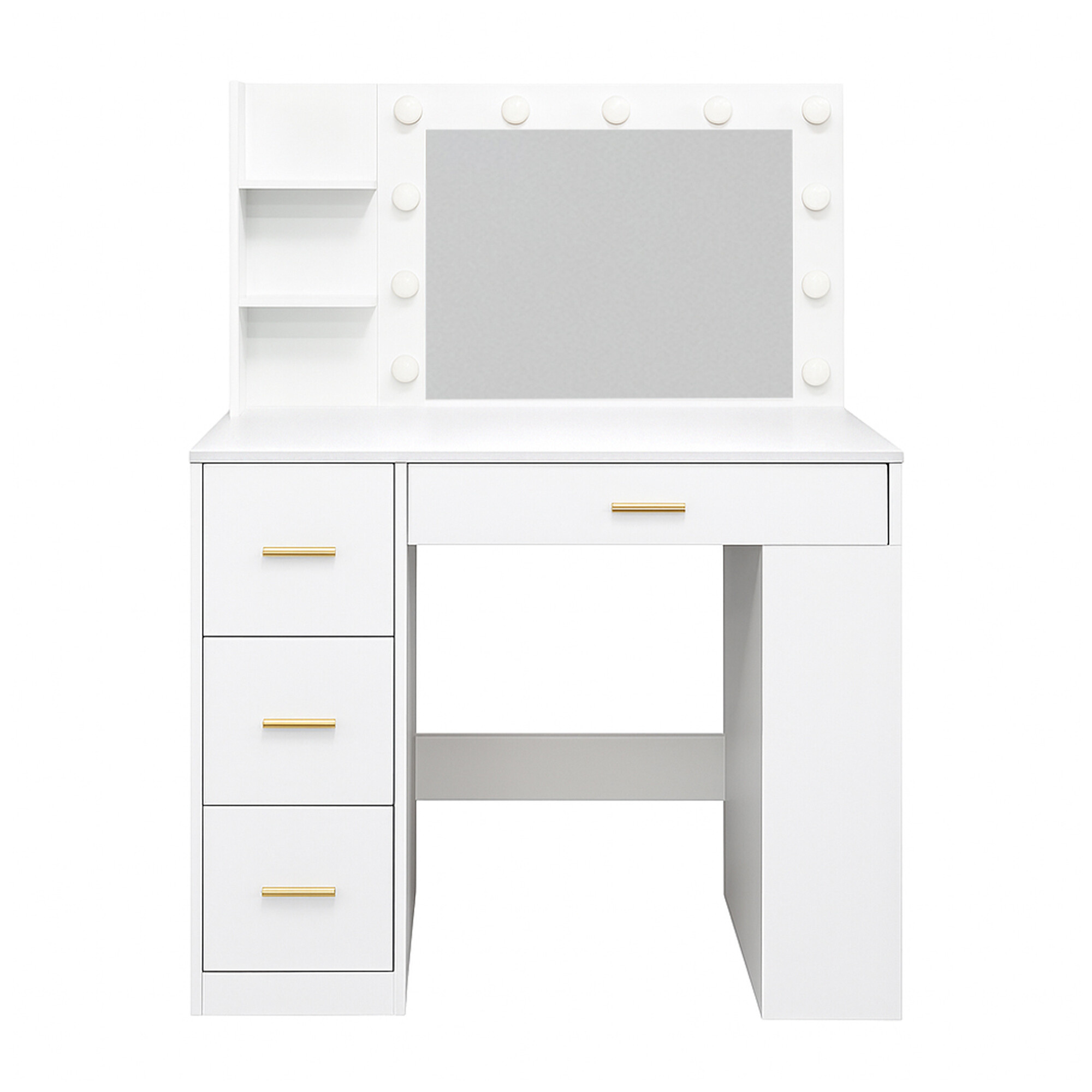 Vedle zrcadla se nachází dvě praktické otevřené poličky, na které si můžete vystavit své oblíbené kosmetické produkty, parfémy či dekorace. Čtyři prostorné zásuvky pak nabízejí dostatek úložného prostoru pro make-up, šperky i další doplňky, které tak budete mít vždy přehledně po ruce.