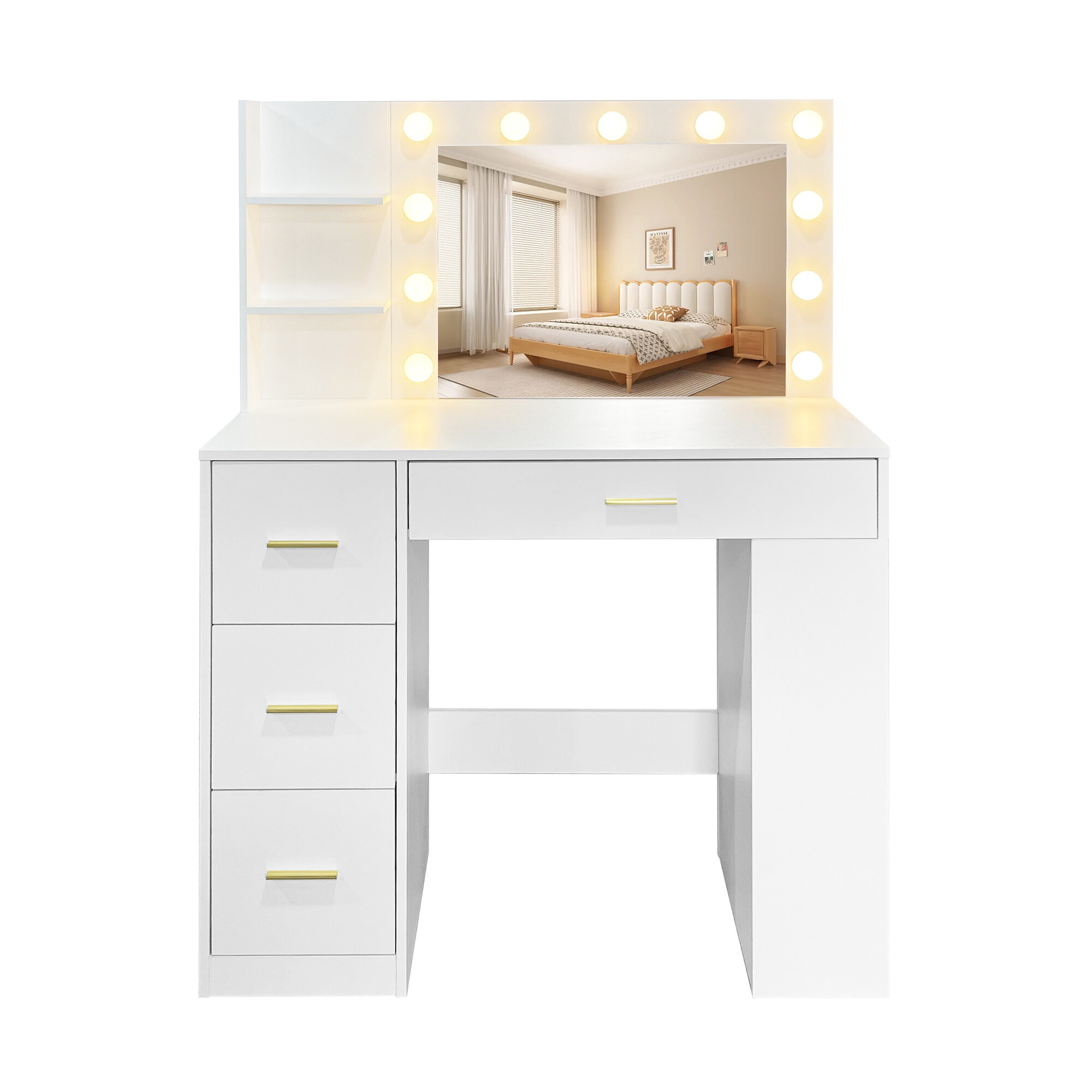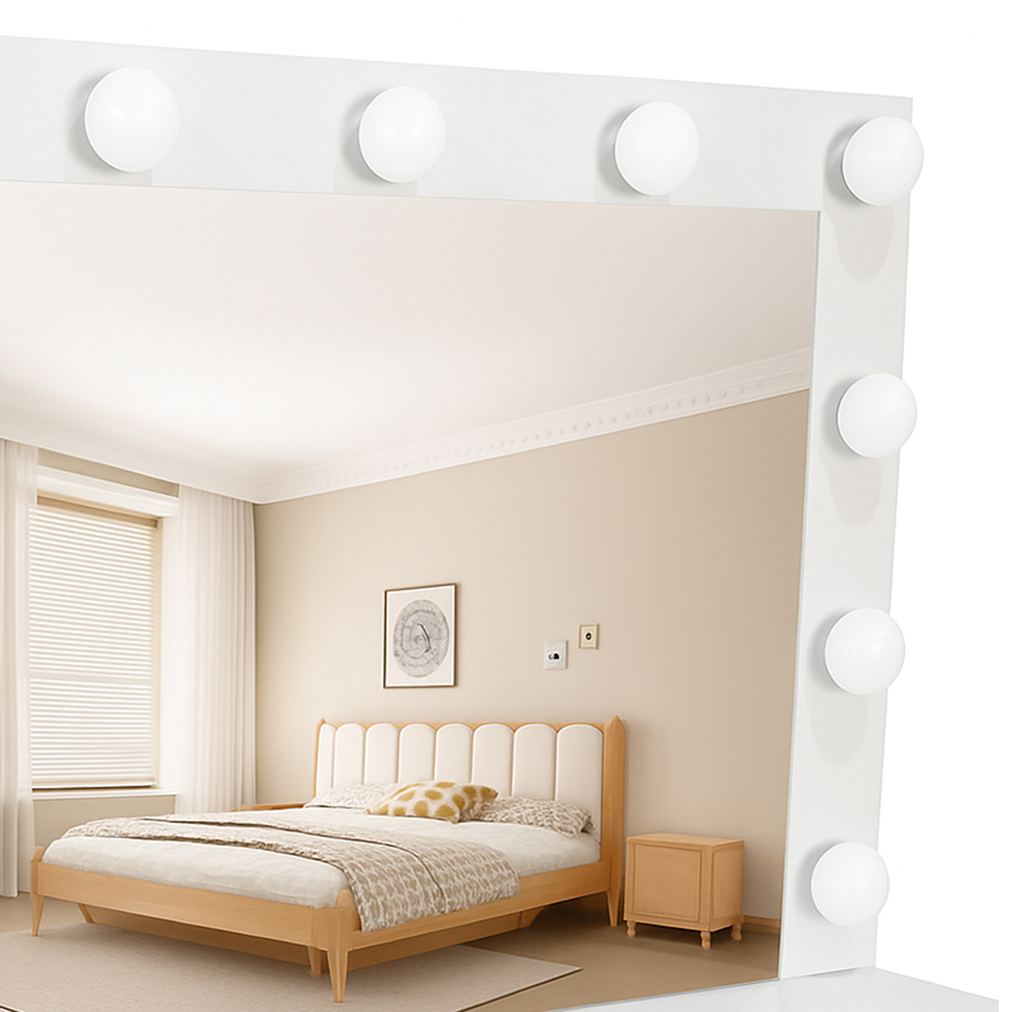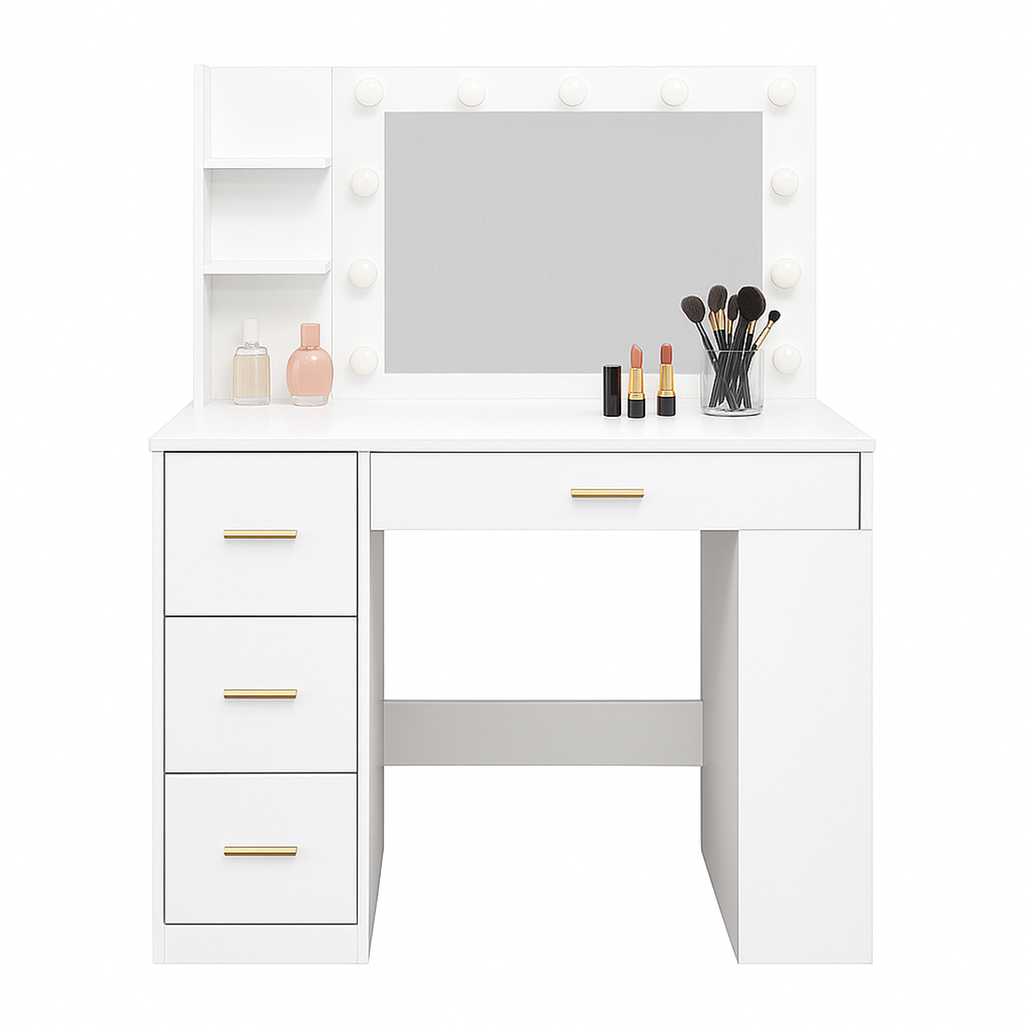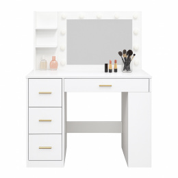 Dominantou stolku je velké zrcadlo s 11 LED žárovkami, u kterých si můžete jednoduše měnit teplotu světla od studené přes neutrální až po teplou. Díky tomu si vždy zajistíte ideální osvětlení pro líčení, úpravu vlasů nebo večerní péči o pleť.