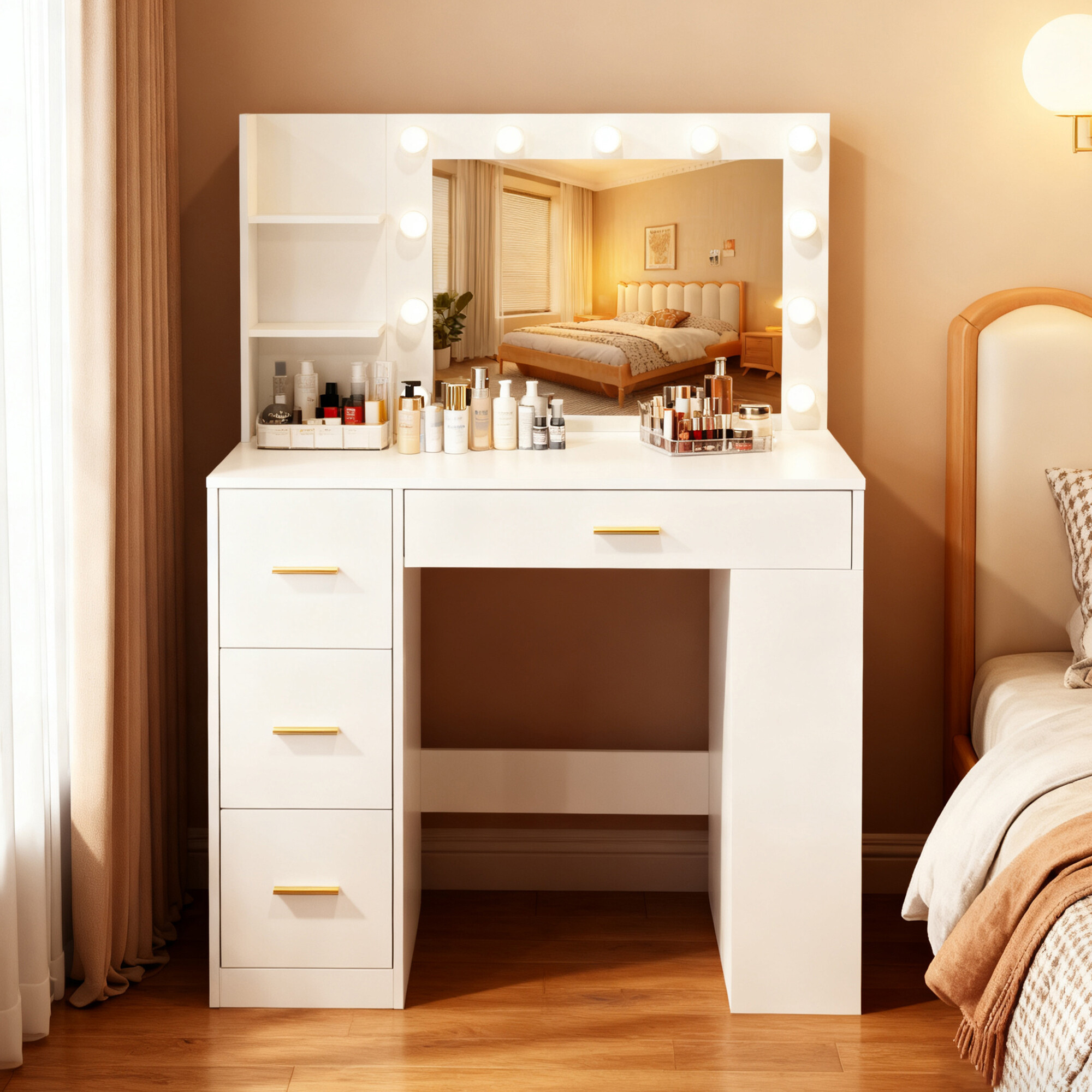 Dopřejte si každodenní dávku luxusu s tímto moderním toaletním stolkem se zrcadlem a LED osvětlením. Stylový bílý stolek v matném provedení se stane nejen praktickým, ale i estetickým doplňkem každé ložnice či šatny.
