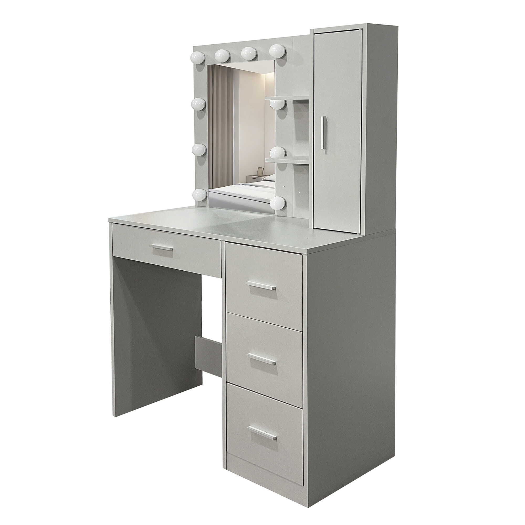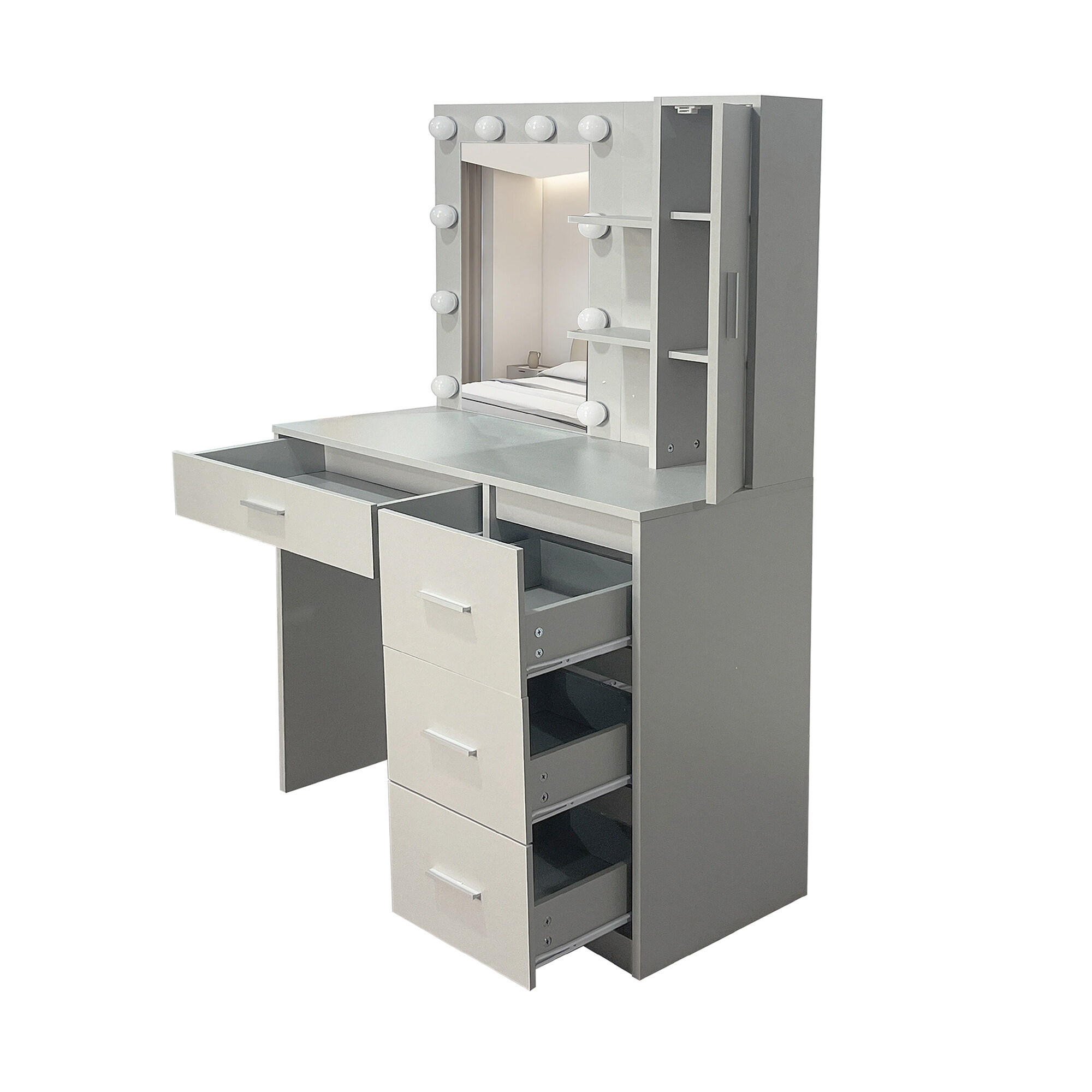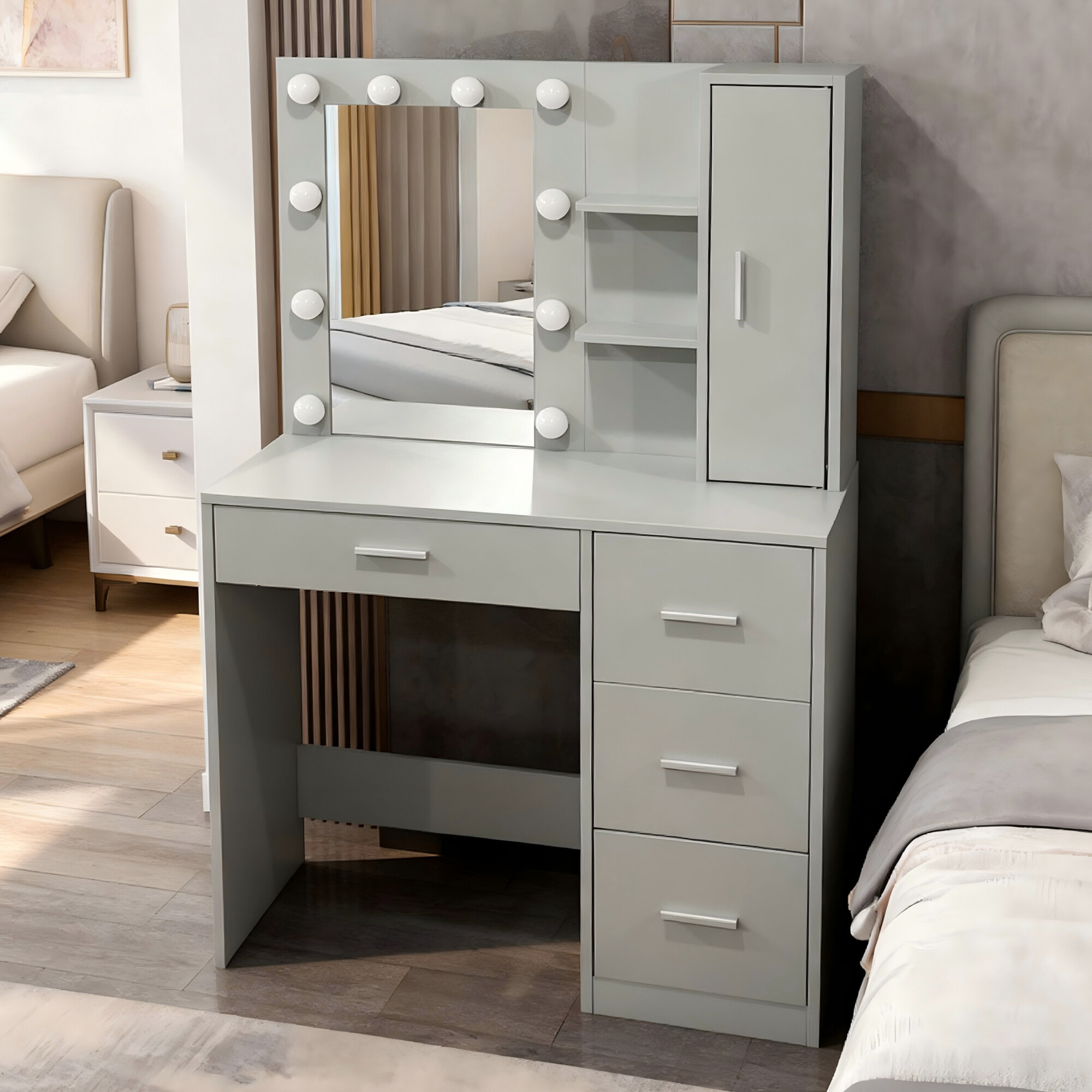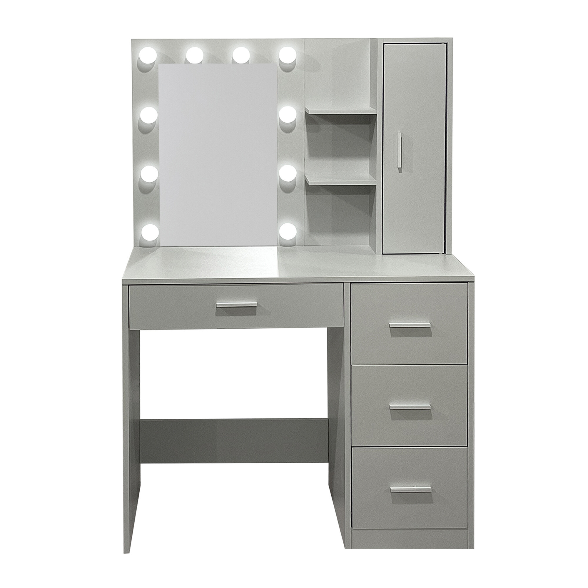Dominantou stolku je velké zrcadlo s 10 LED žárovkami. Díky tomu si vždy zajistíte ideální osvětlení pro líčení, úpravu vlasů nebo večerní péči o pleť.