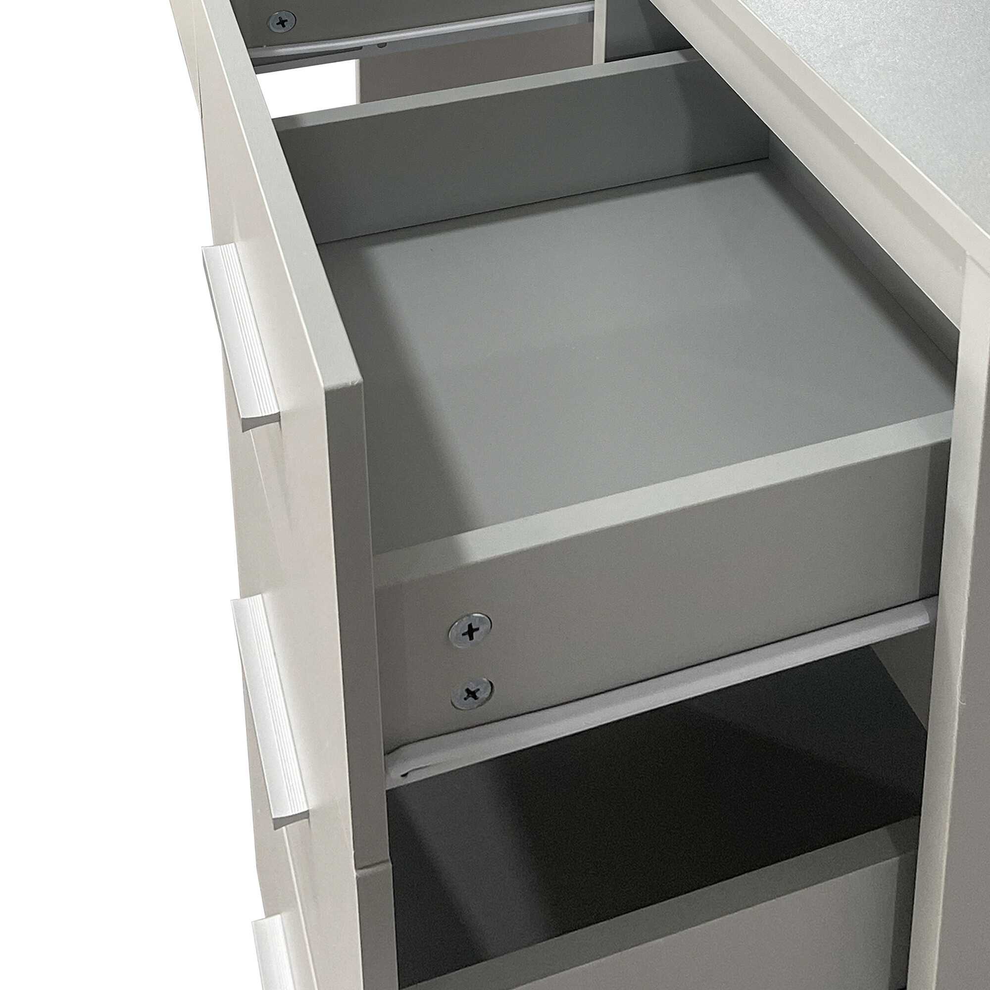 Vedle zrcadla se nachází dvě praktické otevřené poličky a zásuvka, na které si můžete vystavit své oblíbené kosmetické produkty, parfémy či dekorace. Čtyři prostorné zásuvky pak nabízejí dostatek úložného prostoru pro make-up, šperky i další doplňky, které tak budete mít vždy přehledně po ruce.