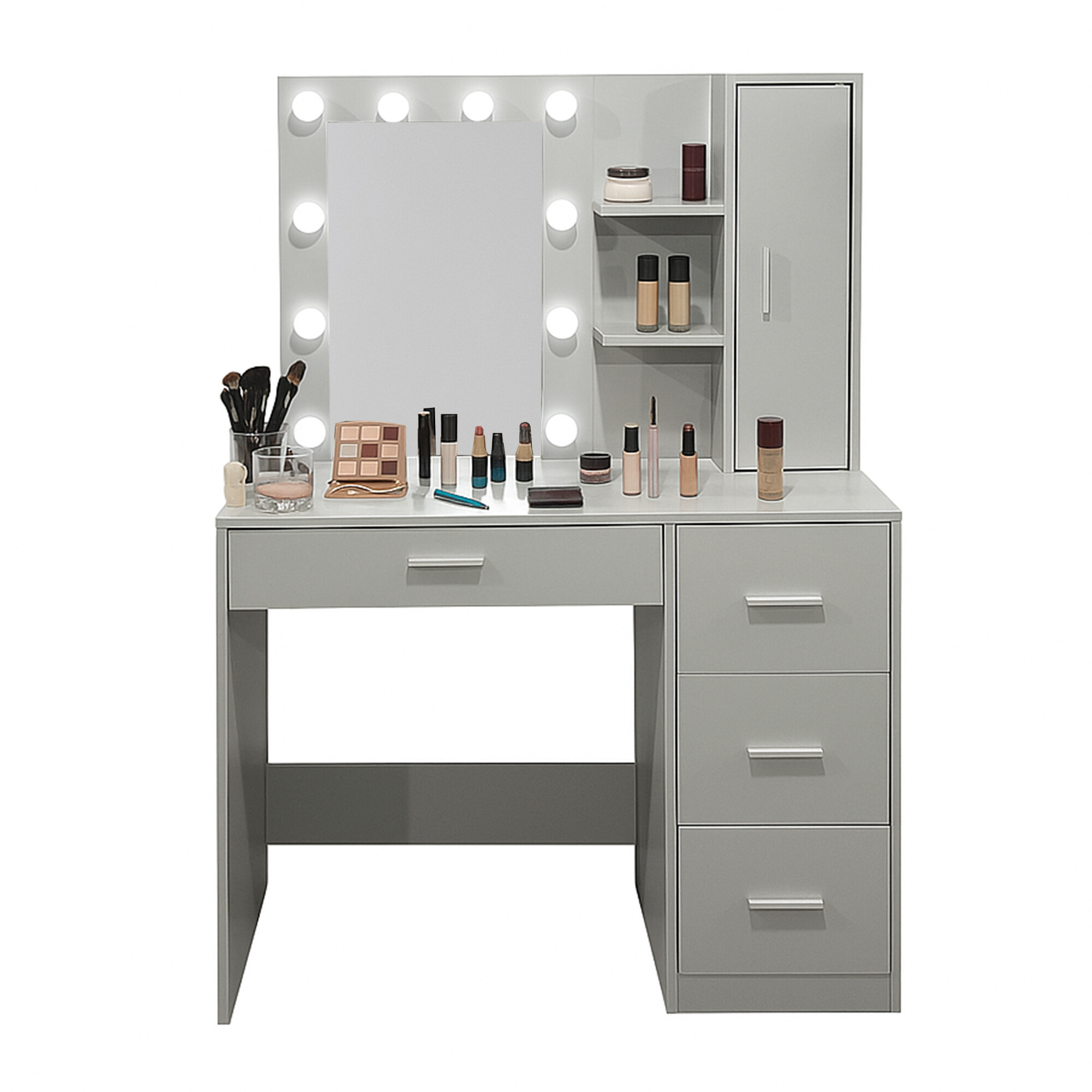 Dopřejte si každodenní dávku luxusu s tímto moderním toaletním stolkem se zrcadlem a LED osvětlením. Stylový bílý stolek v matném provedení se stane nejen praktickým, ale i estetickým doplňkem každé ložnice či šatny.