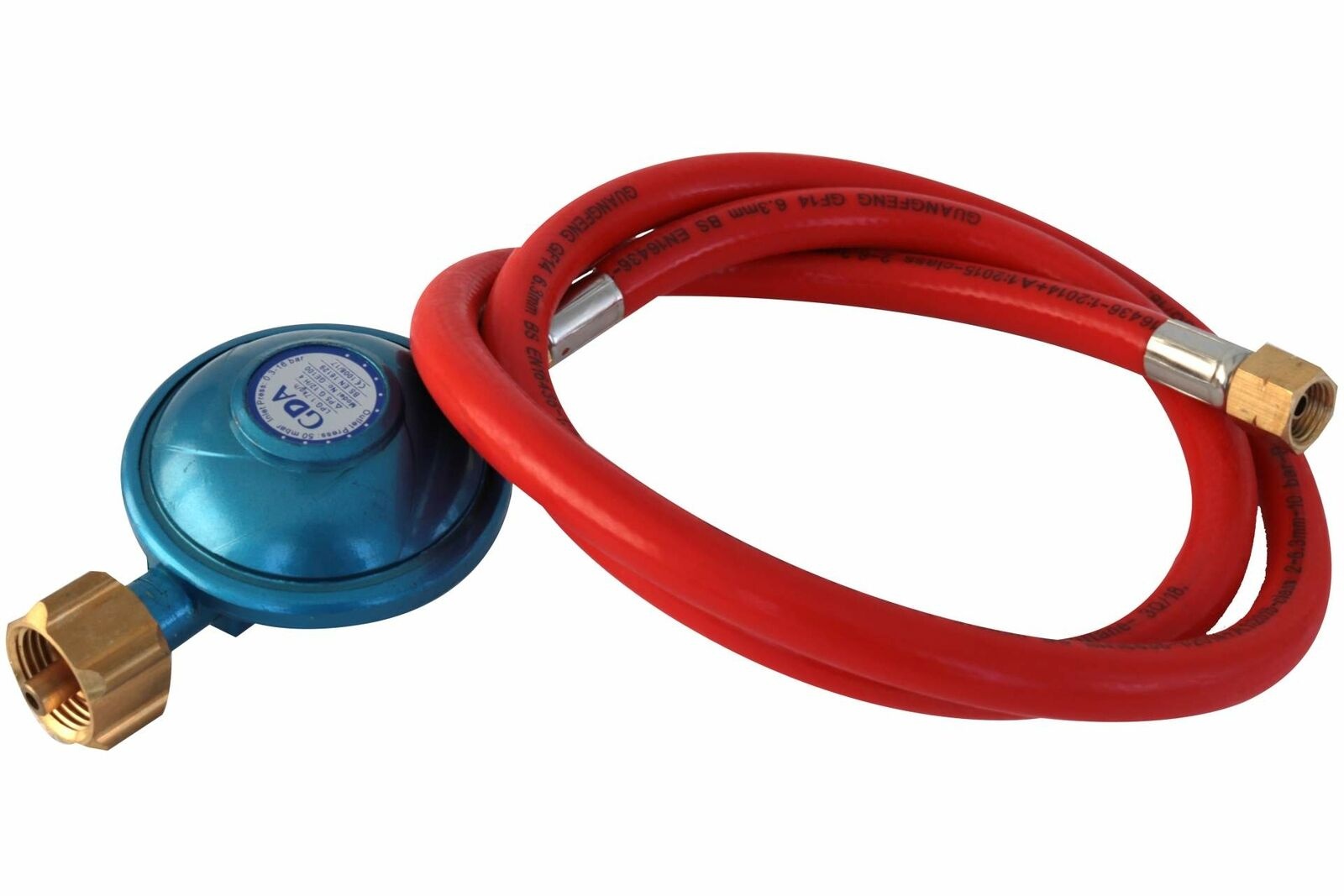 - Flexibilní přívod plynu s regulátorem tlaku plynu pro připojení zařízení k délce plynové láhve 1,20 m