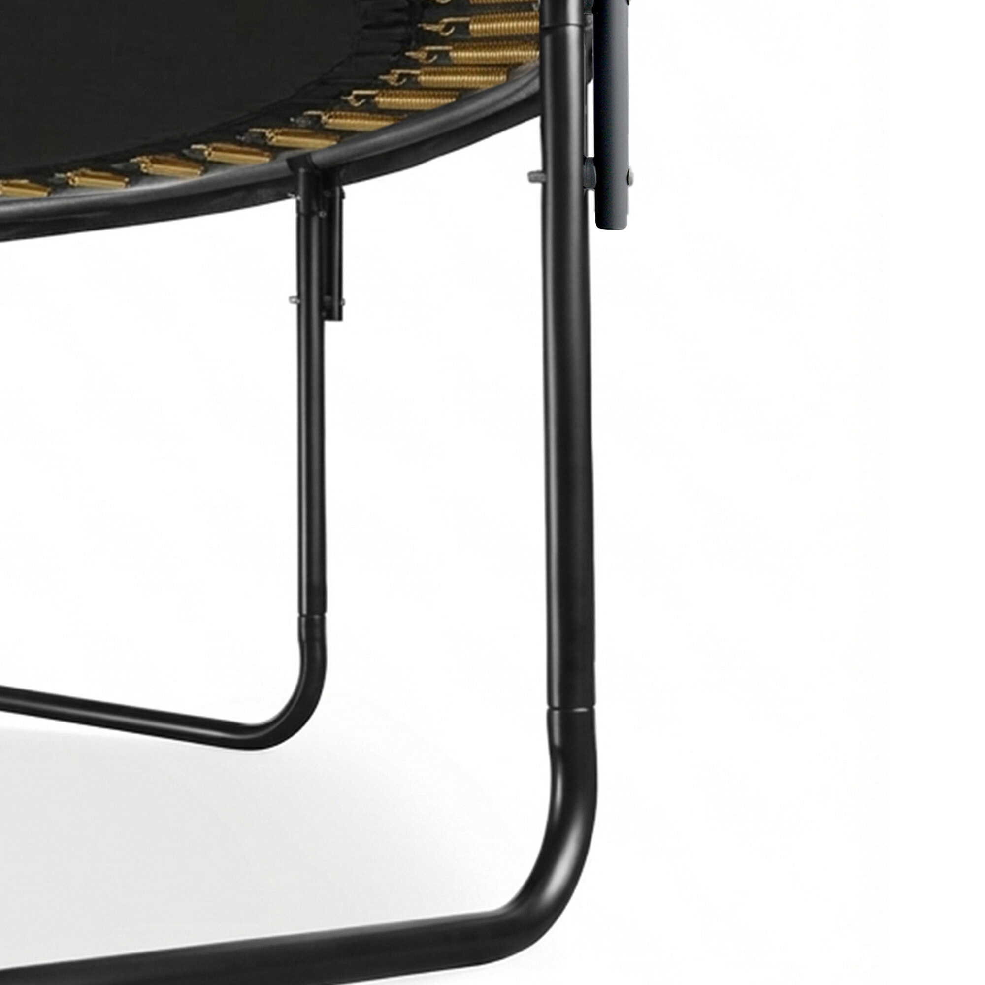 Kruhová Hi-Ten zesílená konstrukce trampolíny je vyrobená z kvalitní galvanizované oceli z vynikající odolností proti korozi, U nohy mají povrchovou úpravu práškovou barvou.