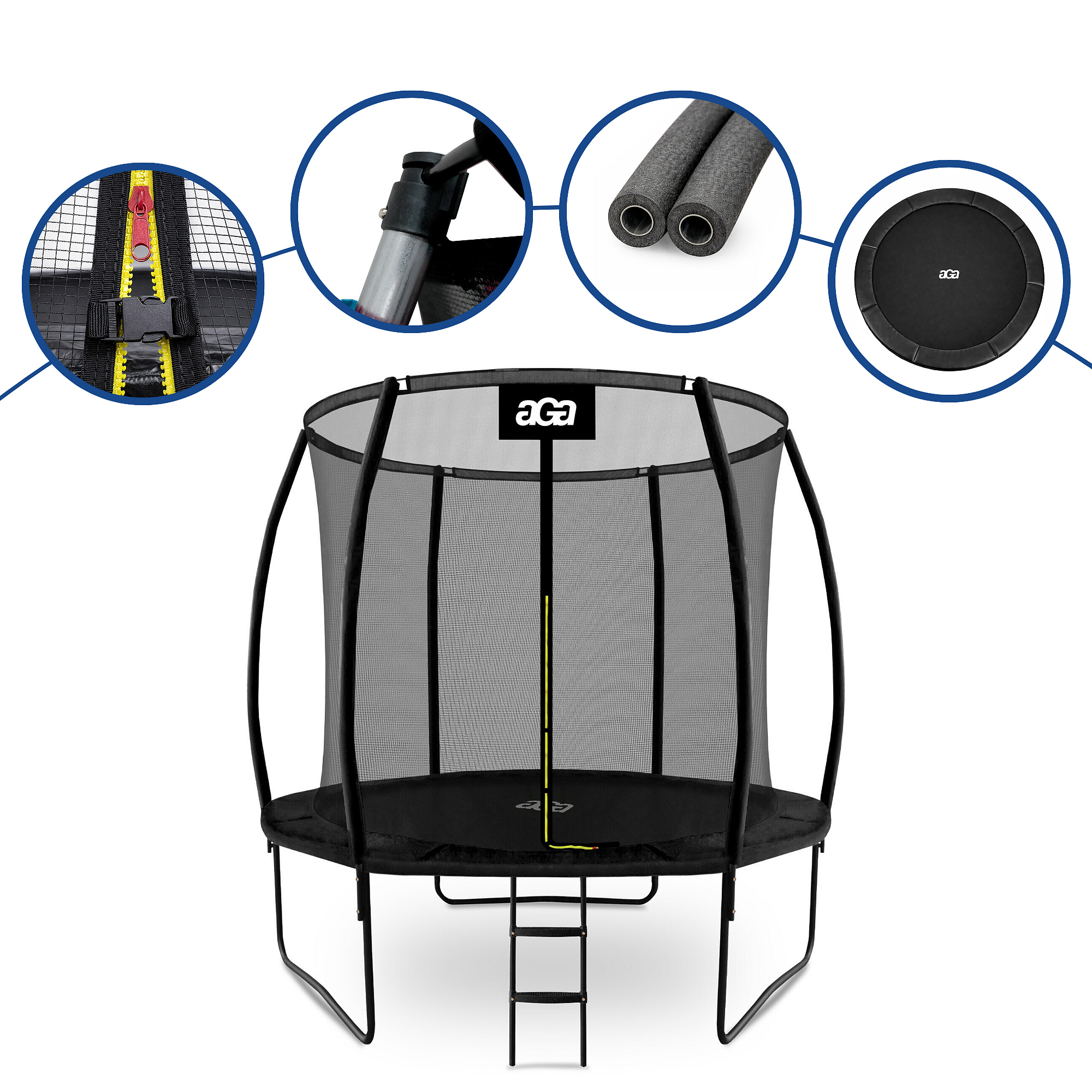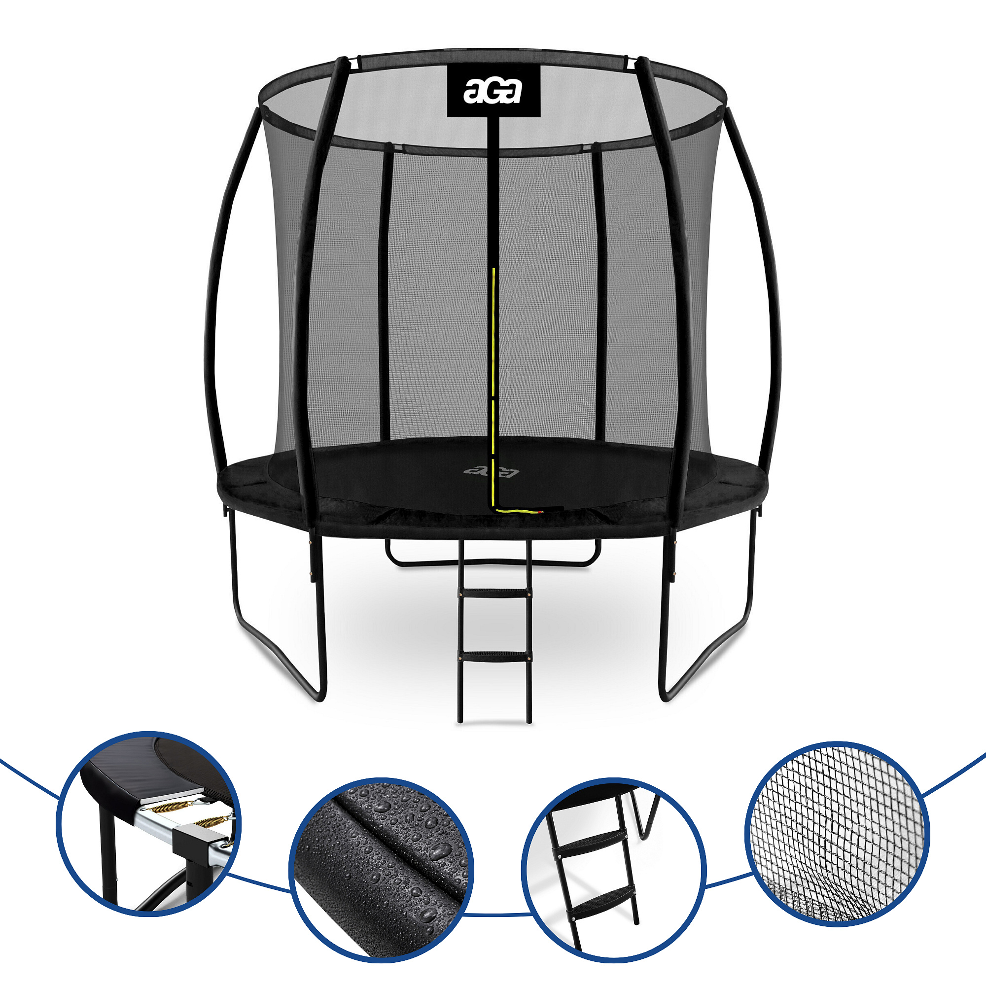 Aga SPORT EXCLUSIVE Trampolína 250 cm Černá + ochranná síť + žebřík
