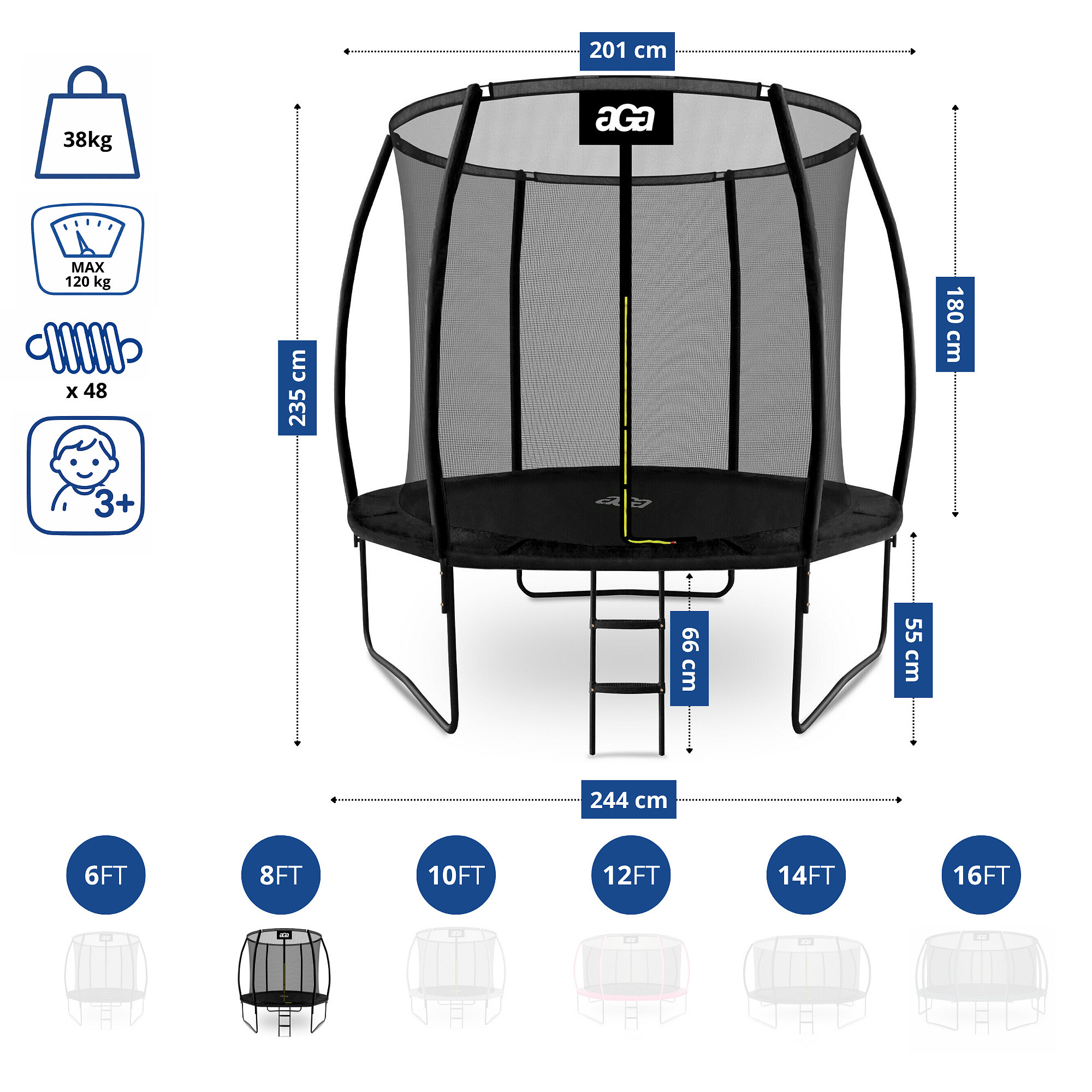 • Průměr trampolíny: 250 cm (8 ft)
