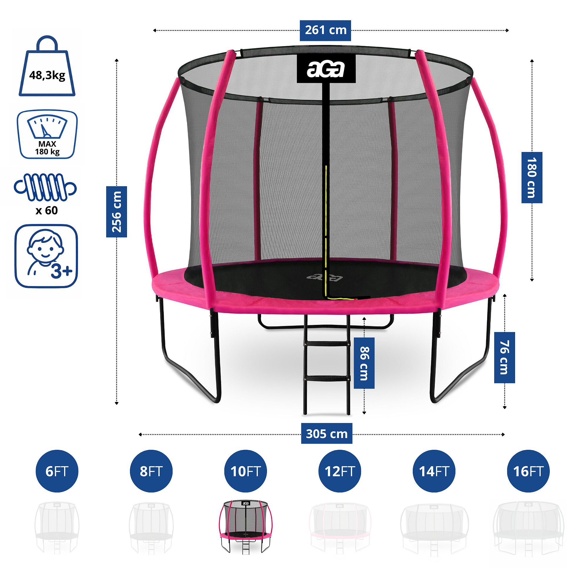 • Průměr trampolíny: 305 cm (10 ft)