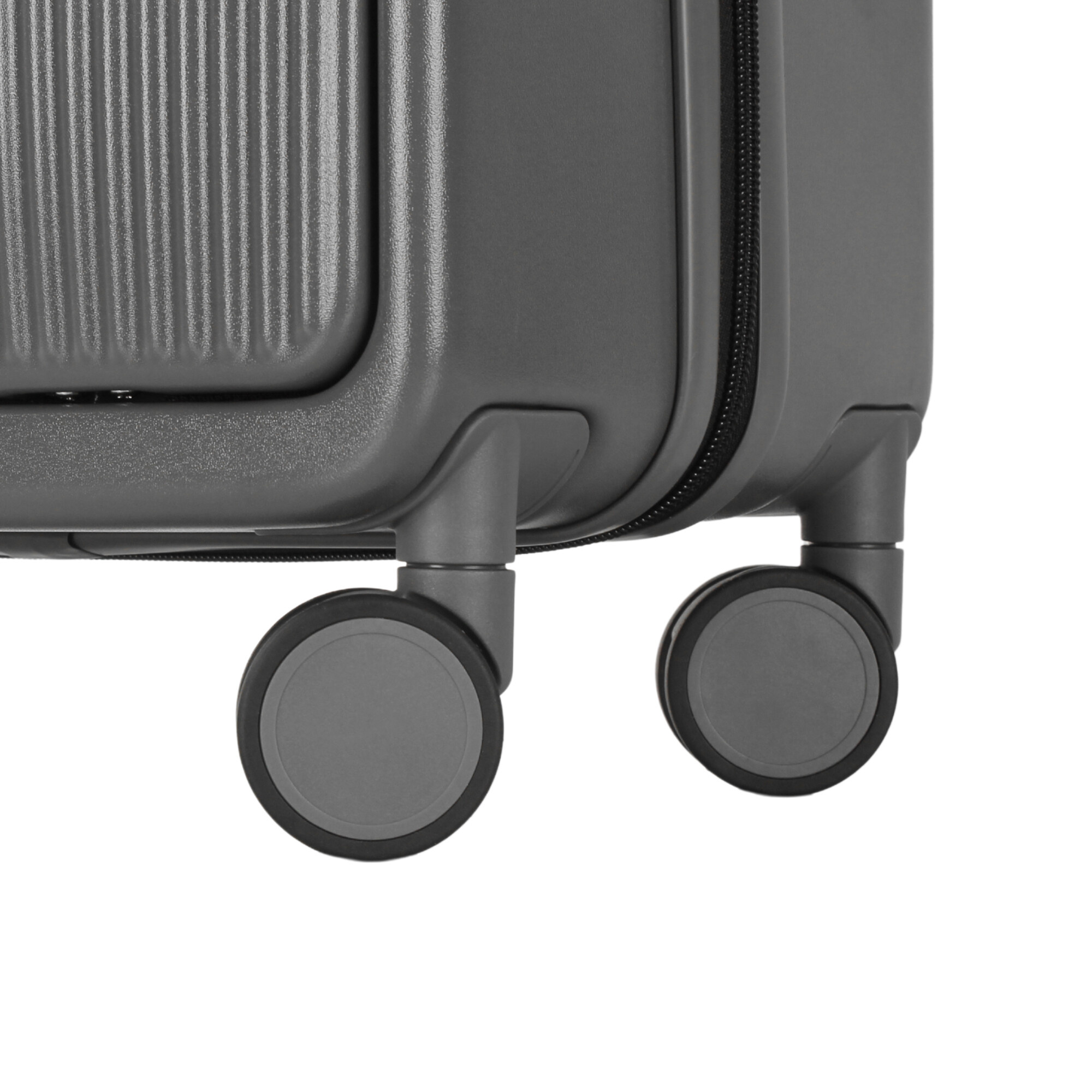 Čtyři 360° otočná dvojkolečká zajišťují hladký a tichý pohyb na všech typech povrchů. O snadné ovládání se stará teleskopická třístupňová rukojeť a dvě pevné rukojeti na horní i boční straně kufru.