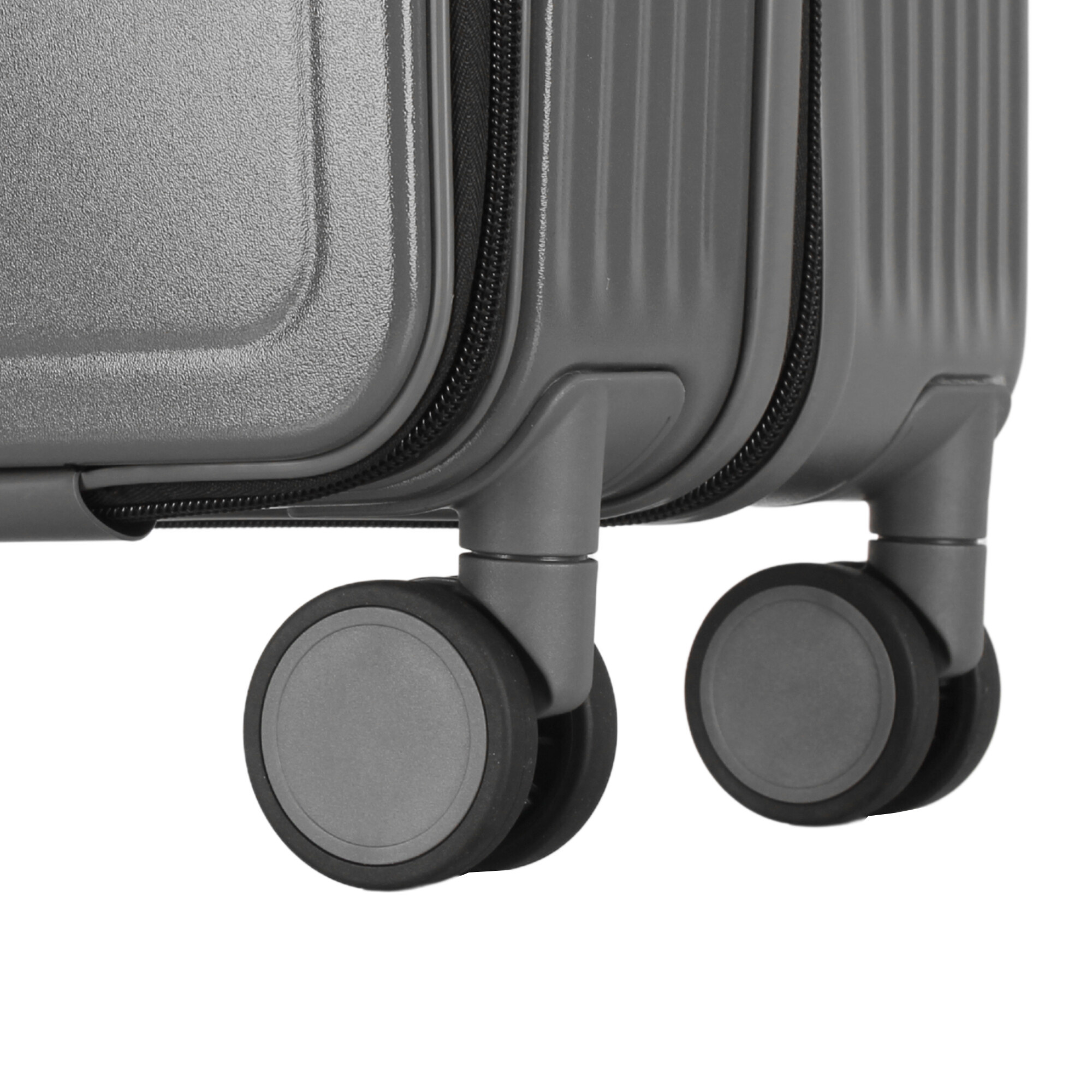 Čtyři 360° otočná dvojkolečká zajišťují hladký a tichý pohyb na všech typech povrchů. O snadné ovládání se stará teleskopická třístupňová rukojeť a dvě pevné rukojeti na horní i boční straně kufru.
