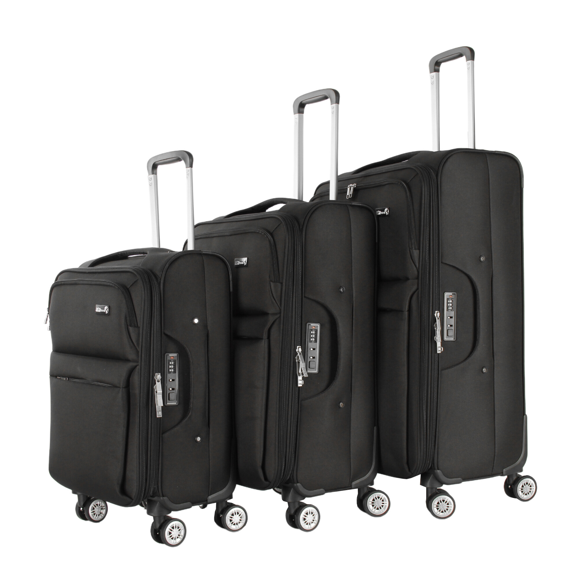 Každý kufr je vybaven 4 otočnými a zdvojenými kolečky, které umožňují snadnou a plynulou manipulaci ve všech směrech. Díky těmto kolečkům můžete kufry snadno přemisťovat i v úzkých prostorách, jako jsou letištní haly nebo hotelové chodby. Navíc, zdvojená kolečka zajišťují větší stabilitu a odolnost proti opotřebení.