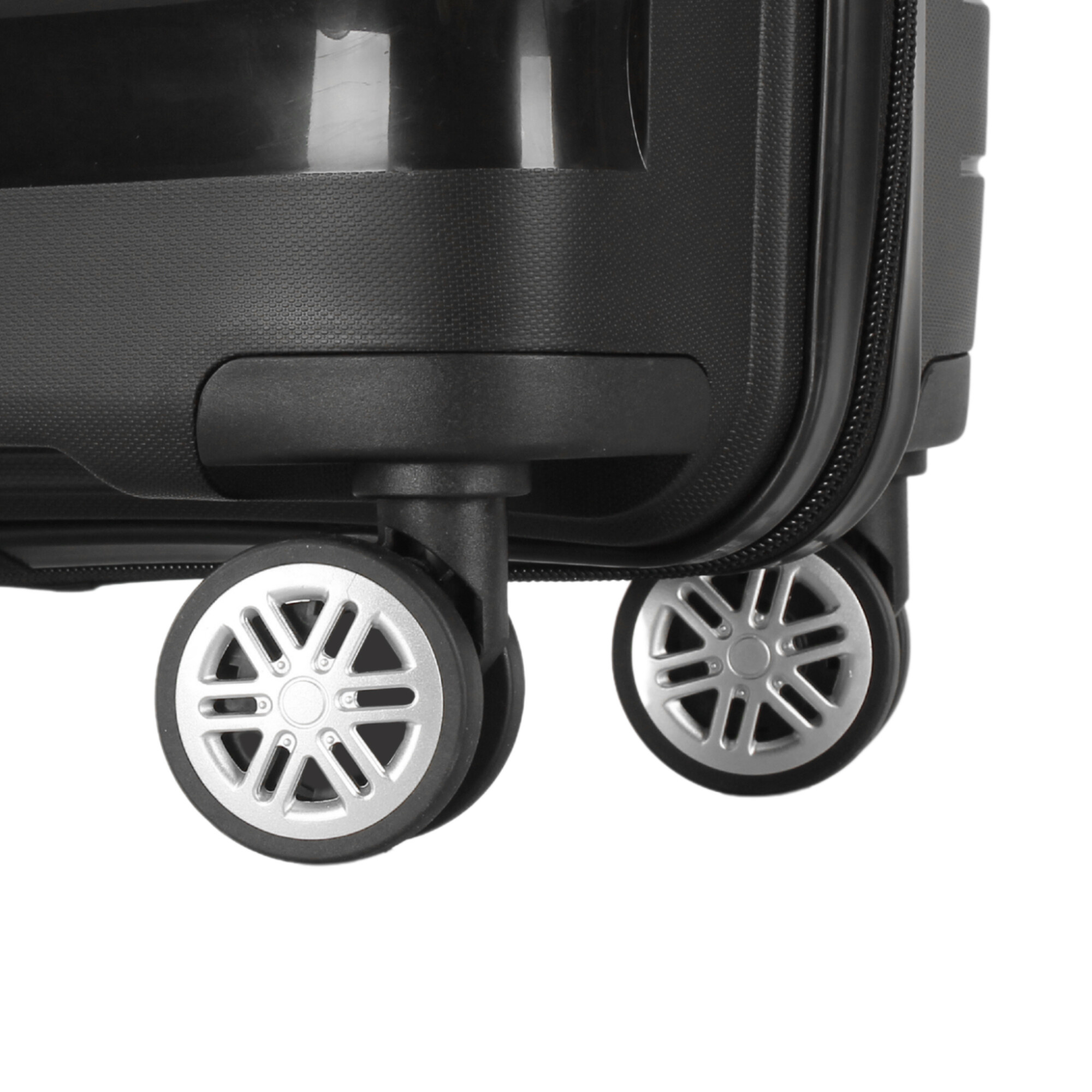 Každý kufr je vybaven 4 otočnými a zdvojenými kolečky, které umožňují snadnou a plynulou manipulaci ve všech směrech. Díky těmto kolečkům můžete kufry snadno přemisťovat i v úzkých prostorách, jako jsou letištní haly nebo hotelové chodby. Navíc, zdvojená kolečka zajišťují větší stabilitu a odolnost proti opotřebení.