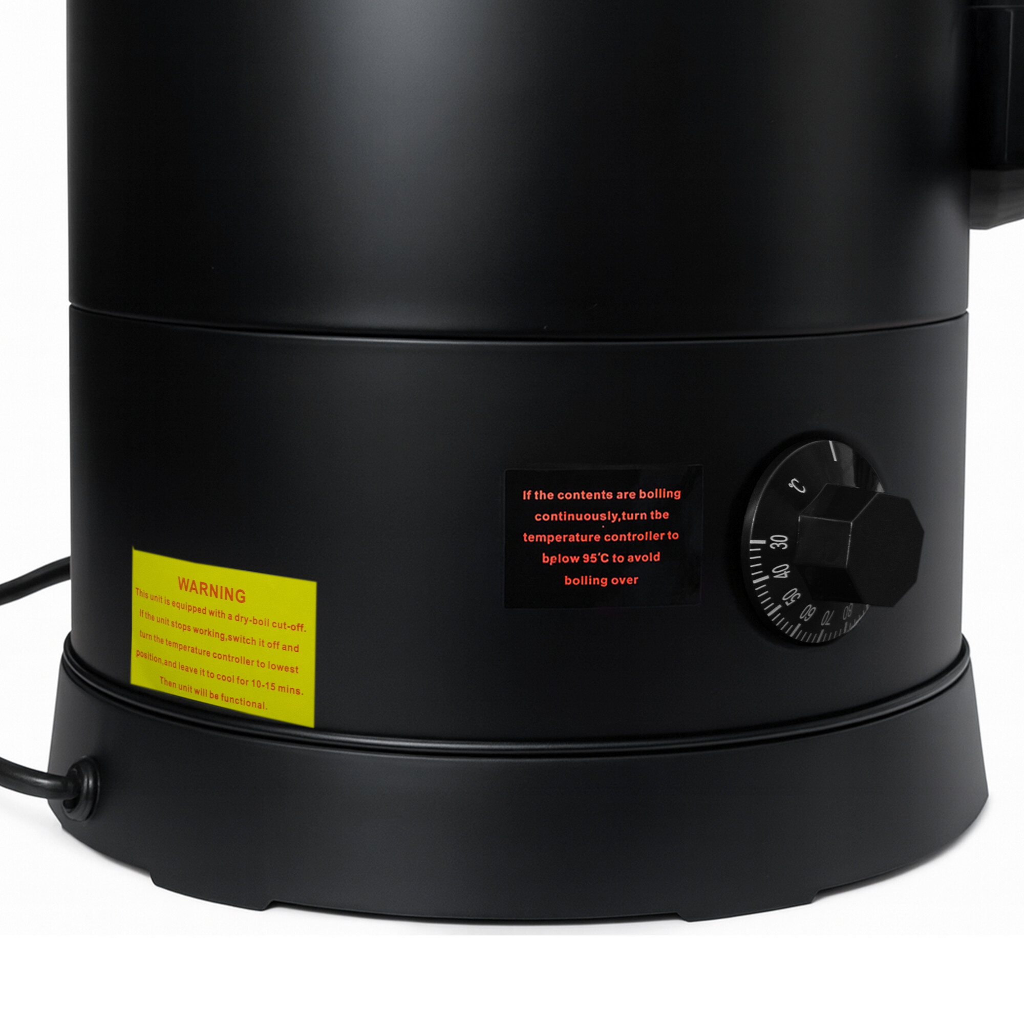 Pomocí otočného regulátoru lze jednoduše nastavit teplotu od 30 do 110 °C, podle toho, zda potřebujete nápoj udržovat teplý nebo jej přivést k varu. Kontrolka informuje o dosažení požadované teploty.