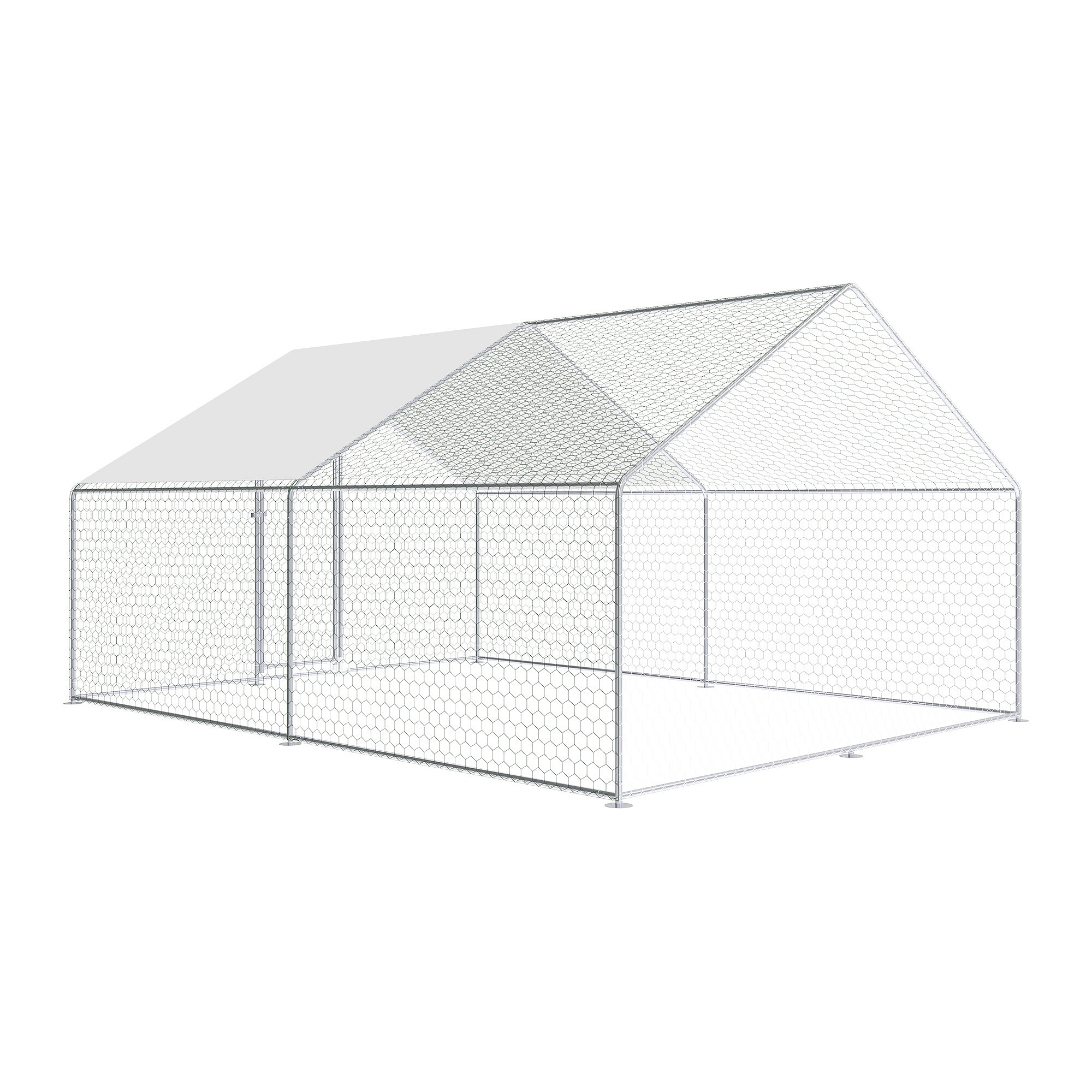Výběh pro drůbež je vyroben z pevné konstrukce z pozinkované oceli, která je odolná vůči korozi a vhodná pro dlouhodobé venkovní použití. Díky tomu si konstrukce zachovává svou funkčnost i při pravidelném vystavení povětrnostním podmínkám. Celý výběh je doplněn o pozinkované pletivo, které slouží jako ochranná síť pro slepice, kachny i další drobná zvířata a zároveň pomáhá chránit zvířata před predátory.