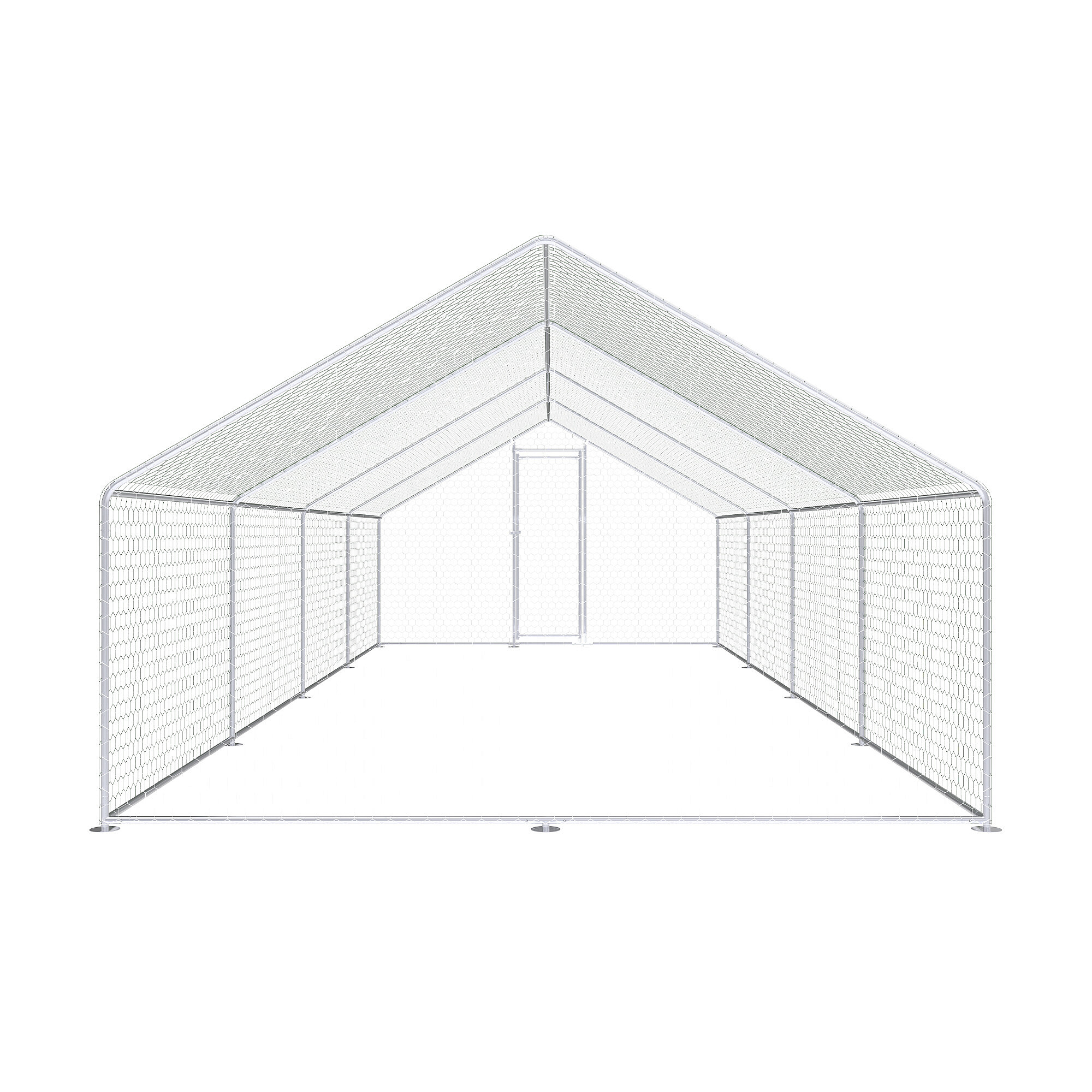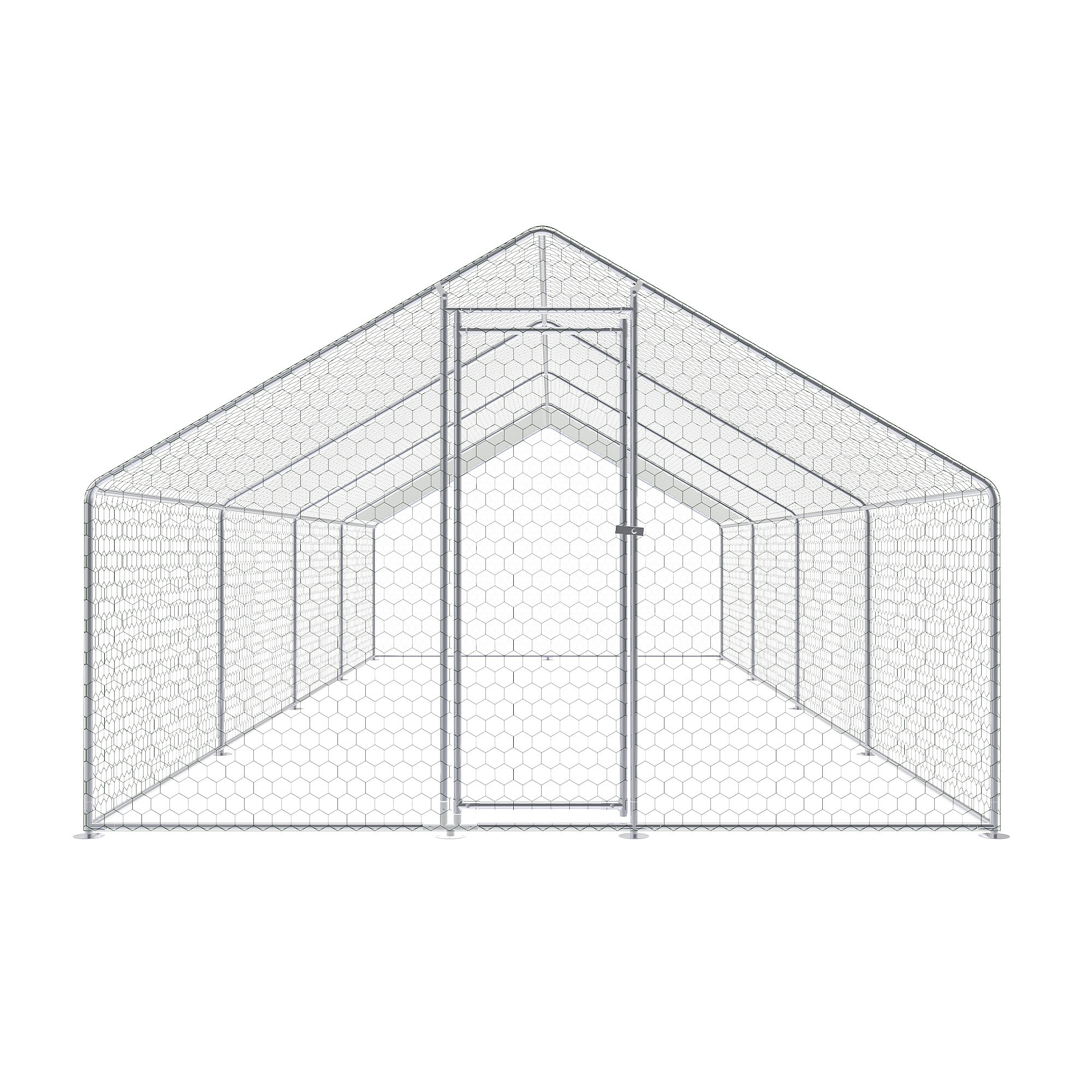 Výběh pro drůbež je vyroben z pevné konstrukce z pozinkované oceli, která je odolná vůči korozi a vhodná pro dlouhodobé venkovní použití. Díky tomu si konstrukce zachovává svou funkčnost i při pravidelném vystavení povětrnostním podmínkám. Celý výběh je doplněn o pozinkované pletivo, které slouží jako ochranná síť pro slepice, kachny i další drobná zvířata a zároveň pomáhá chránit zvířata před predátory.