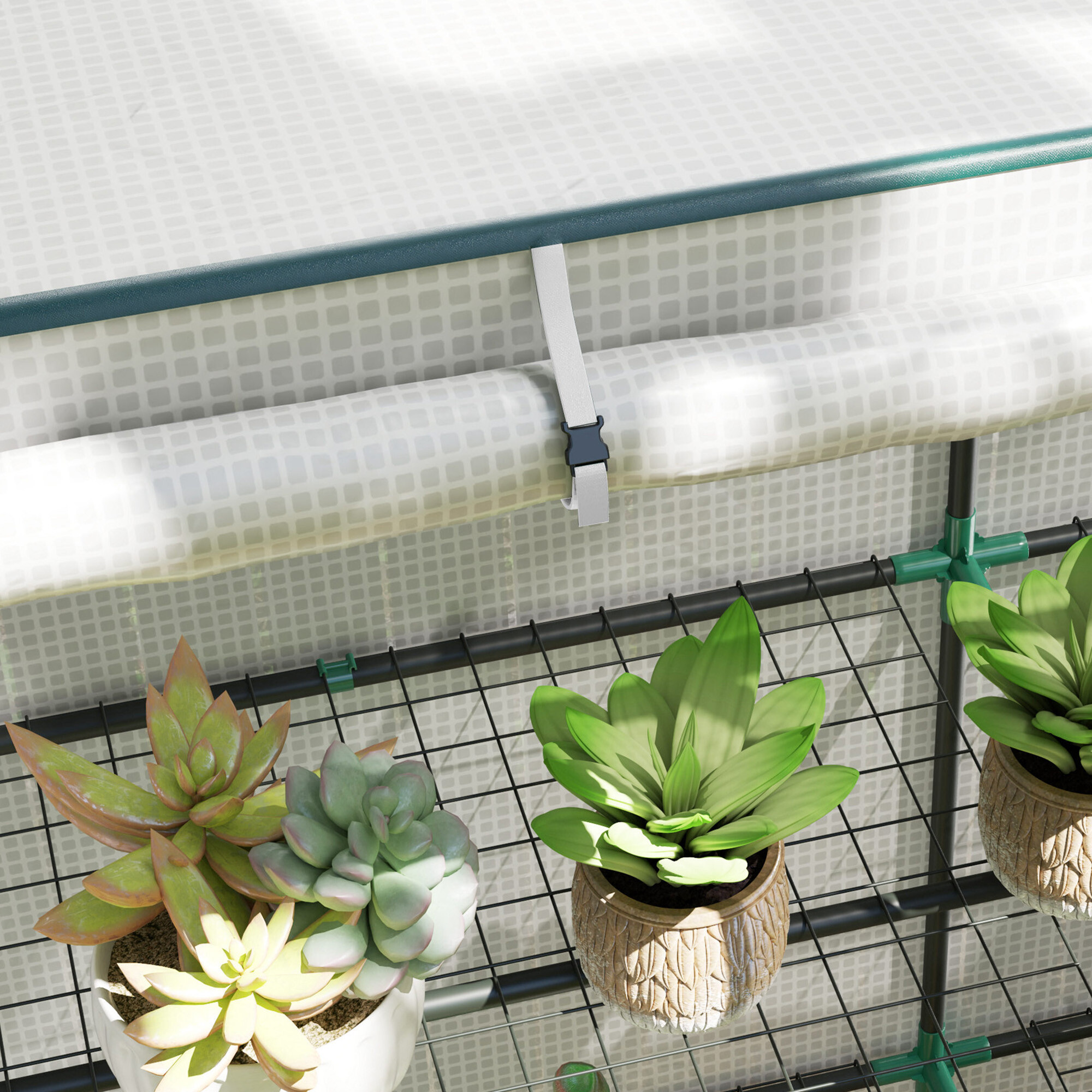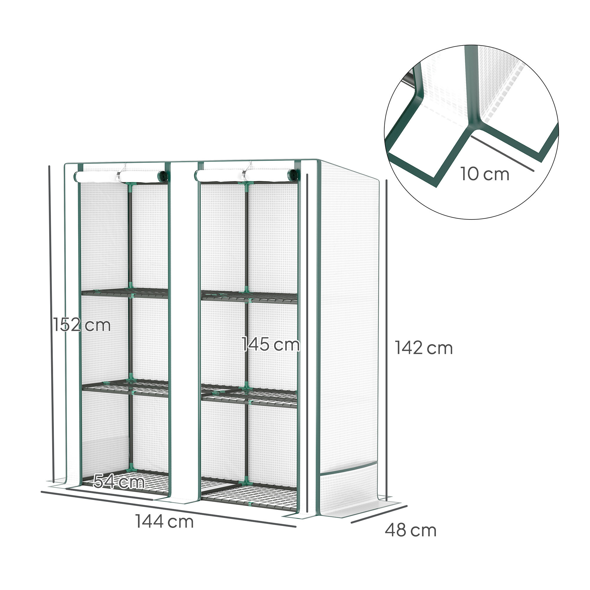 Konstrukce fóliovníku je vyrobená z pevných kovových trubek. Průhledný kryt s dvojitým zipem zajišťuje snadný přístup.