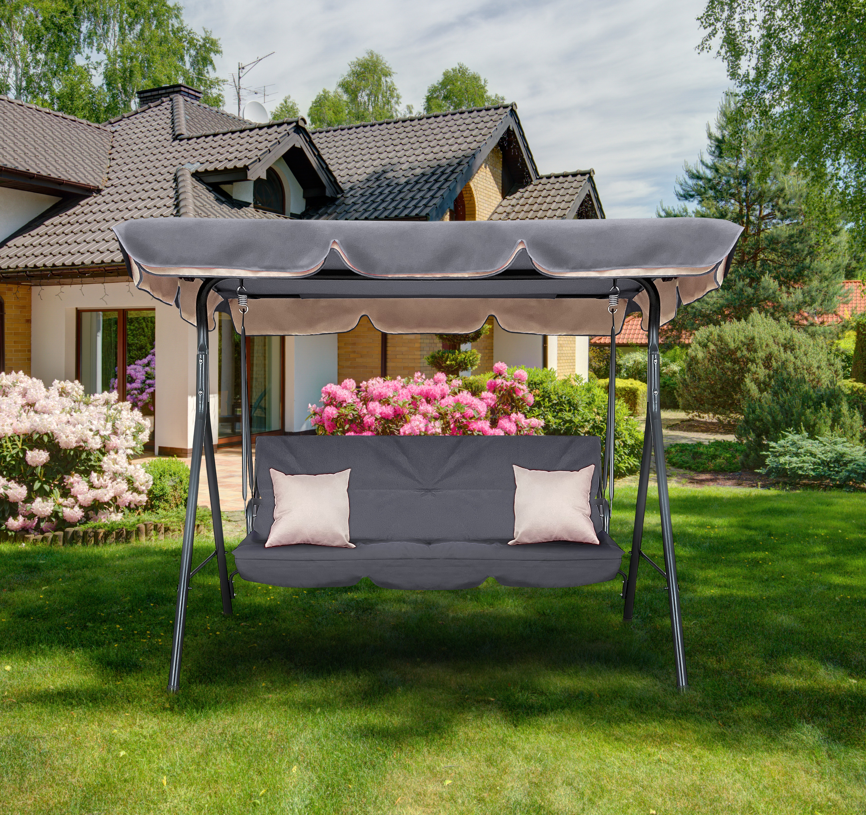 - Robustní ocelová konstrukce zaručuje houpačce stabilitu a bezpečnost