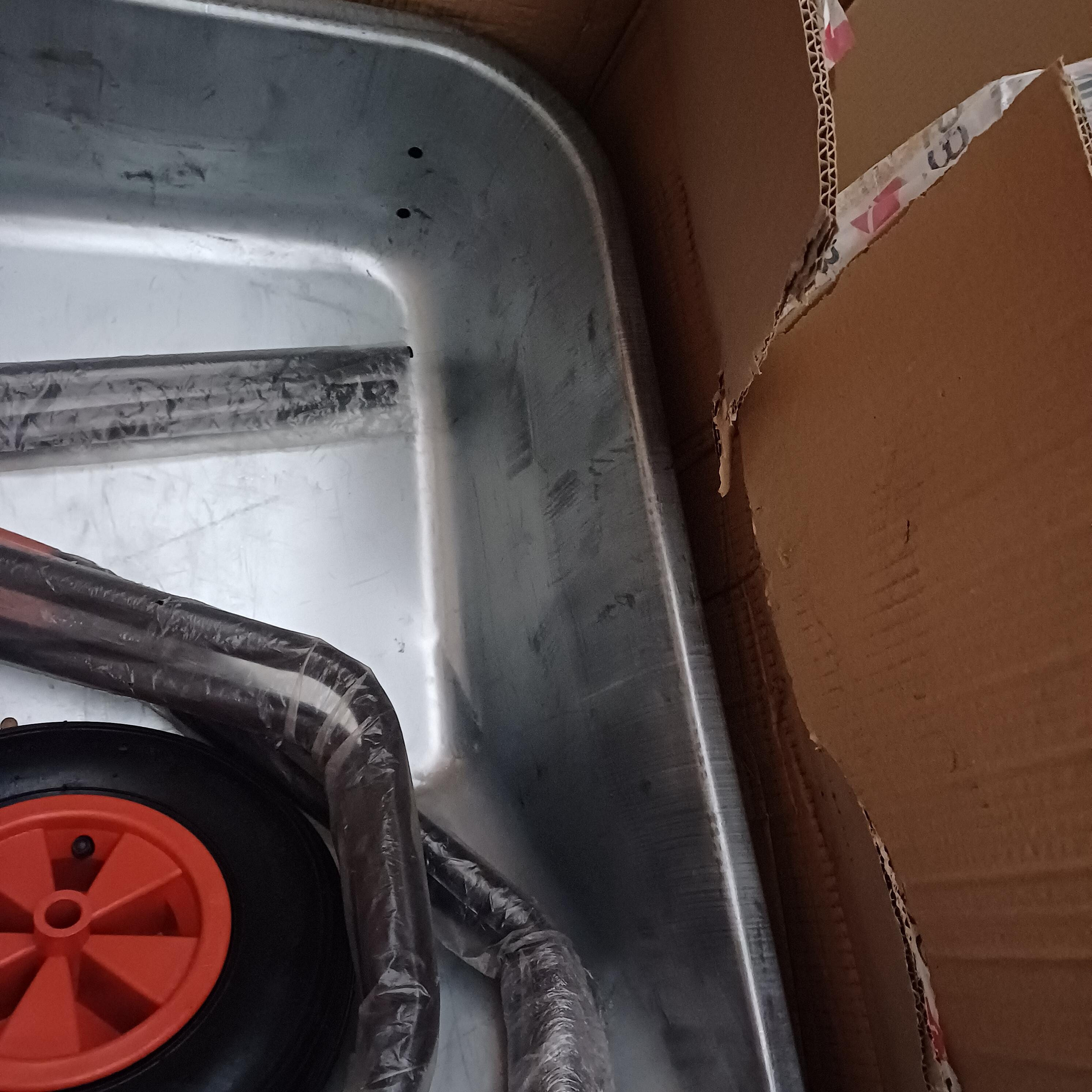 Kolečko má poškrábanou korbu.