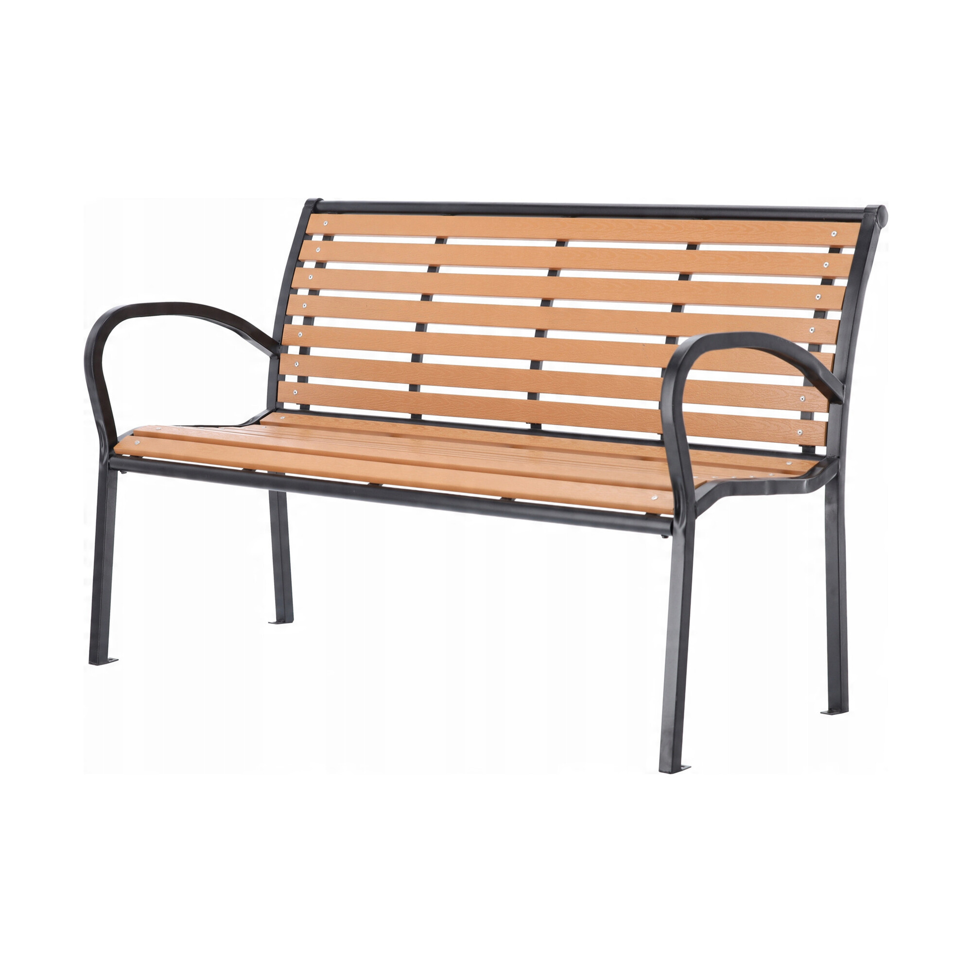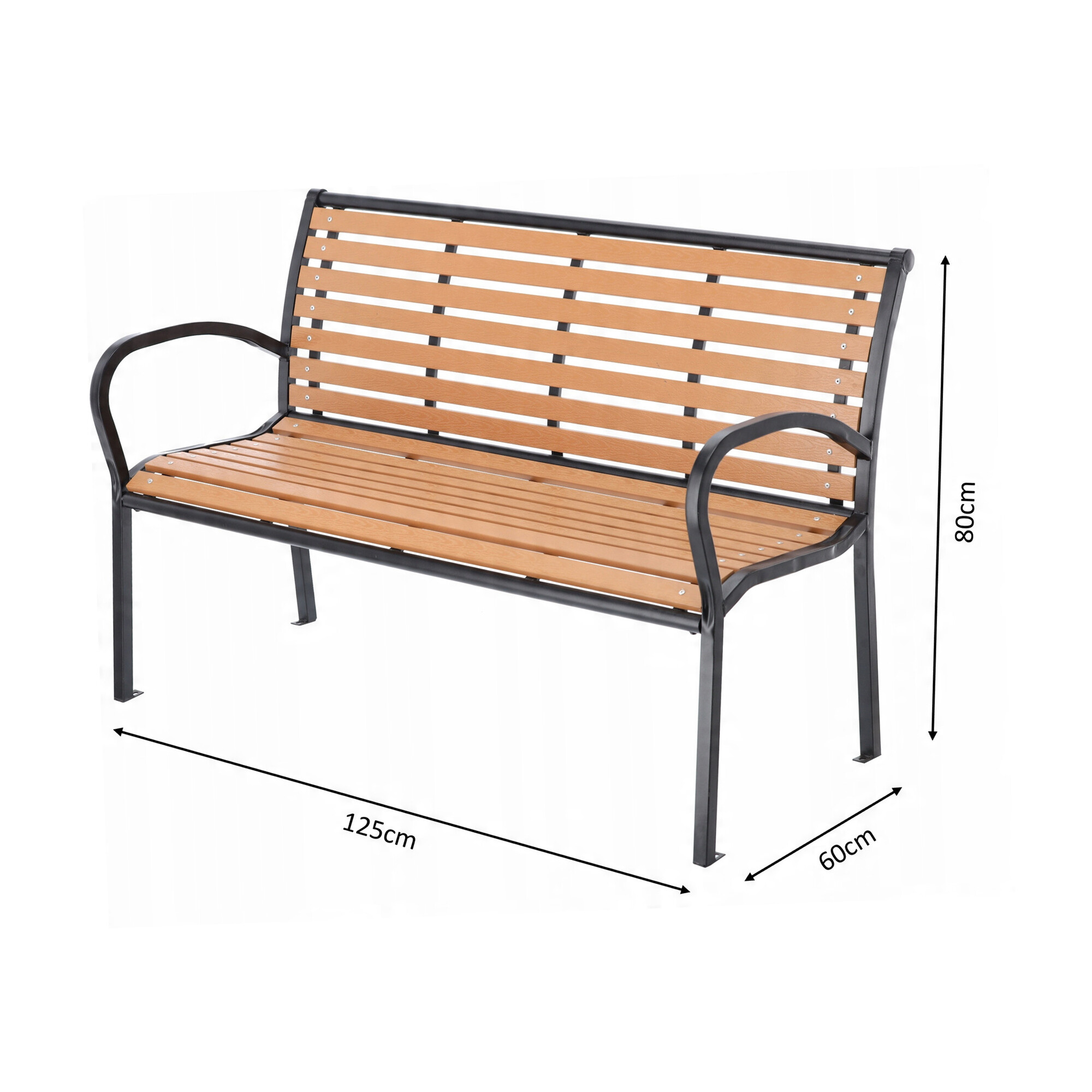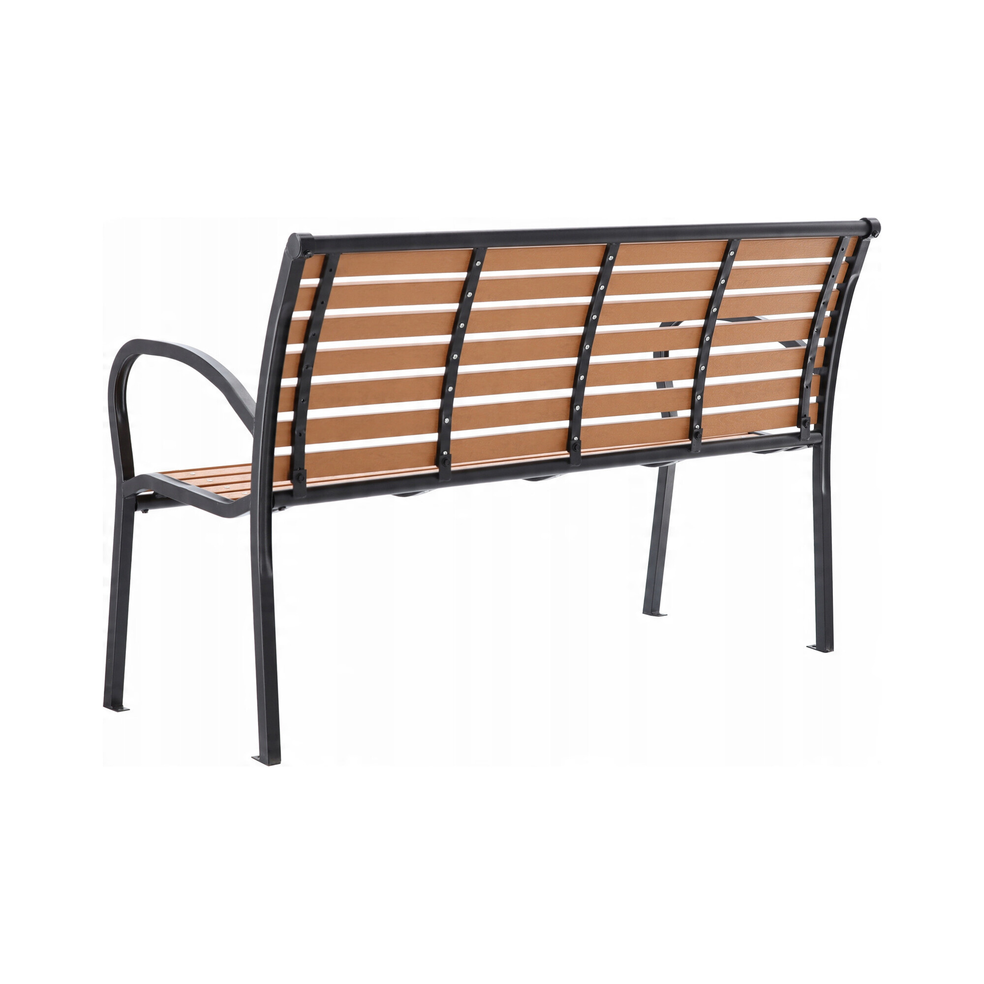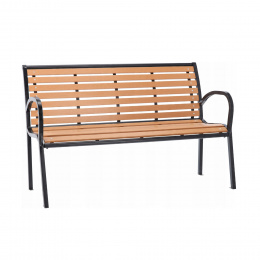 Pevná ocelová konstrukce, která je doplněna o plastové latě imitující dřevo. Nosnost lavice 150 kg.