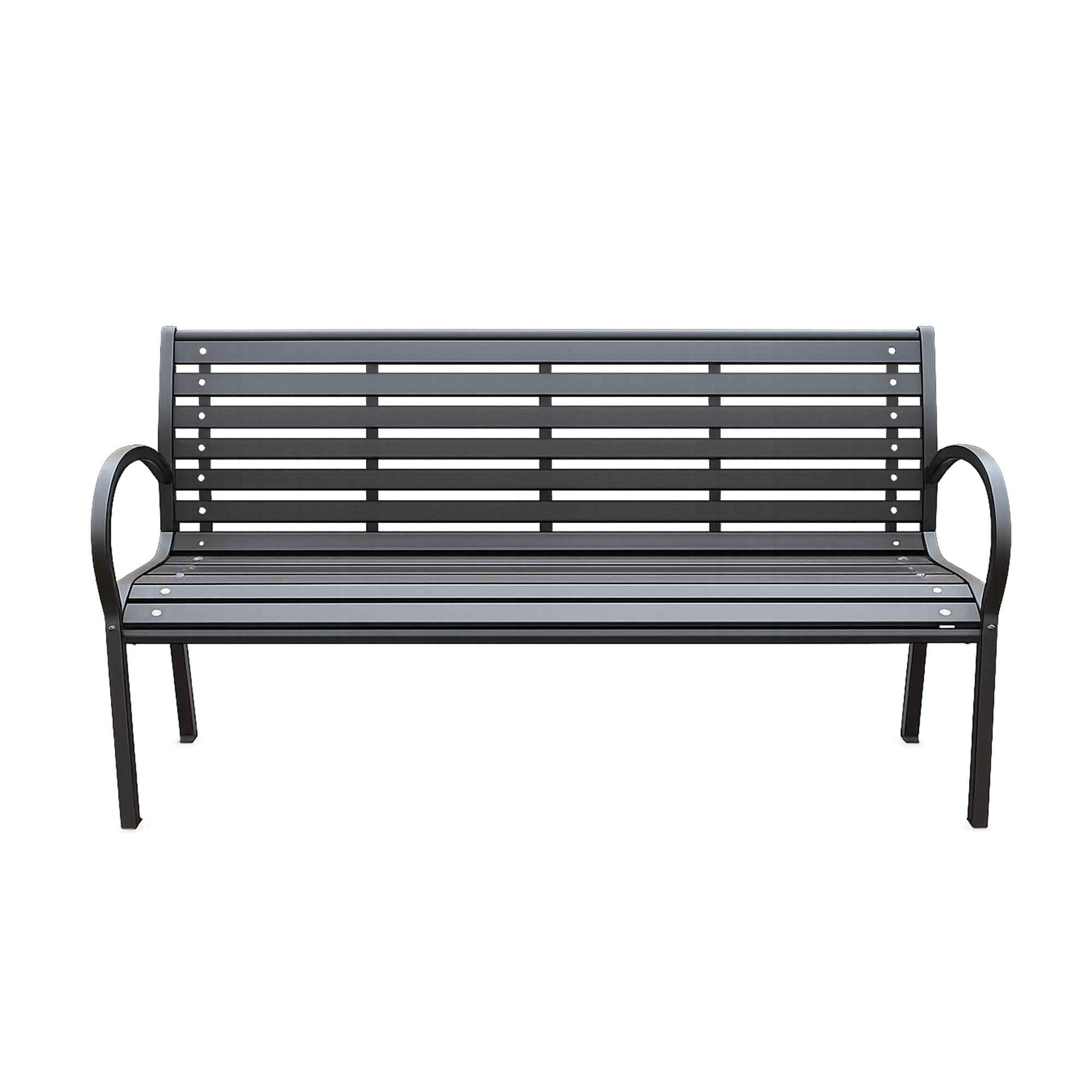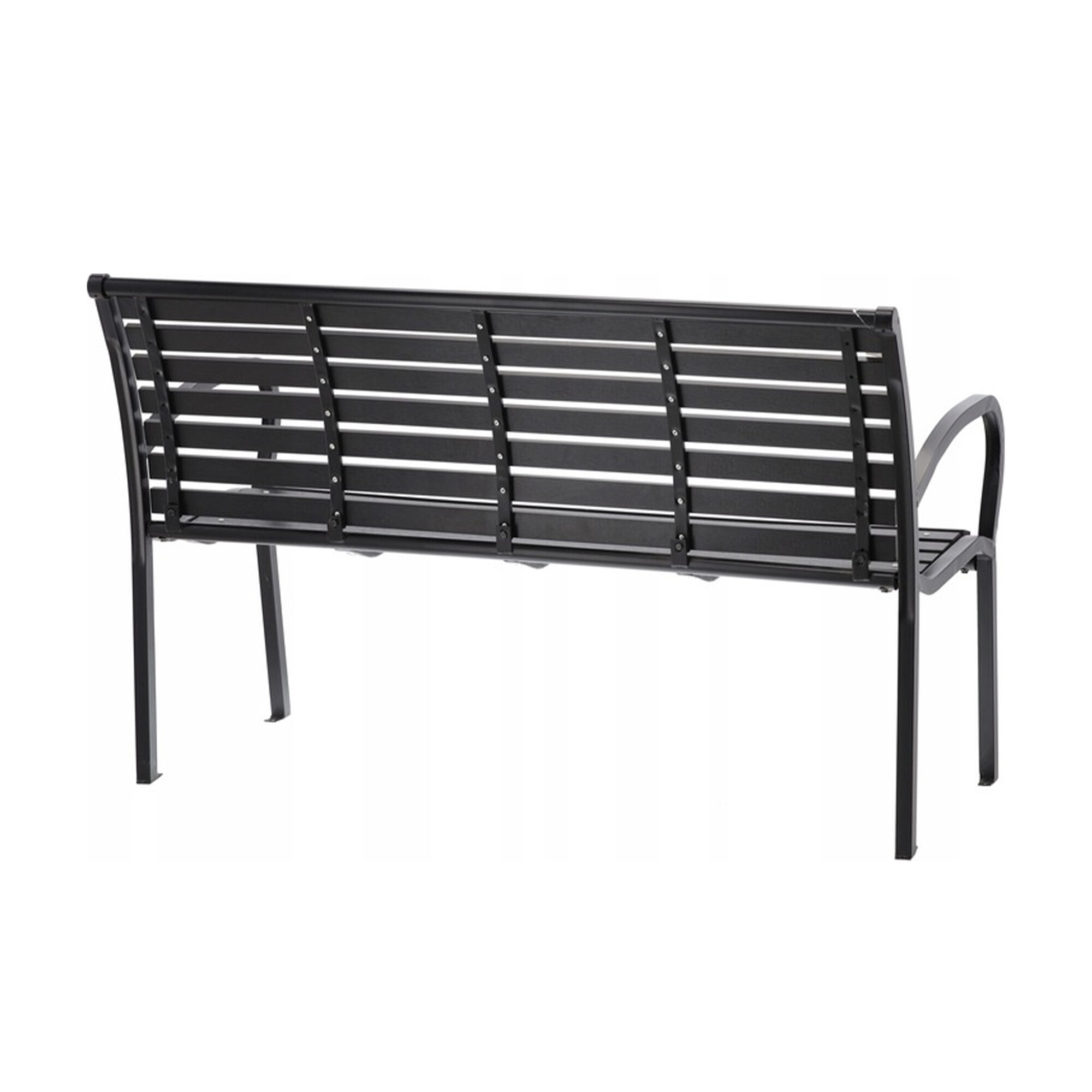 Pevná ocelová konstrukce, která je doplněna o plastové latě imitující dřevo. Nosnost lavice 150 kg.