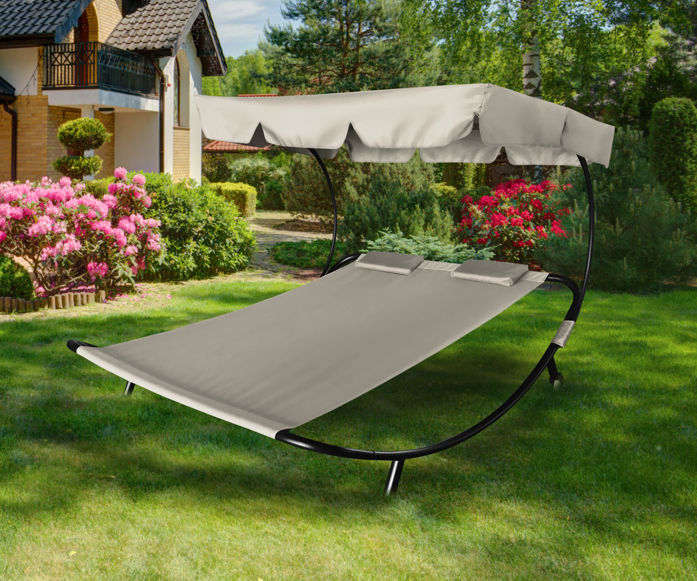 Luxusní zahradní lehátko pro dvě osoby umožňuje relaxaci na terase, zahradě nebo pod širým nebem.