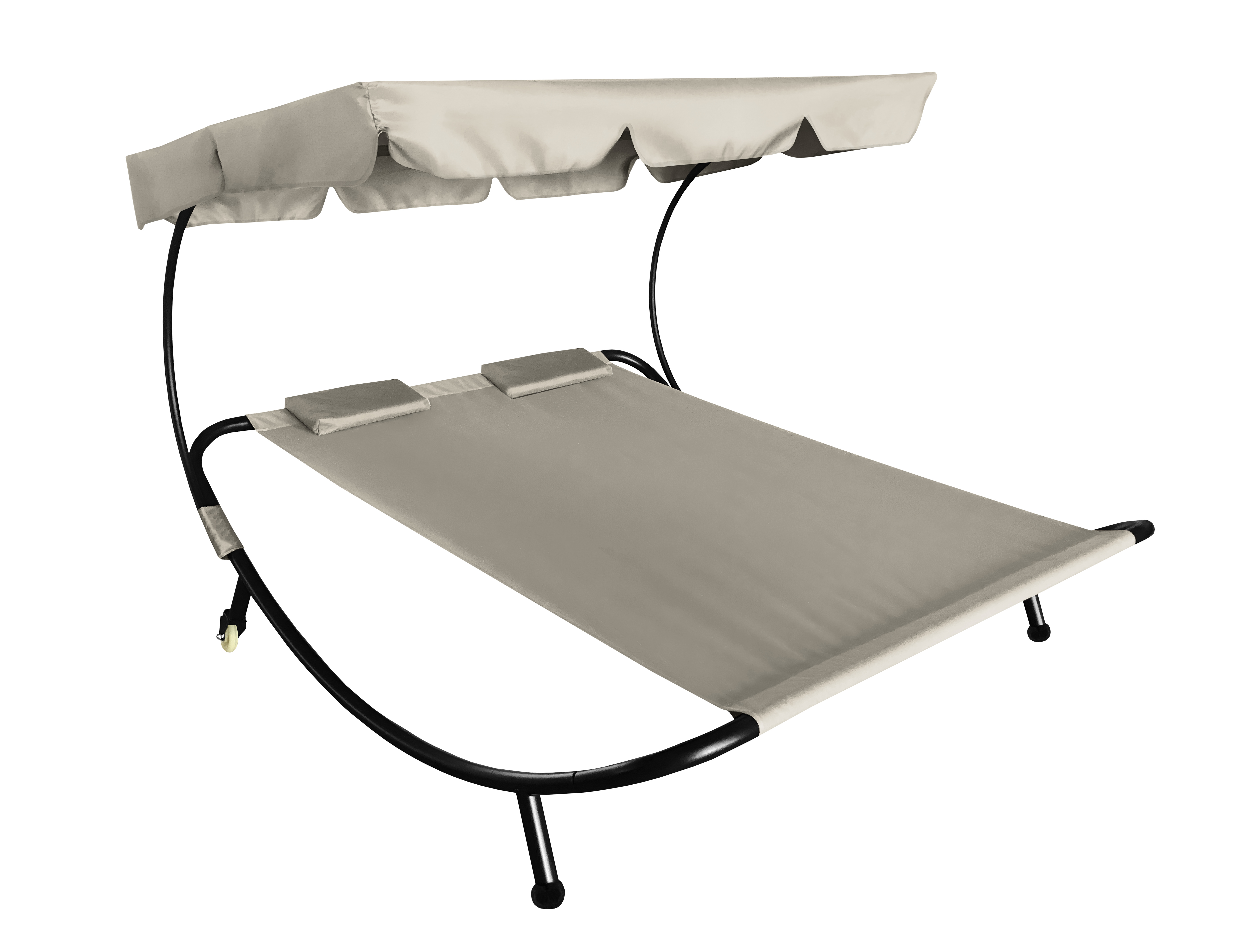 Dvojité lehátko je vyrobené z kvalitní oxfordské látky, která skvěle odolává vlivům počasí. Naklápěcí stínící stříška Vás ochrání před sluncem.