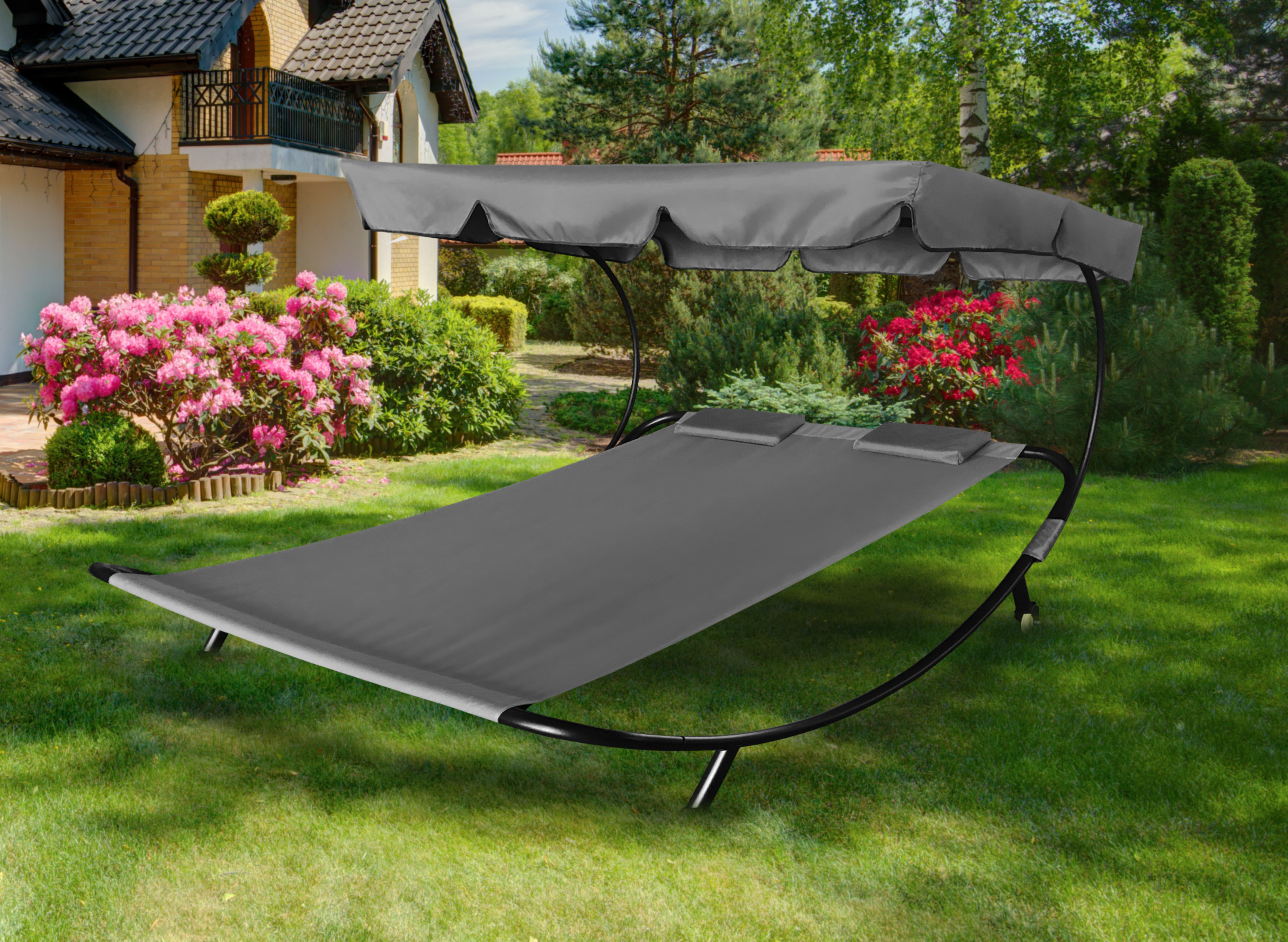 Luxusní zahradní lehátko pro dvě osoby umožňuje relaxaci na terase, zahradě nebo pod širým nebem. Dvojité lehátko je vyrobené z kvalitní oxfordské látky, která skvěle odolává vlivům počasí.