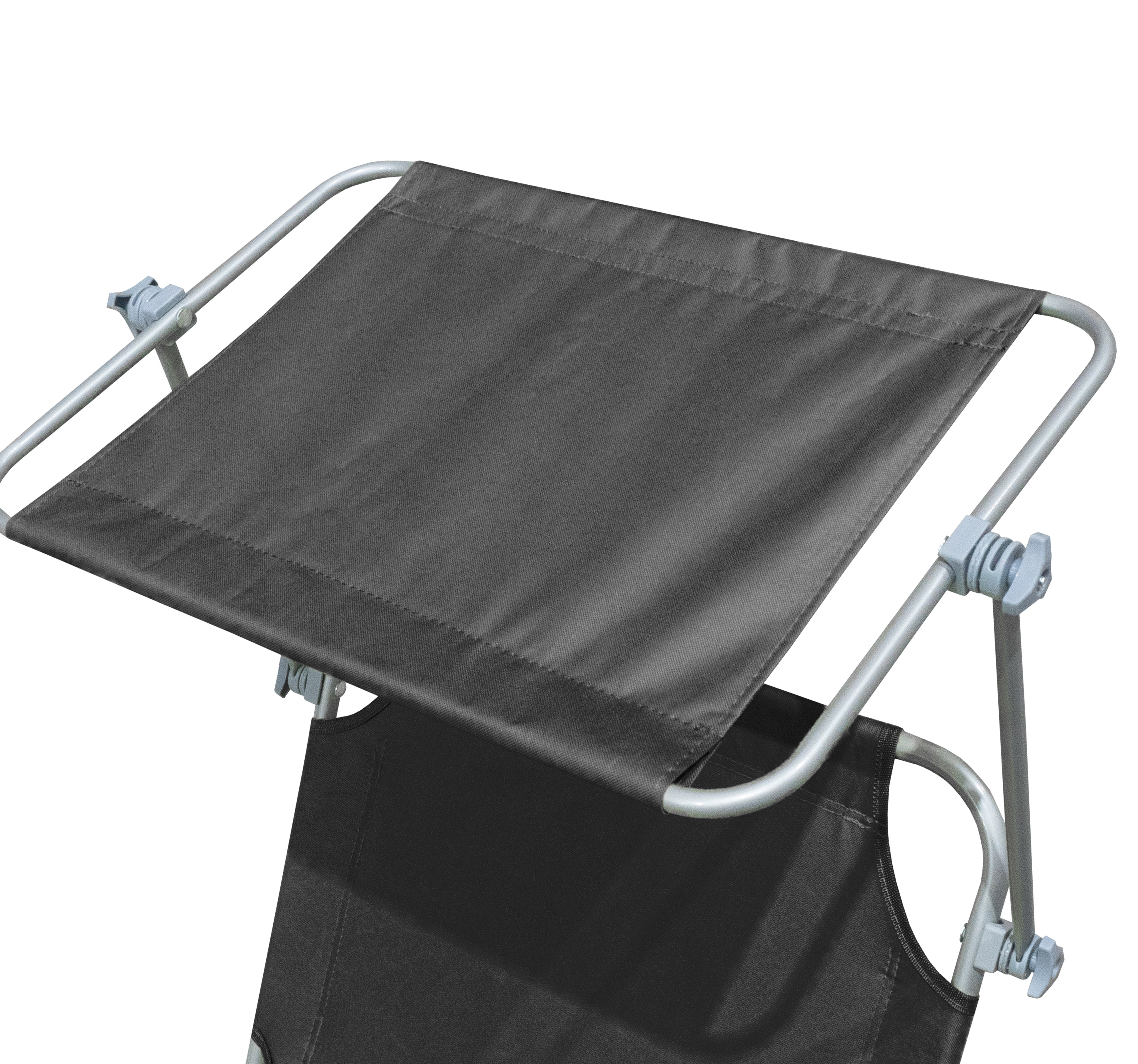 Součástí lehátka je odnímatelná stříška, která se dá libovolně nastavit a ochrání obličej před ostrým sluníčkem. Opěrku zad na lehátku lze nastavit do 4 různých poloh.