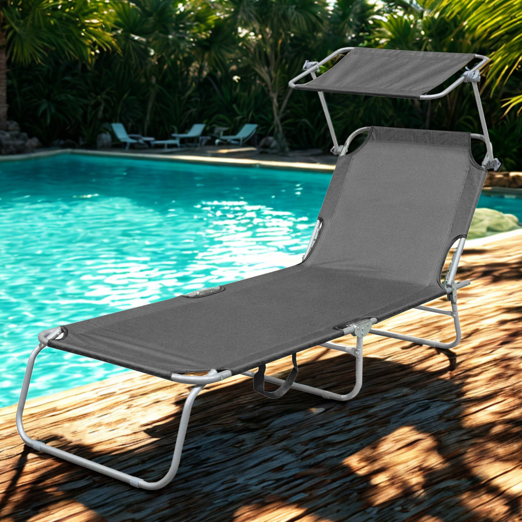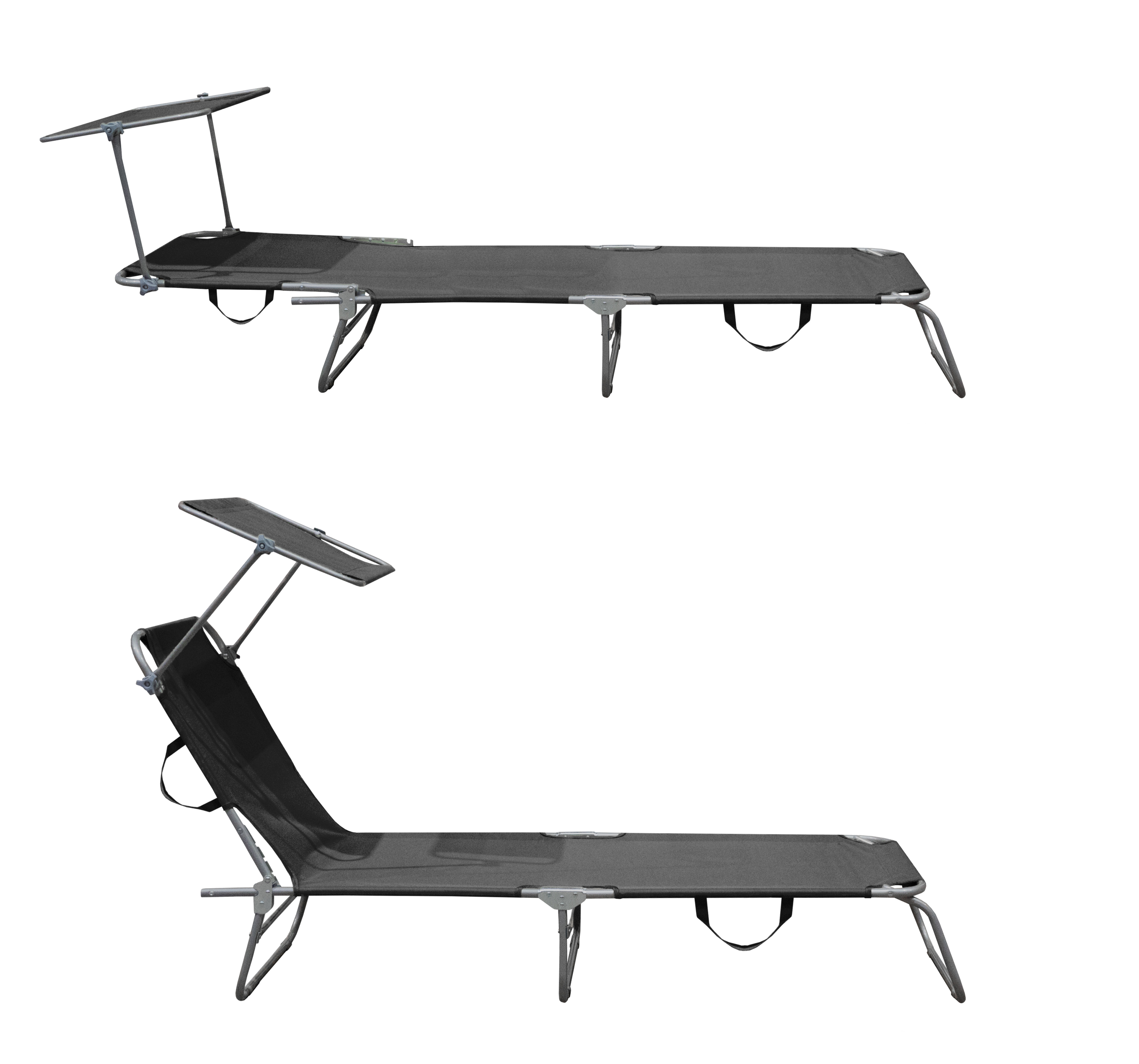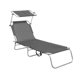 Skládací zahradní lehátko se zpevněnou ocelovou konstrukcí, v moderním designu, vhodné pro zahrady, na kempování či pláže.