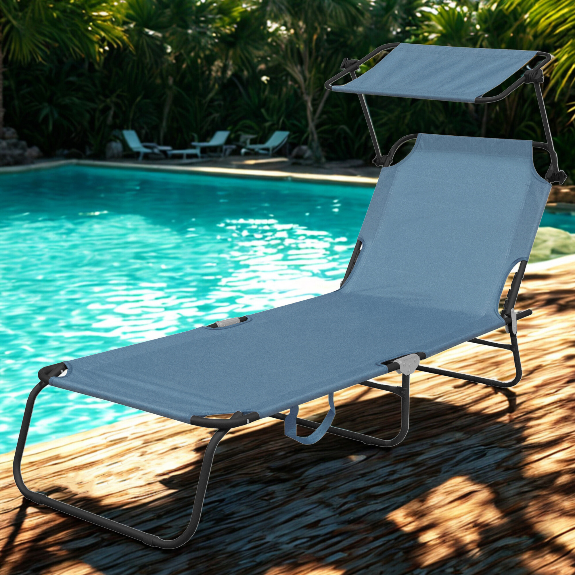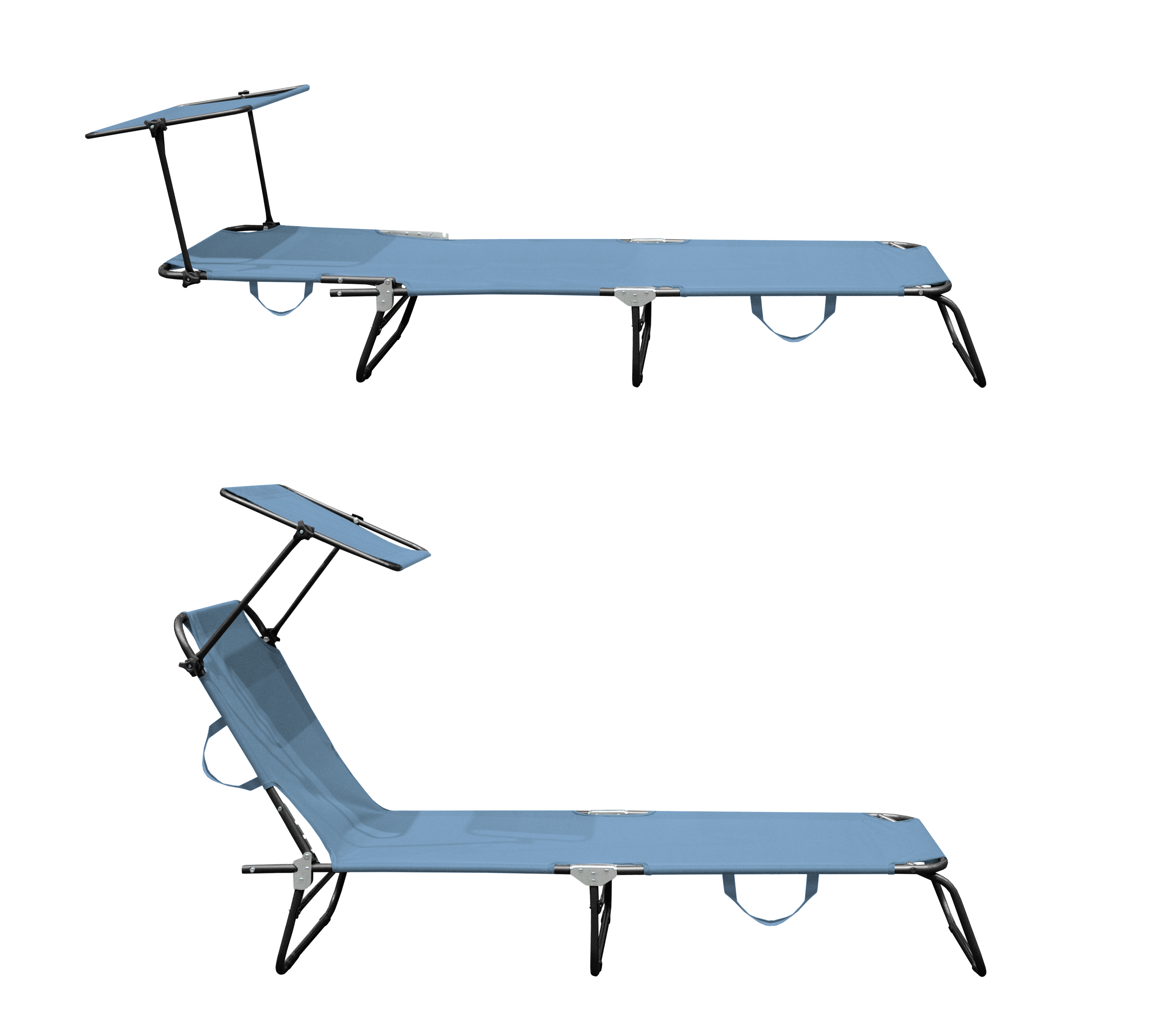 Skládací zahradní lehátko se zpevněnou ocelovou konstrukcí, v moderním designu, vhodné pro zahrady, na kempování či pláže.